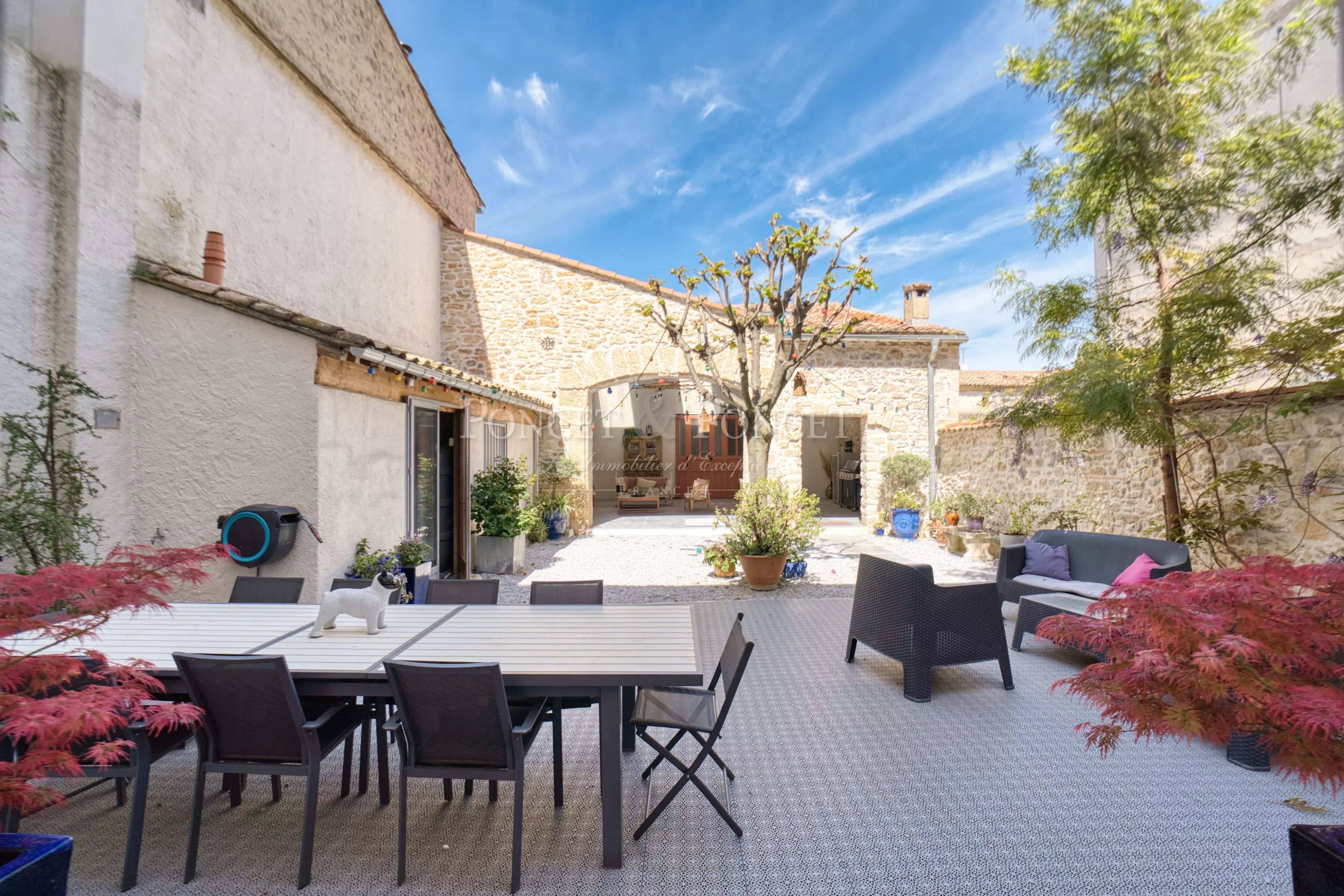 Au détour d’une ruelle paisible du cœur historique de Pignan, derrière une façade discrète et élégante, se dévoile une demeure où le temps semble avoir conservé toute sa noblesse. Cette maison de maître, entièrement rénovée avec soin, incarne avec justesse l’équilibre entre patrimoine et art de vivre contemporain.