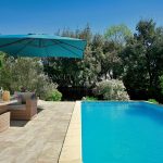 La parcelle, d’environ 1000 m², accueille une cuisine d’été, une piscine maçonnée et carrelée et un espace de stockage.