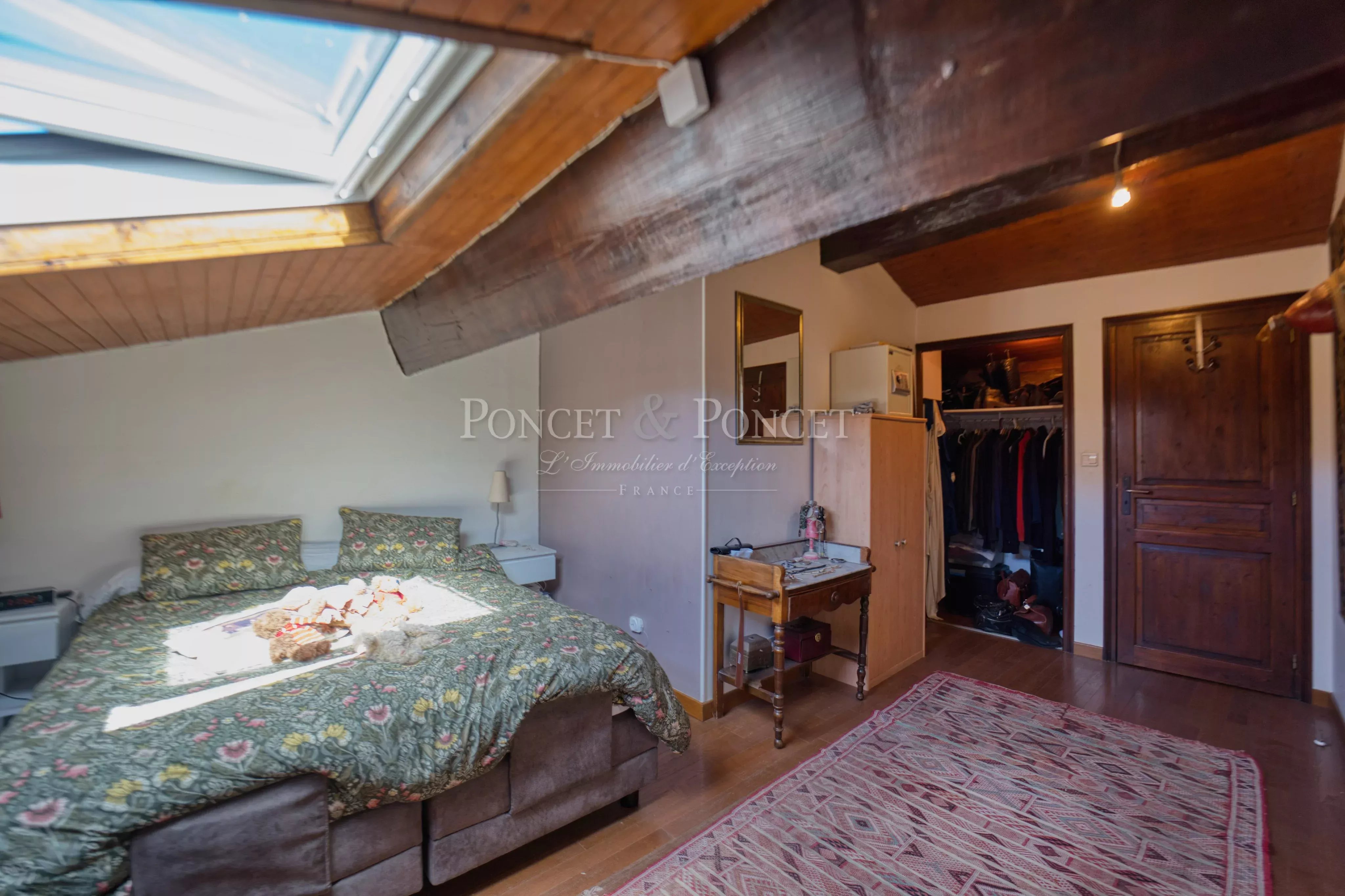 Outside, a 125 m² garden naturally extends the living spaces and features a built-in swimming pool, perfectly integrated into its surroundings.