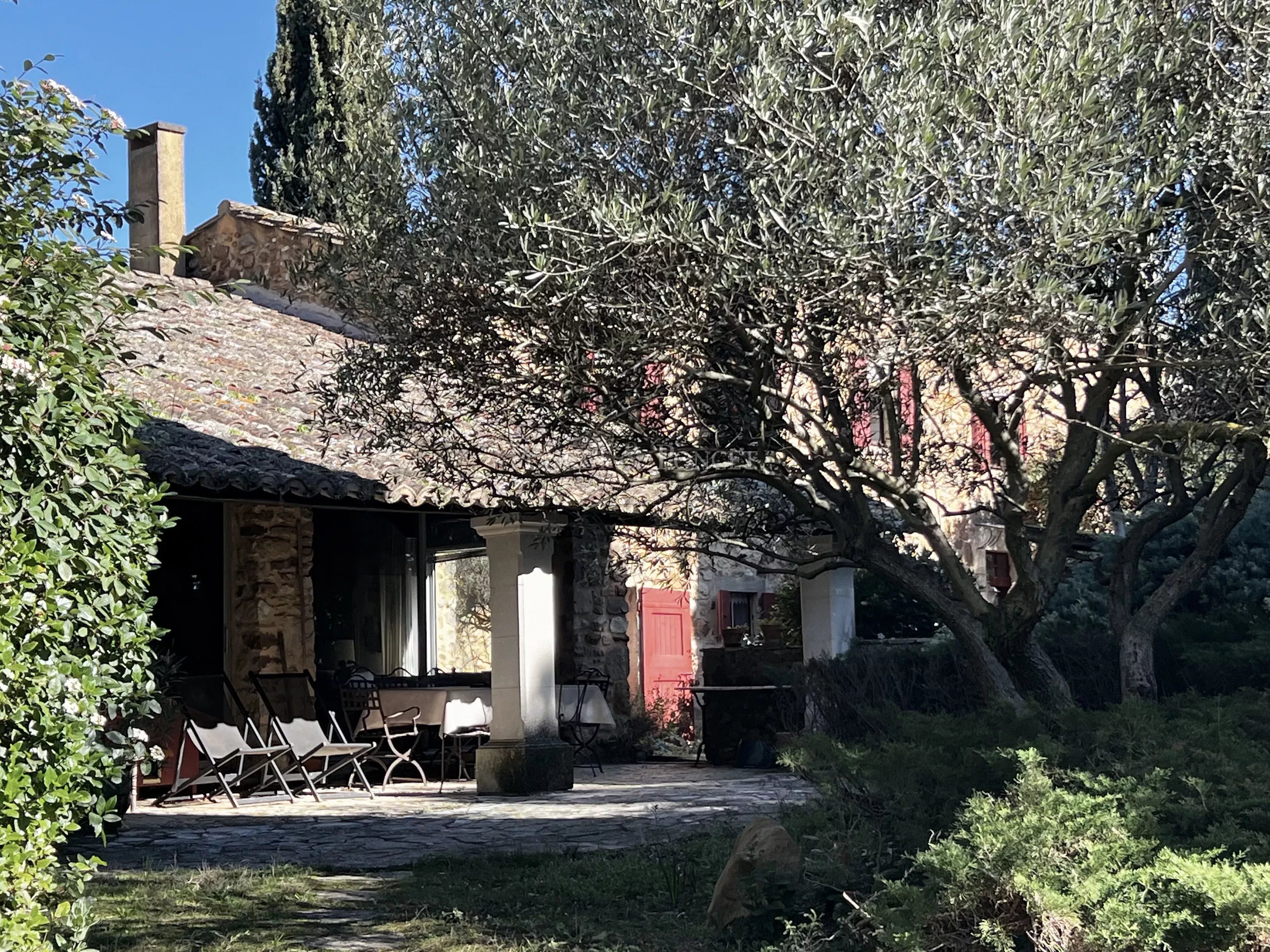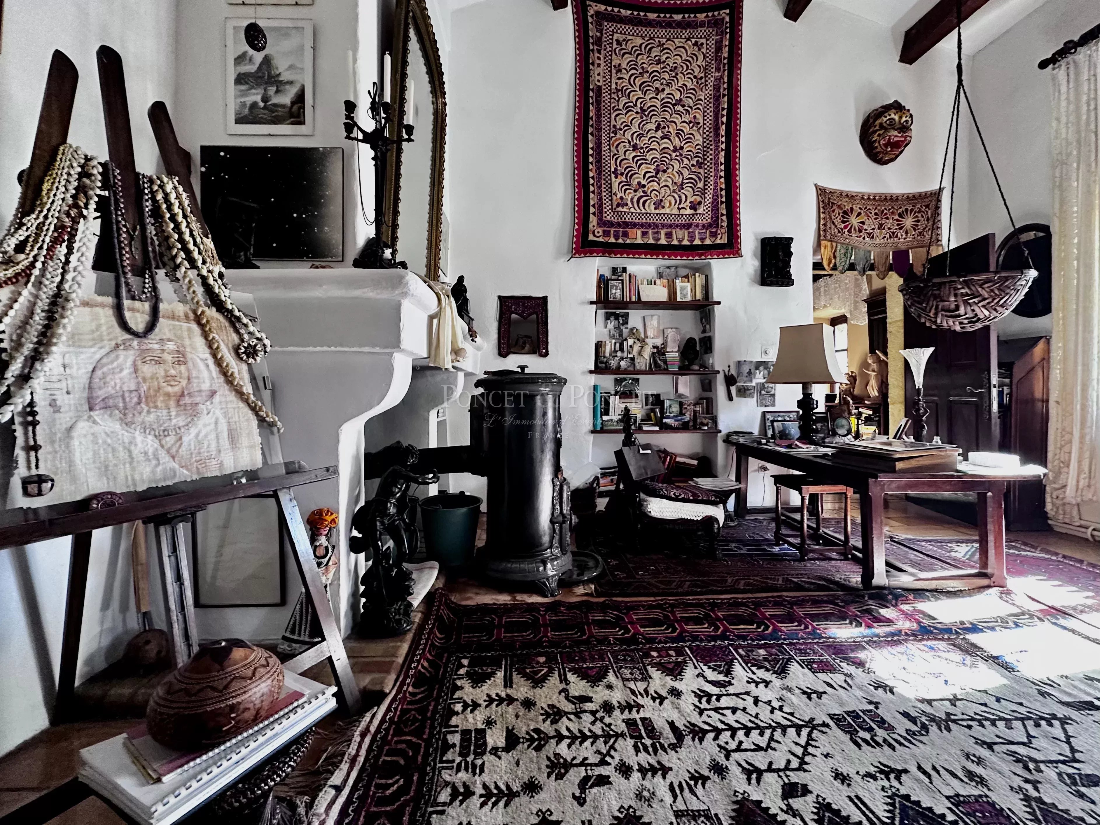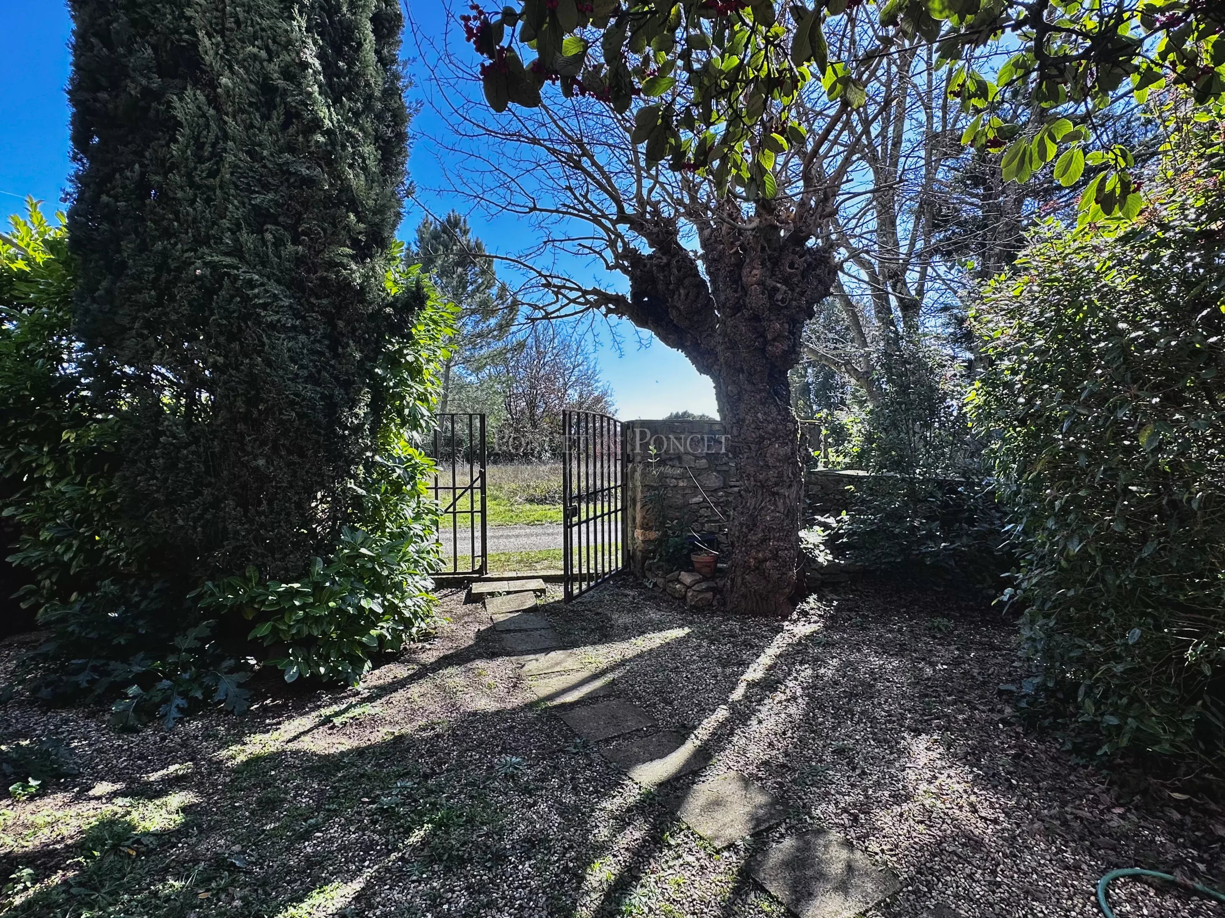 Just fifteen minutes from Uzès, in the heart of a charming village surrounded by unspoiled countryside, this authentic period home enjoys an exceptionally peaceful setting. Set on nearly 2,600 sqm of land, the property is graced with magnificent tall trees providing shade and privacy, while open views stretch across vineyards, woodland and rolling hills in the distance. The garden, a true green haven, also features a traditional well and offers several inviting areas to relax and enjoy the Mediterranean landscape in complete tranquility.