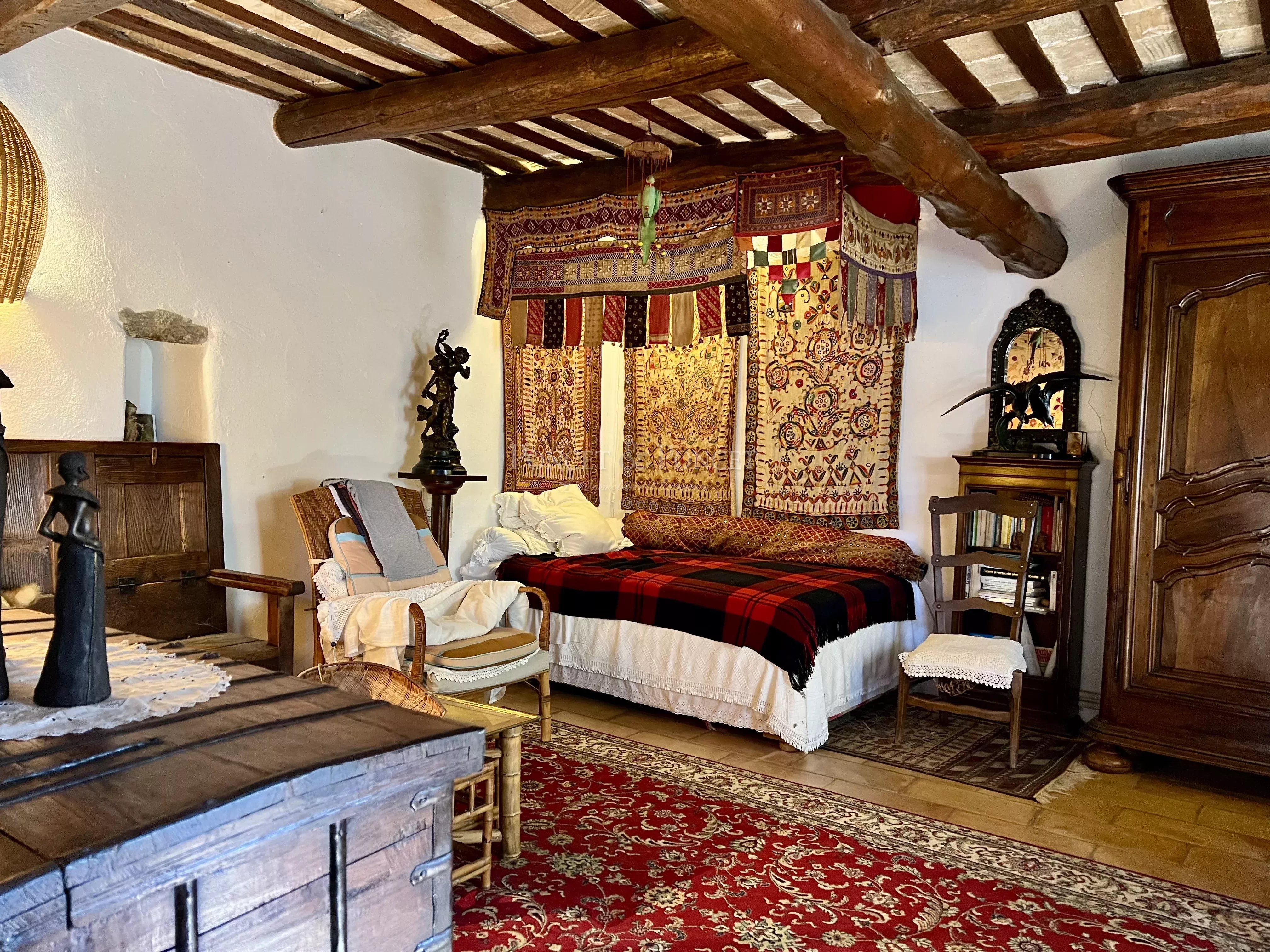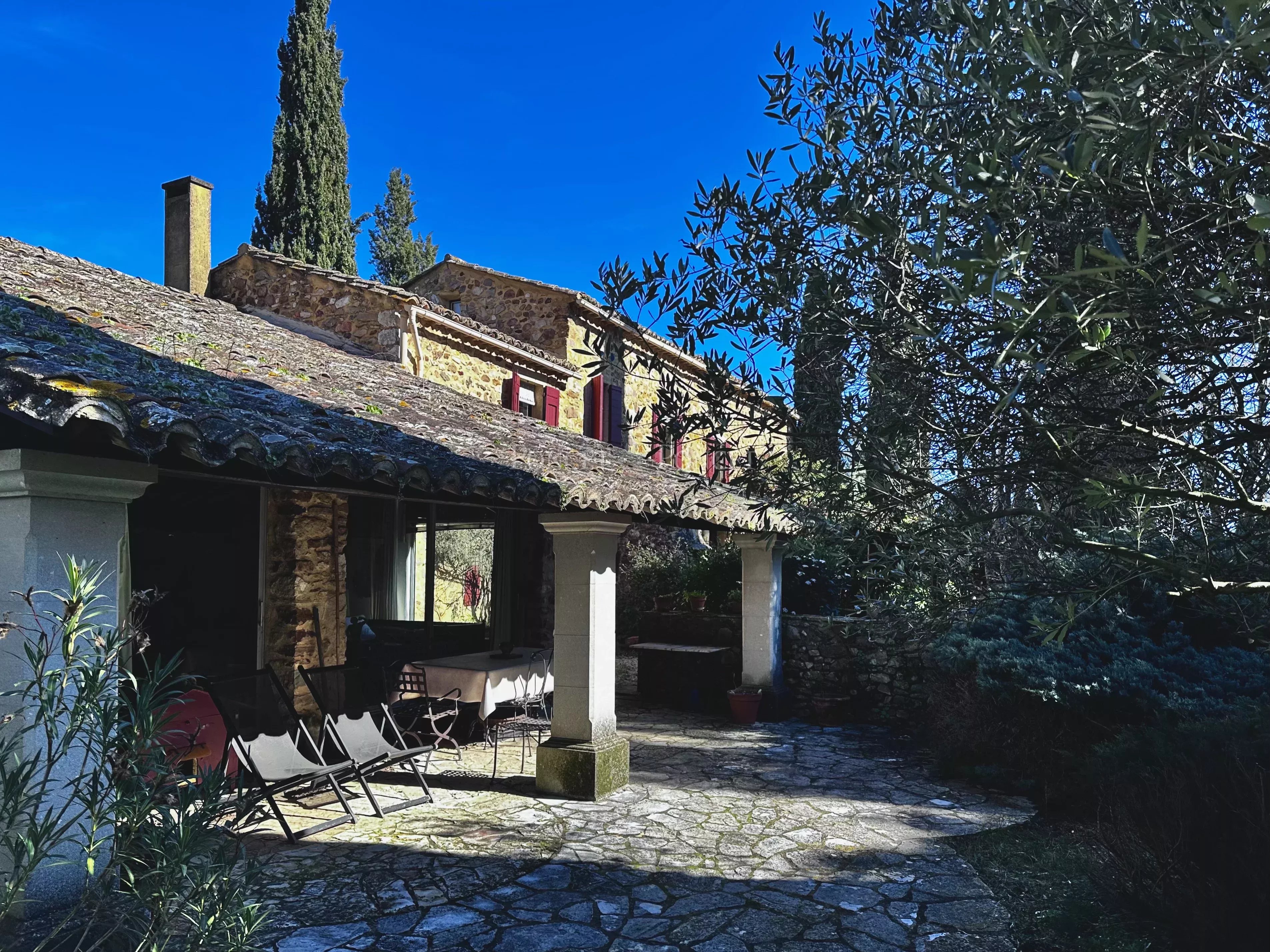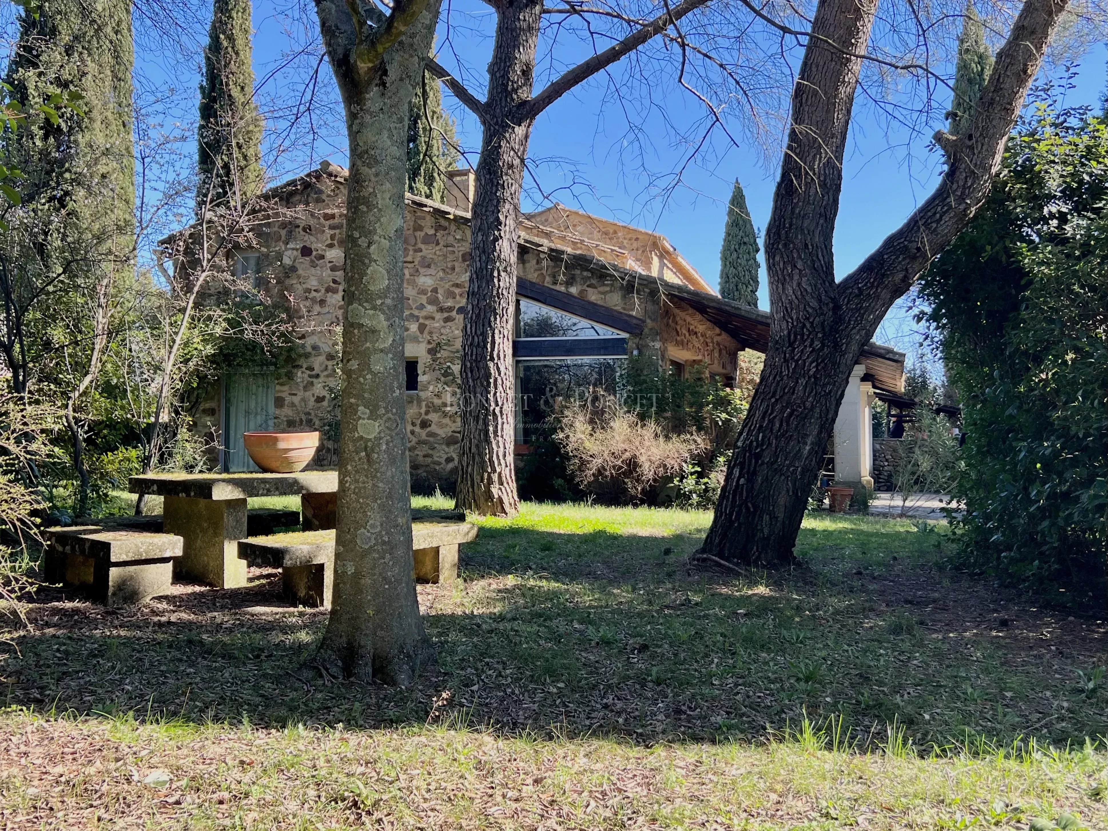Just fifteen minutes from Uzès, in the heart of a charming village surrounded by unspoiled countryside, this authentic period home enjoys an exceptionally peaceful setting. Set on nearly 2,600 sqm of land, the property is graced with magnificent tall trees providing shade and privacy, while open views stretch across vineyards, woodland and rolling hills in the distance. The garden, a true green haven, also features a traditional well and offers several inviting areas to relax and enjoy the Mediterranean landscape in complete tranquility.