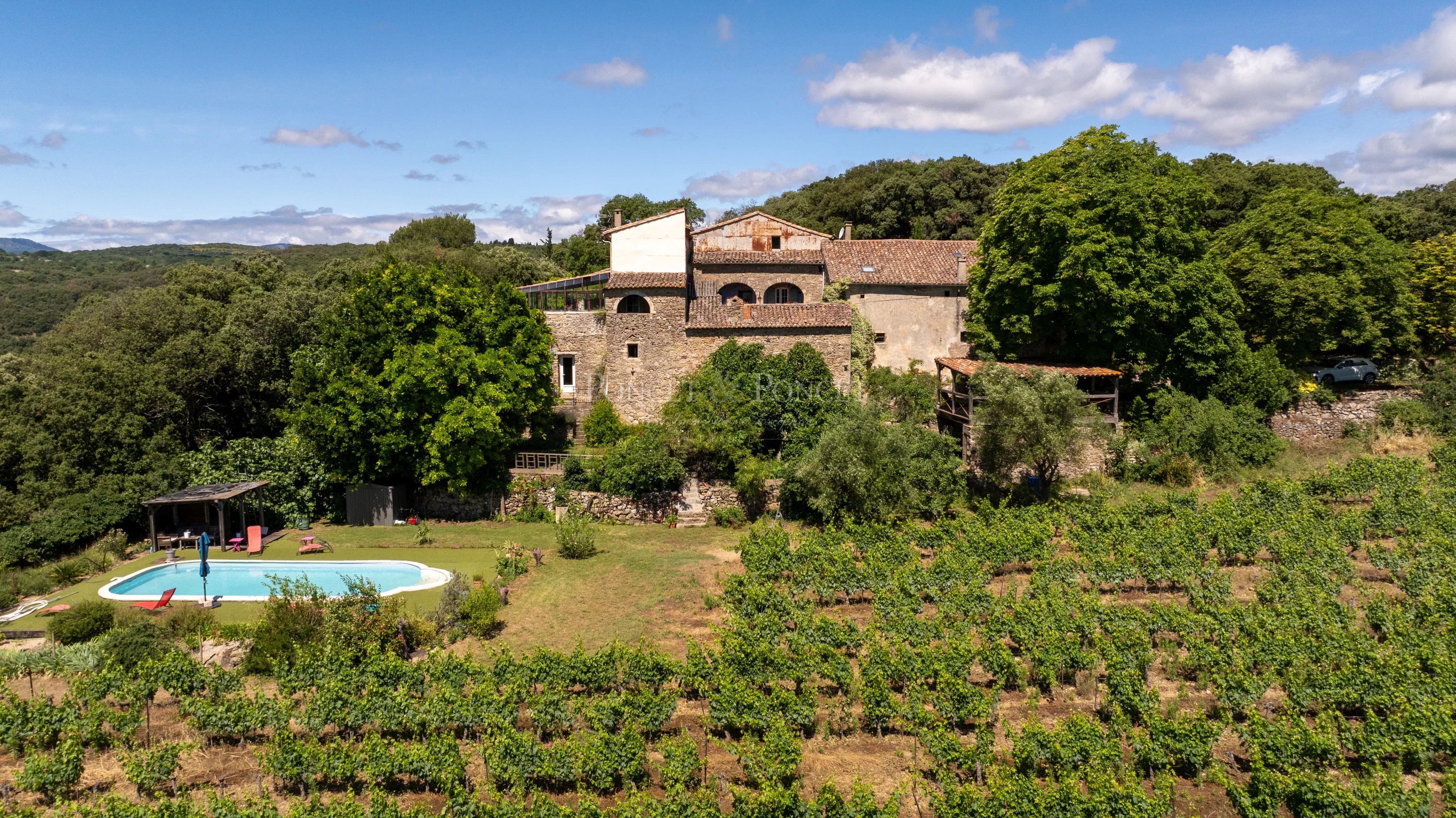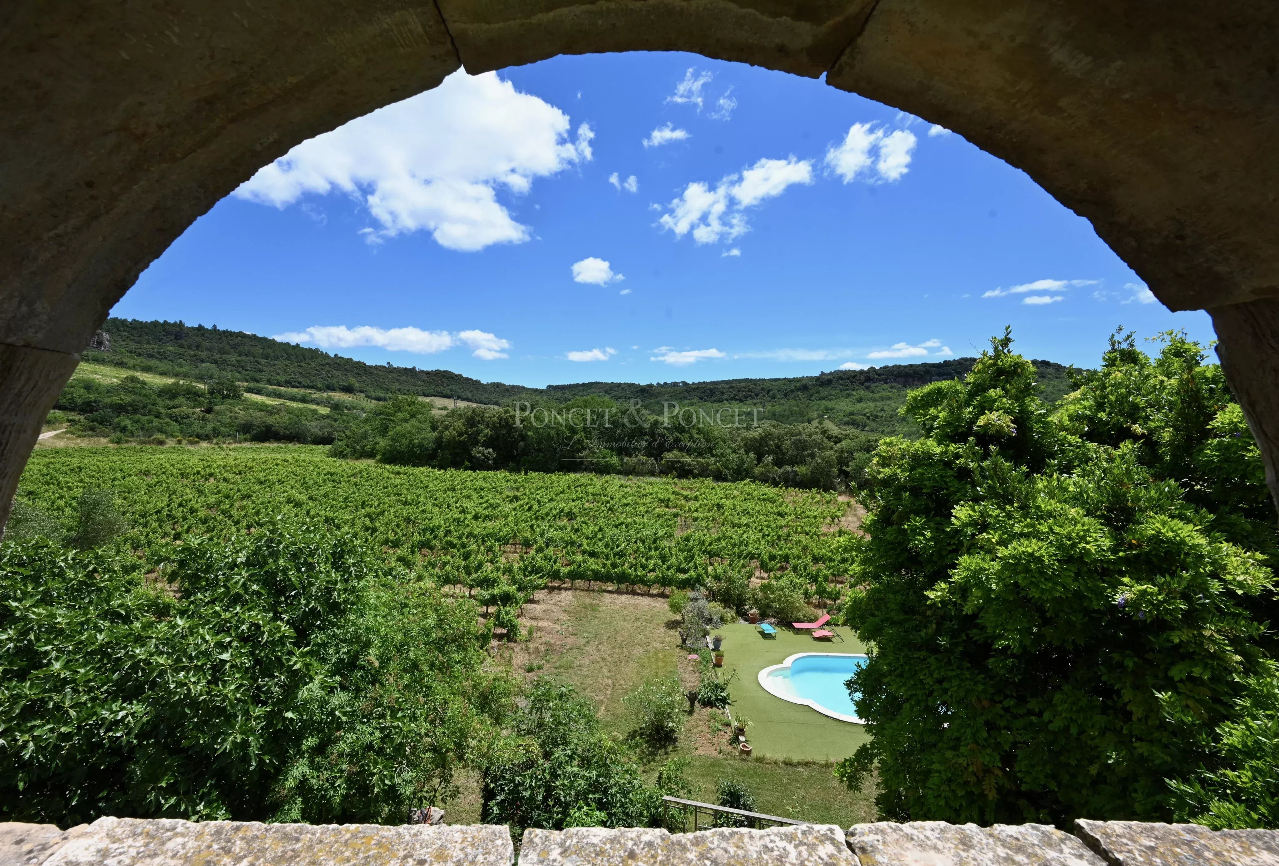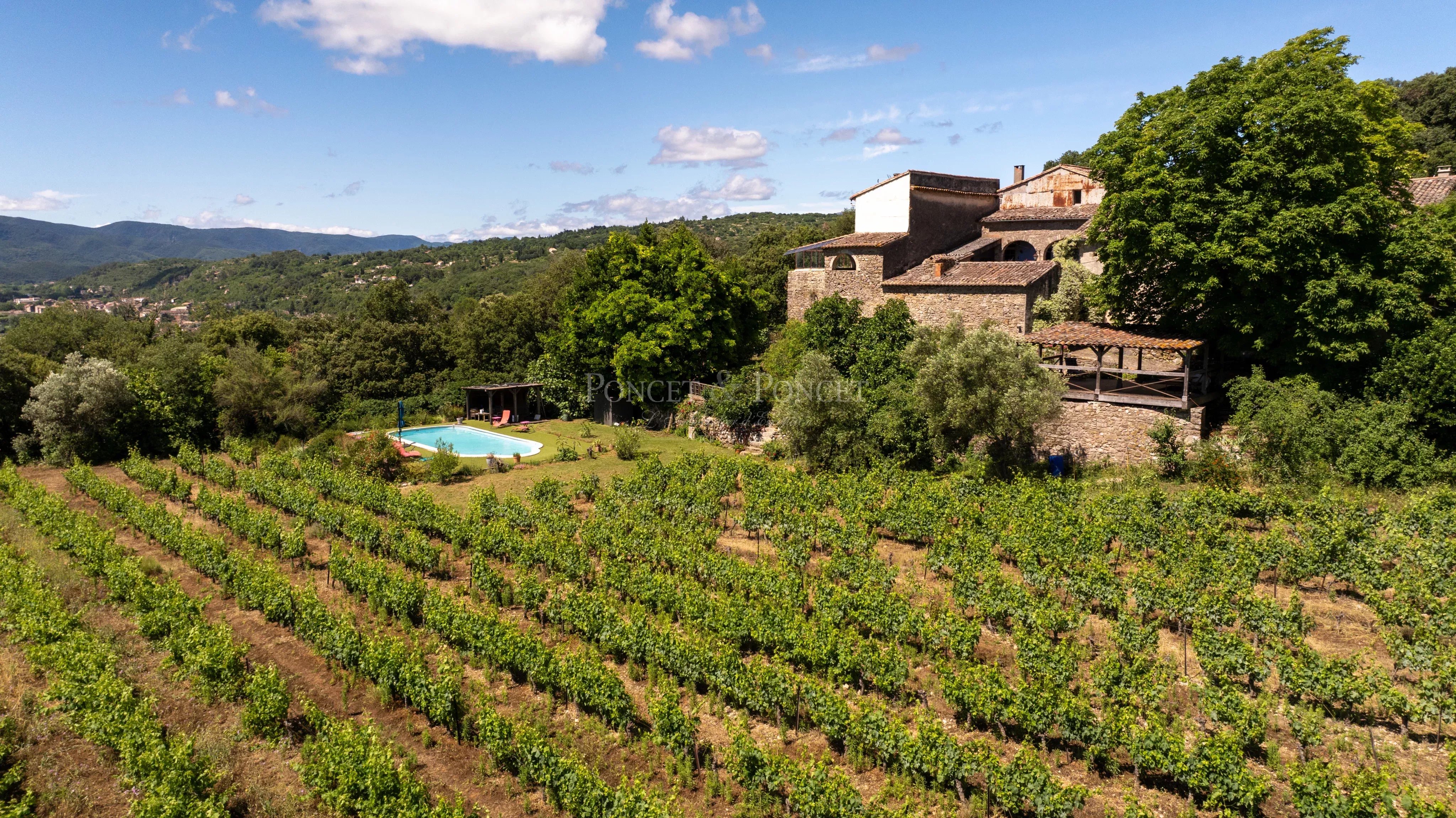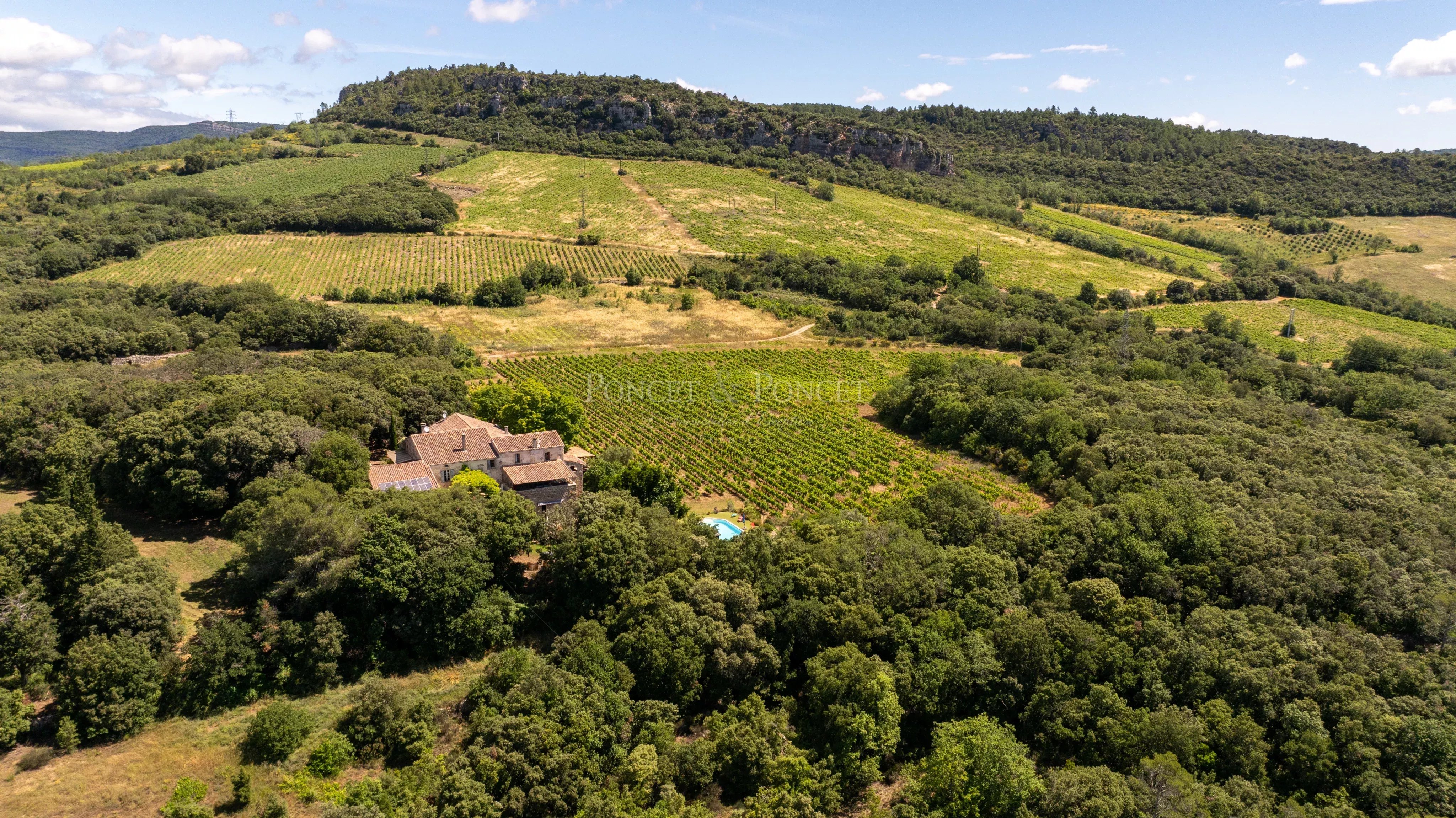 Authentic 13th-century stone farmhouse set in 55 hectares, including 15 hectares of vines, with commanding views.