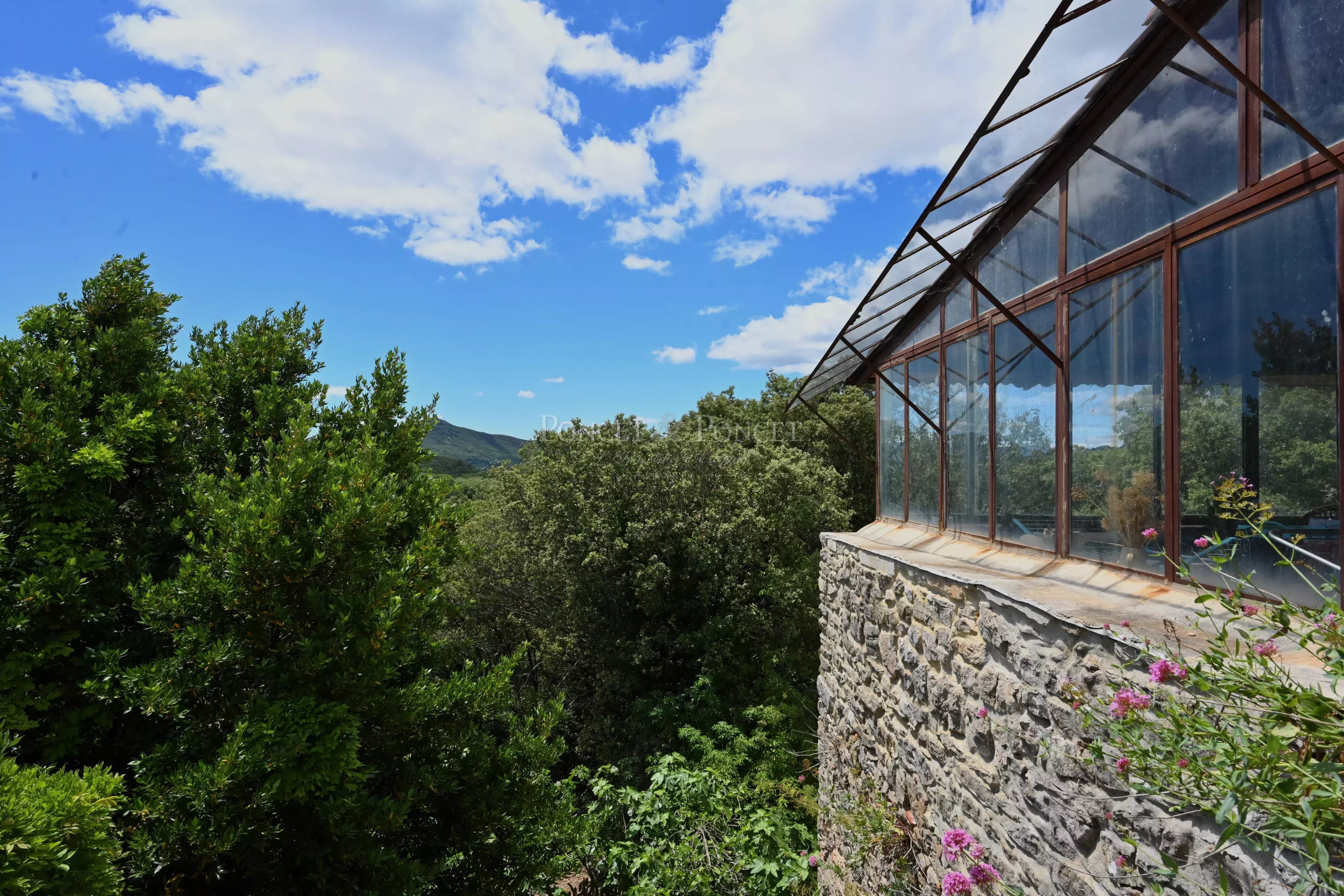 The entire property offers 495 m2 of living space, including a private dwelling house with fireplace, 3 bedrooms and a study, a living room opening onto a shaded terrace, a large dining room and a south-facing conservatory.
