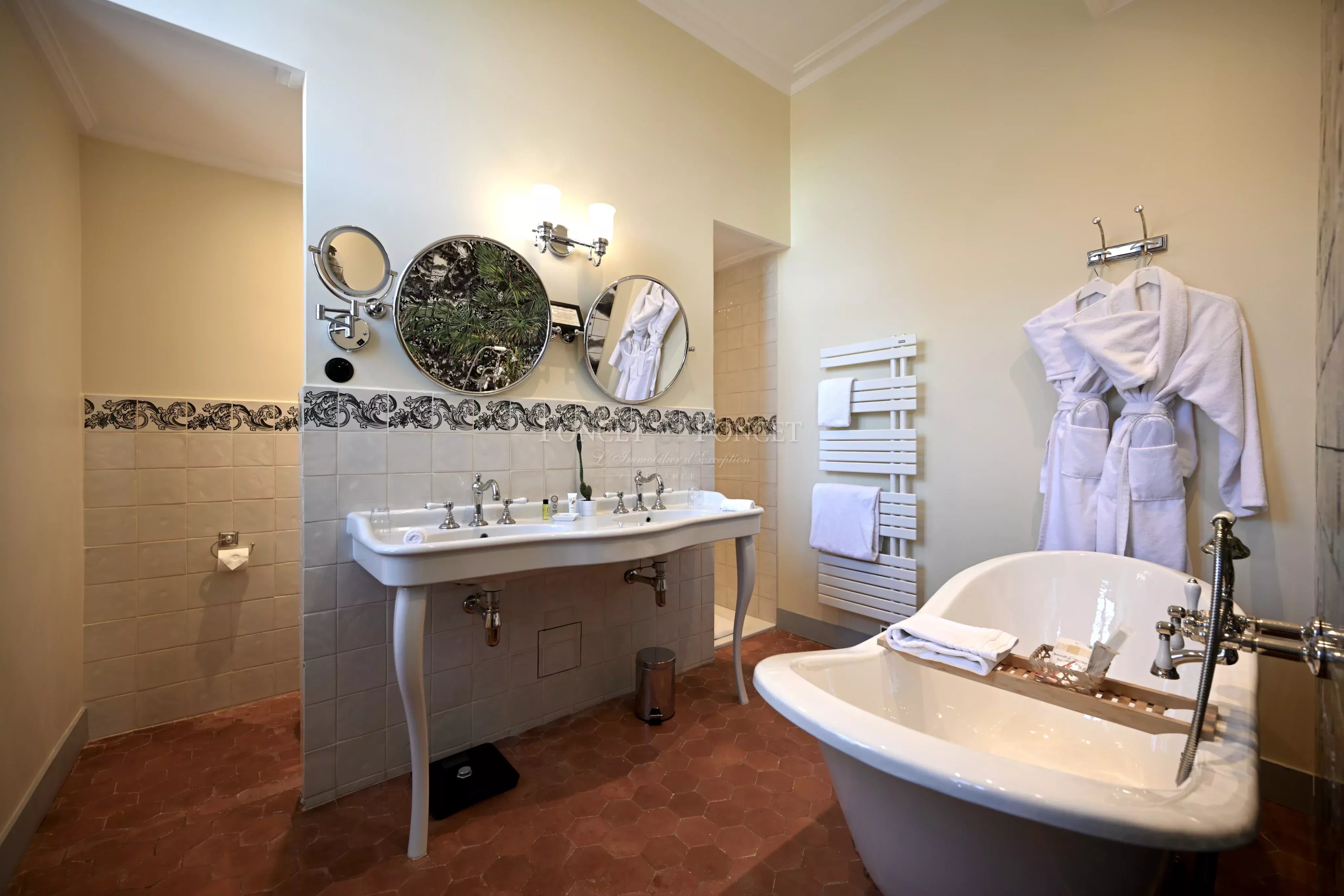 • 8 rooms integrated into the 5-Star hotel, all restored to the highest standards: generous volumes, noble materials, views over the park or surrounding hills, and a refined atmosphere.