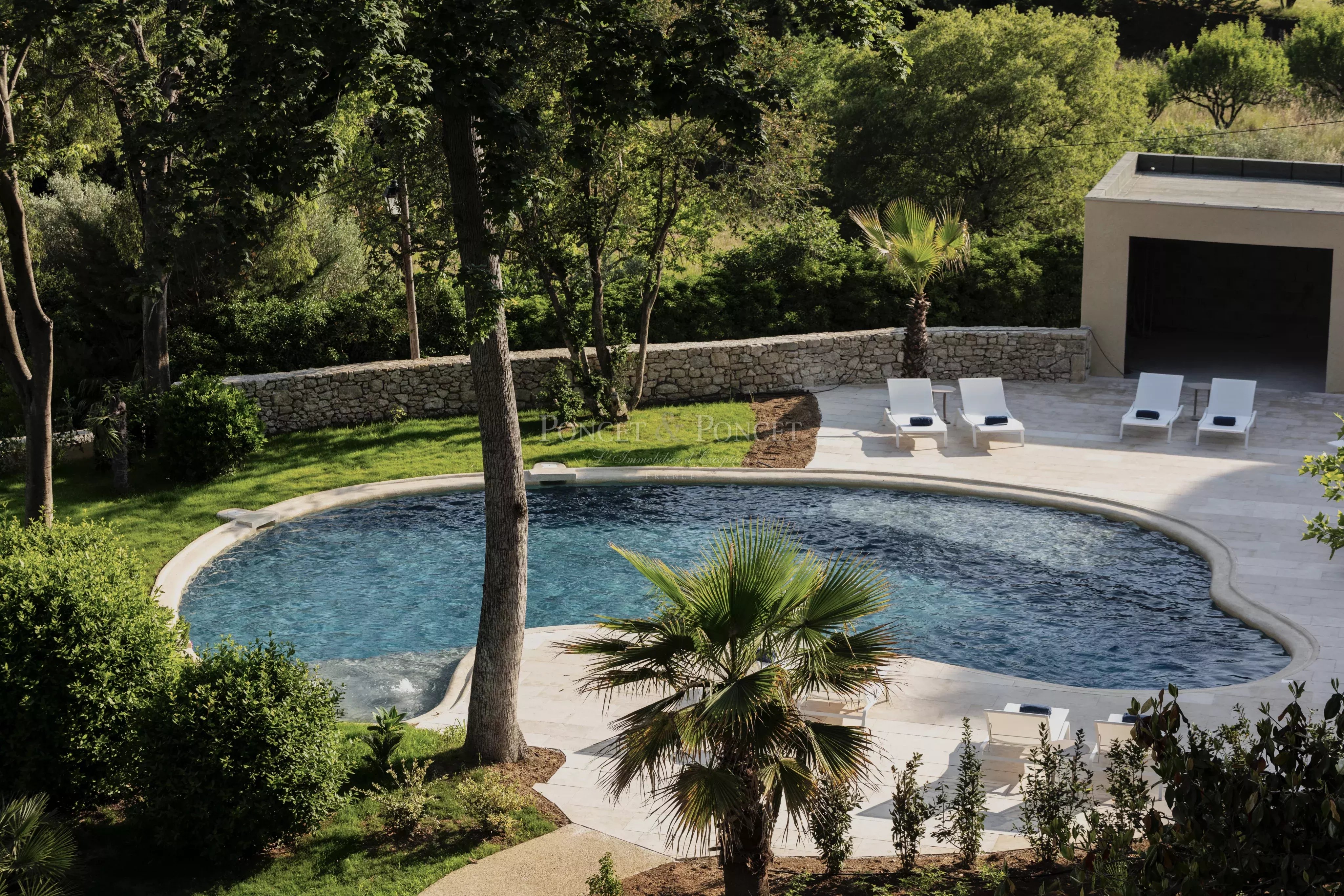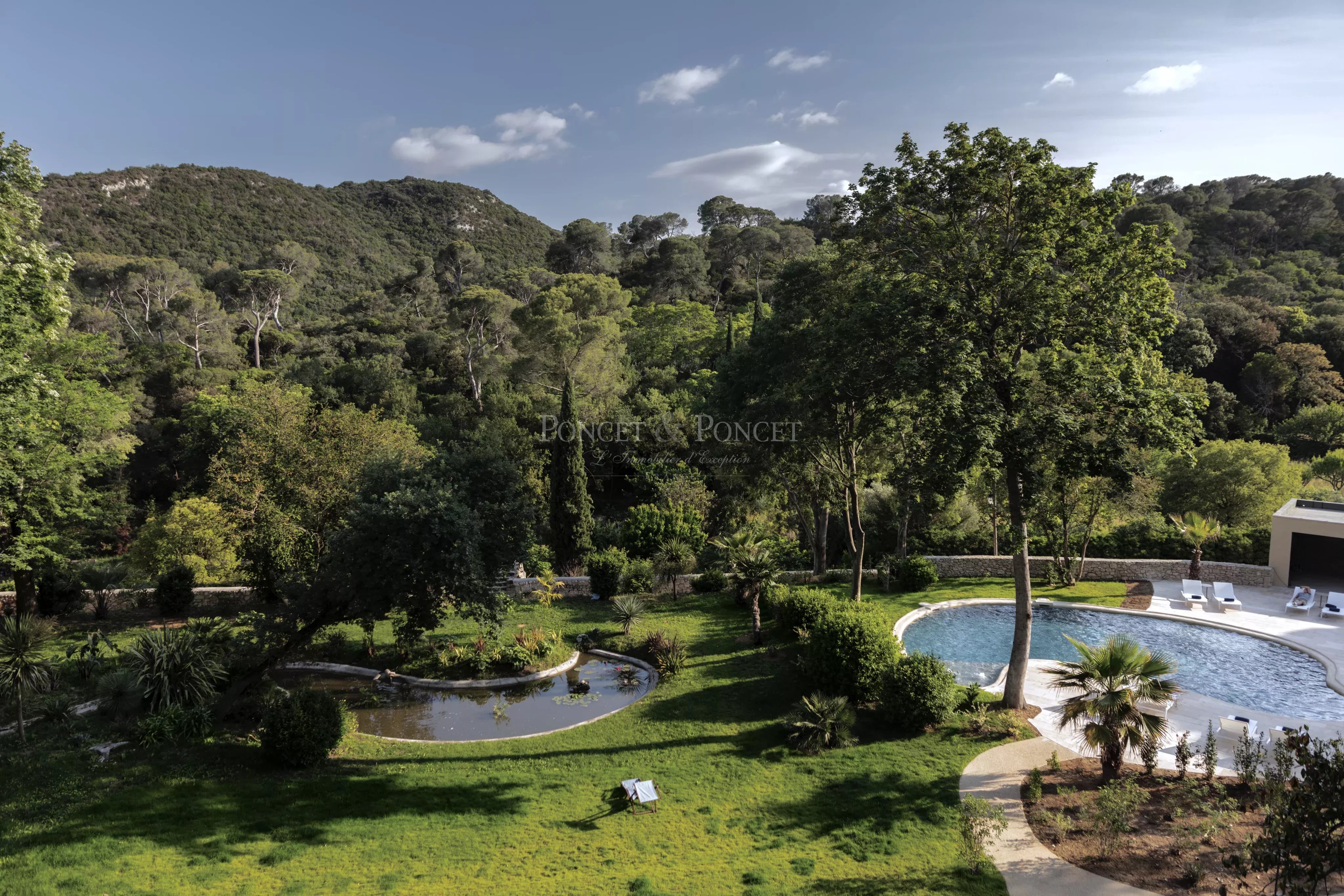 The estate extends over almost 2 hectares, featuring a succession of terraces, themed gardens, woodland areas, landscaped perspectives and open views.
