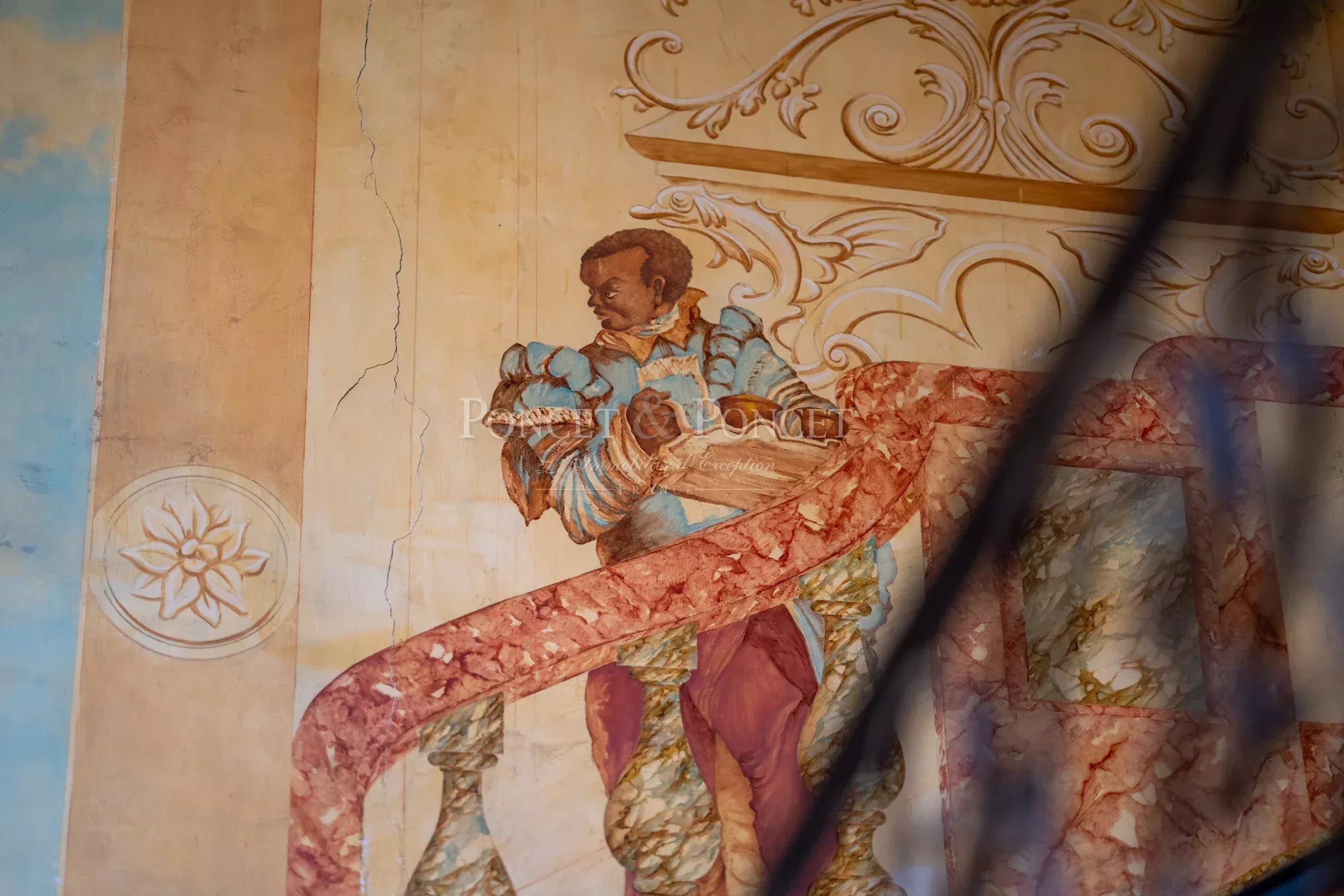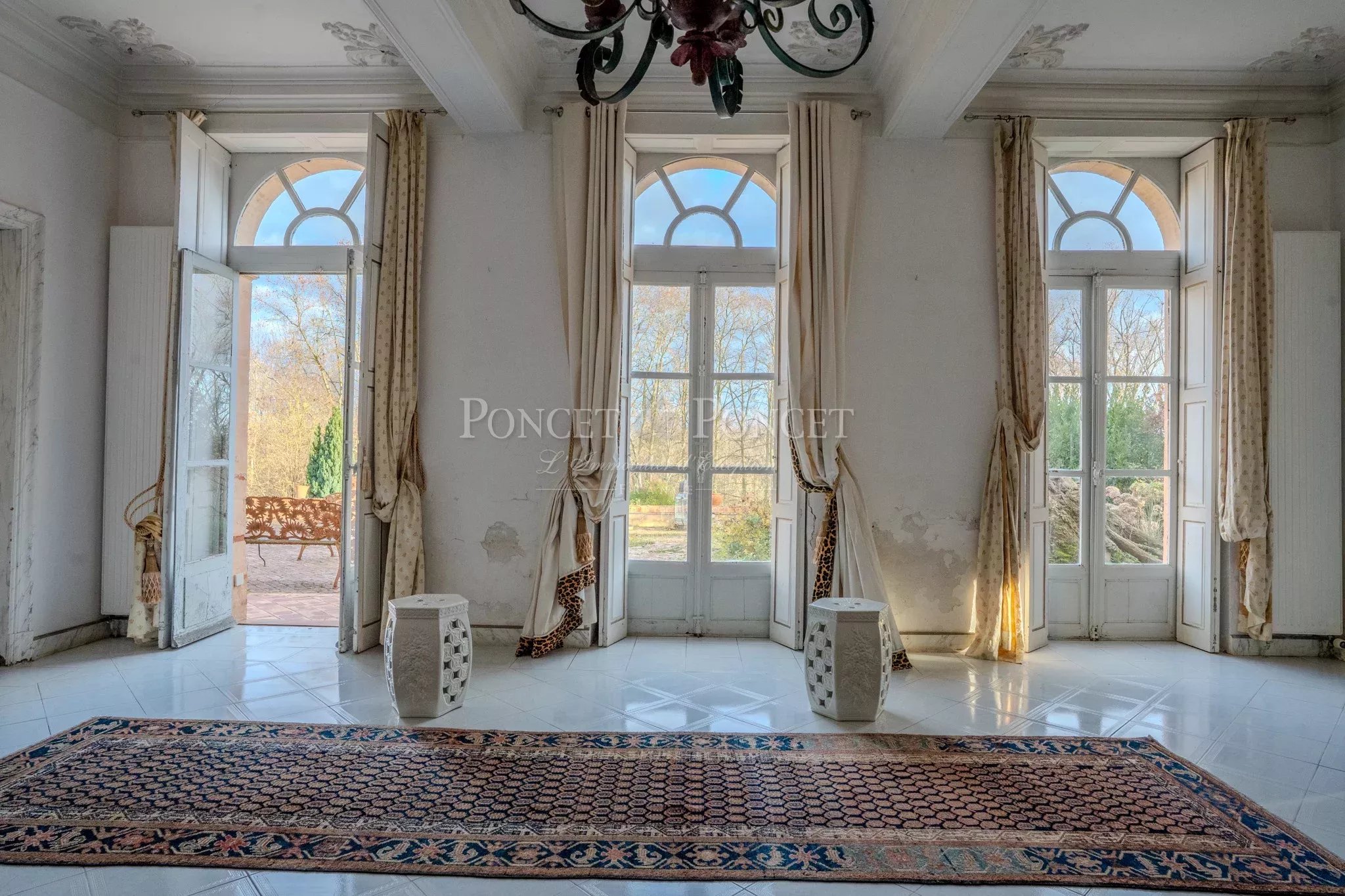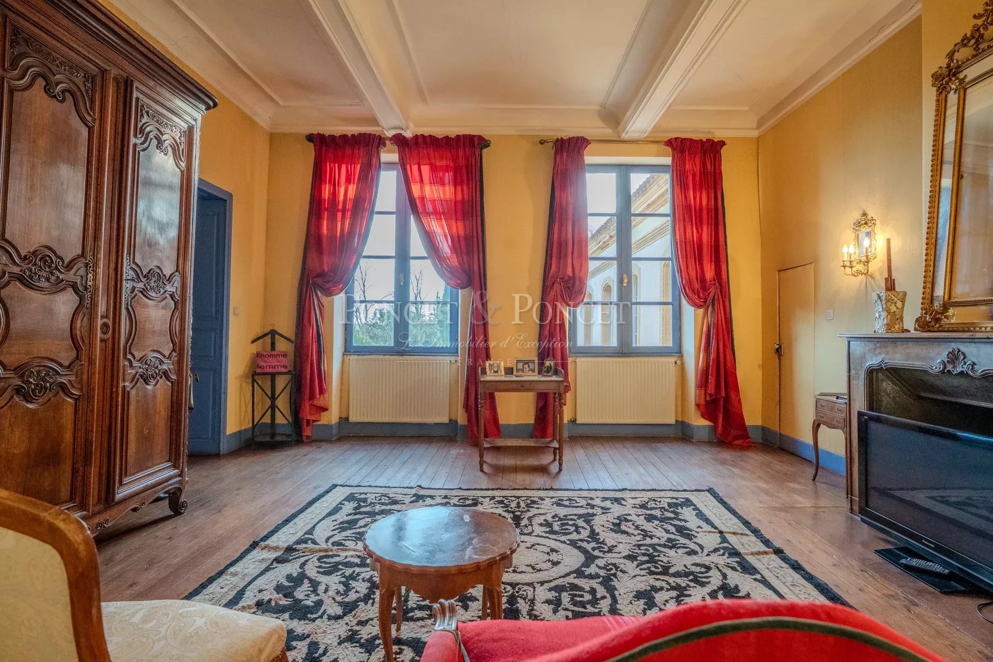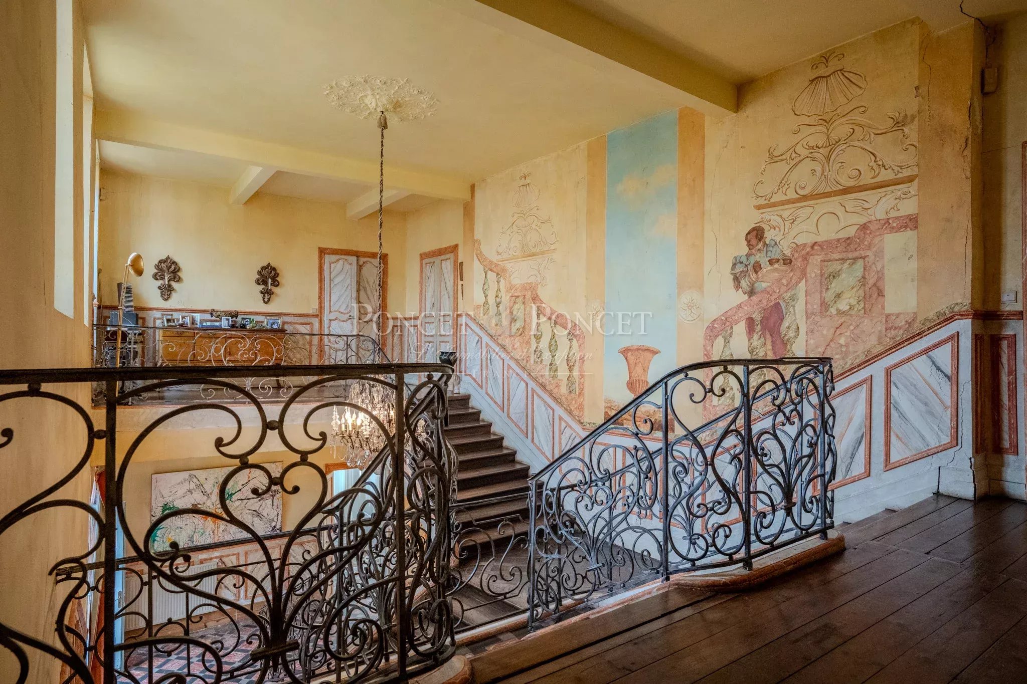 The château offers approximately 750 sqm of living space, arranged around generous and well-proportioned volumes. From the moment you enter, you are welcomed by a majestic staircase, which elegantly organizes circulation between the reception rooms and the private sleeping quarters. The reception areas are particularly appealing for their spaciousness and warm atmosphere, where Italian charm is fully expressed.