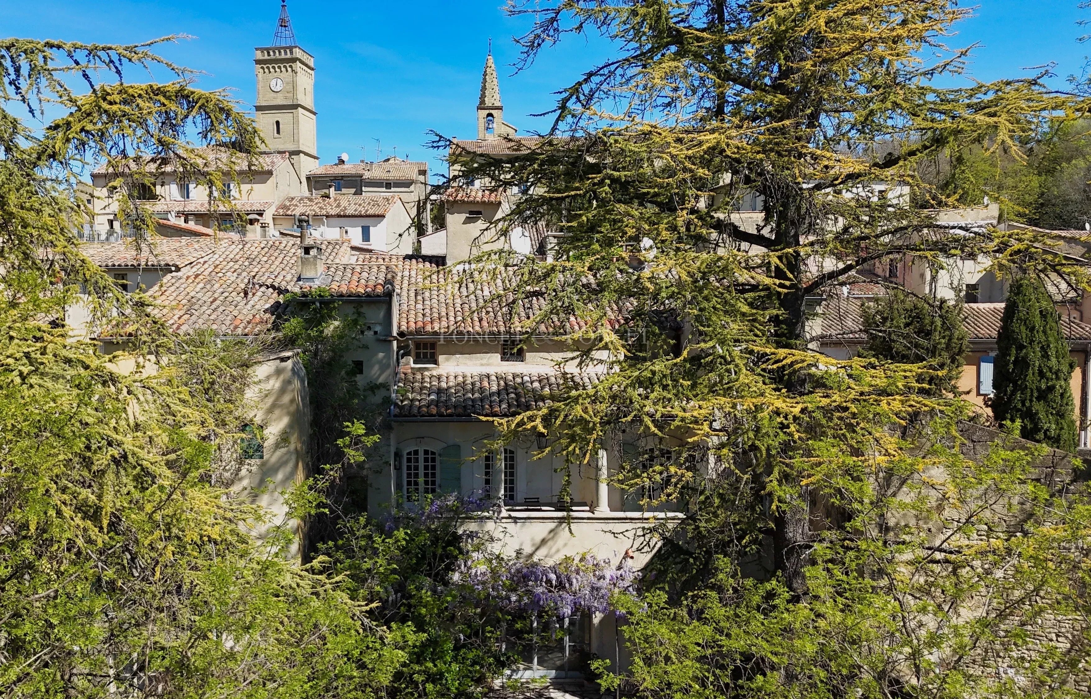 Outdoors, the 1,000 m² landscaped garden — planted with Mediterranean species and centuries-old trees — invites relaxation in a peaceful, protected setting. From this green haven, one enjoys unobstructed views, and a swimming pool could easily be added.