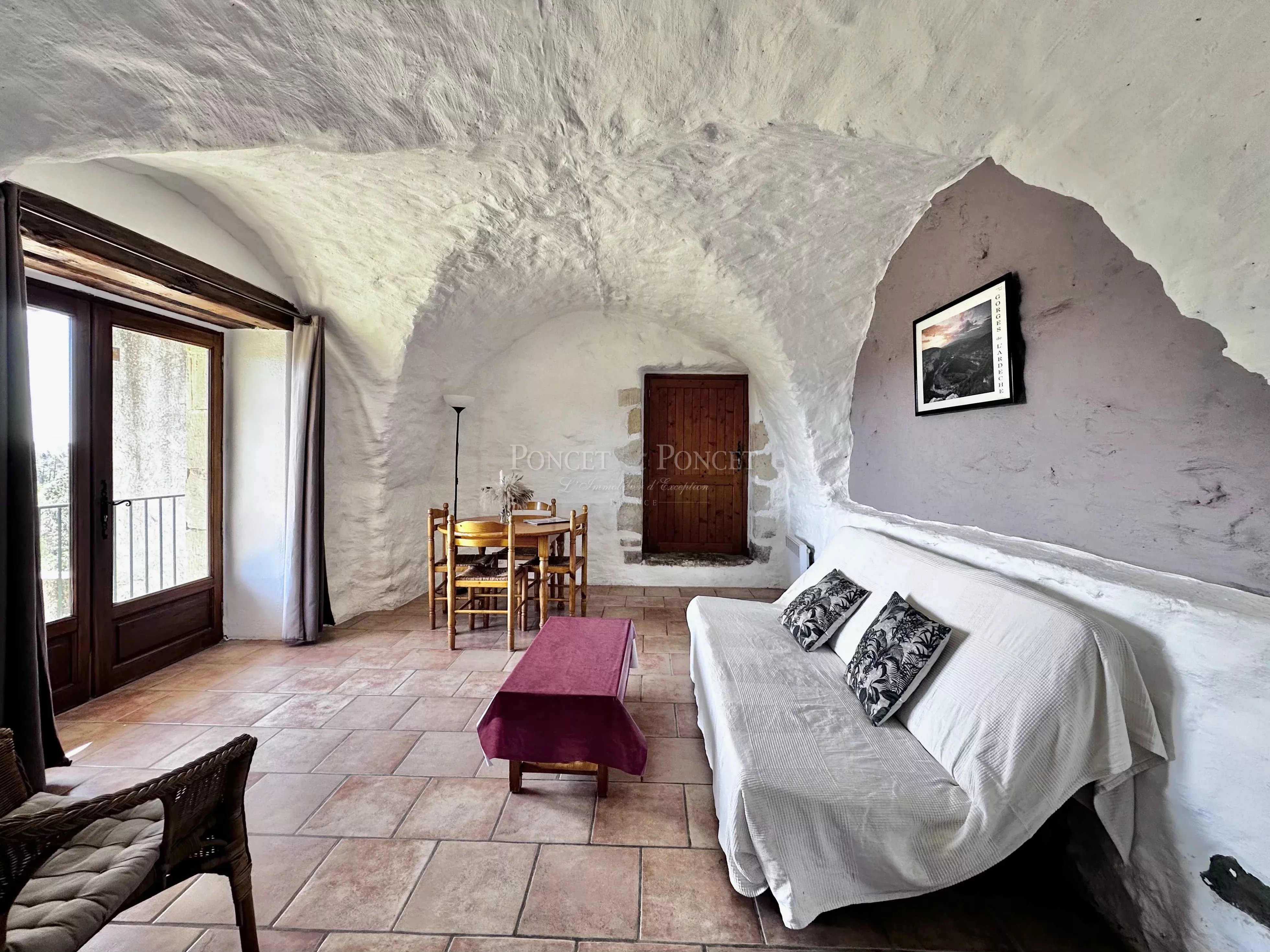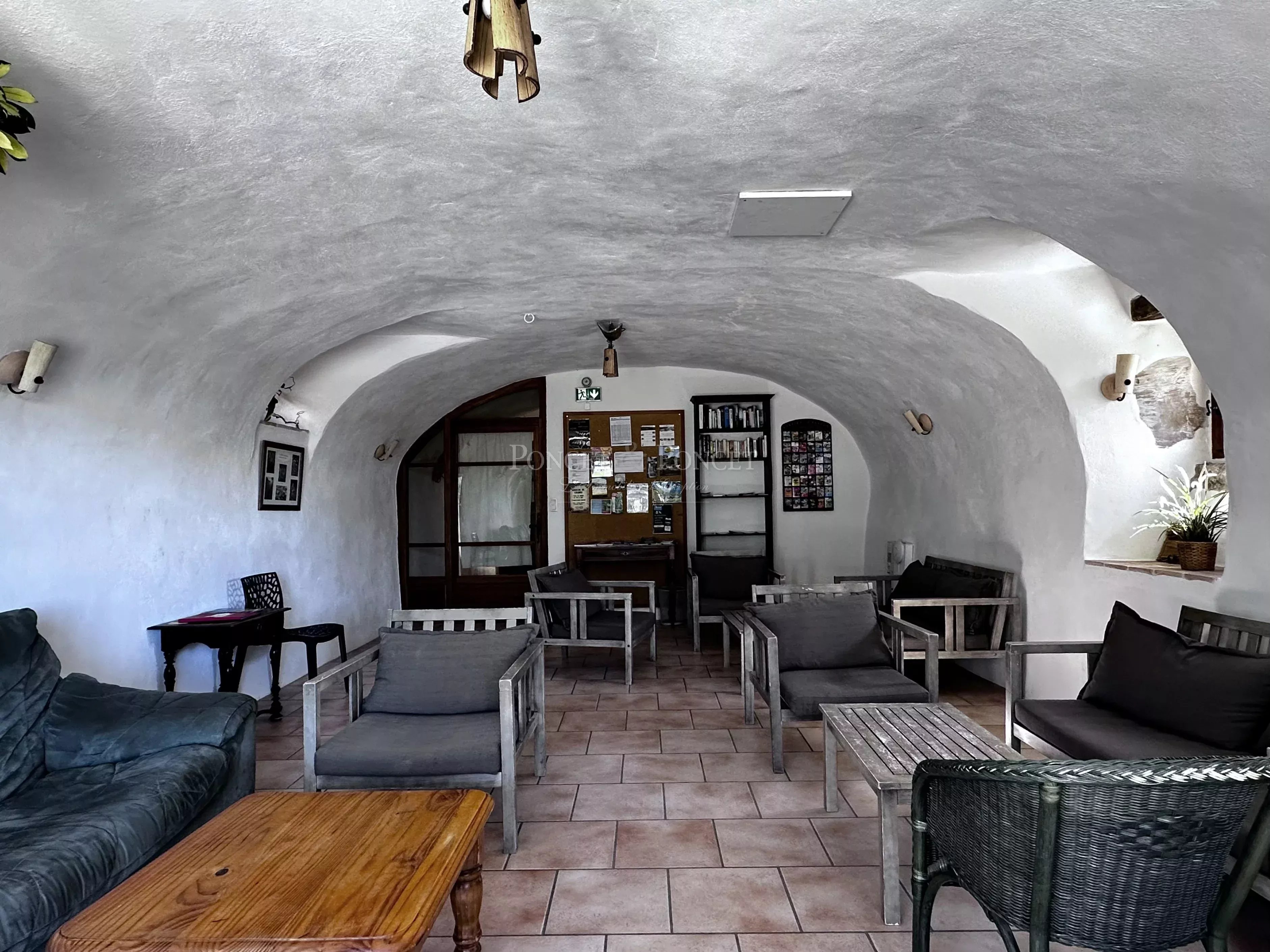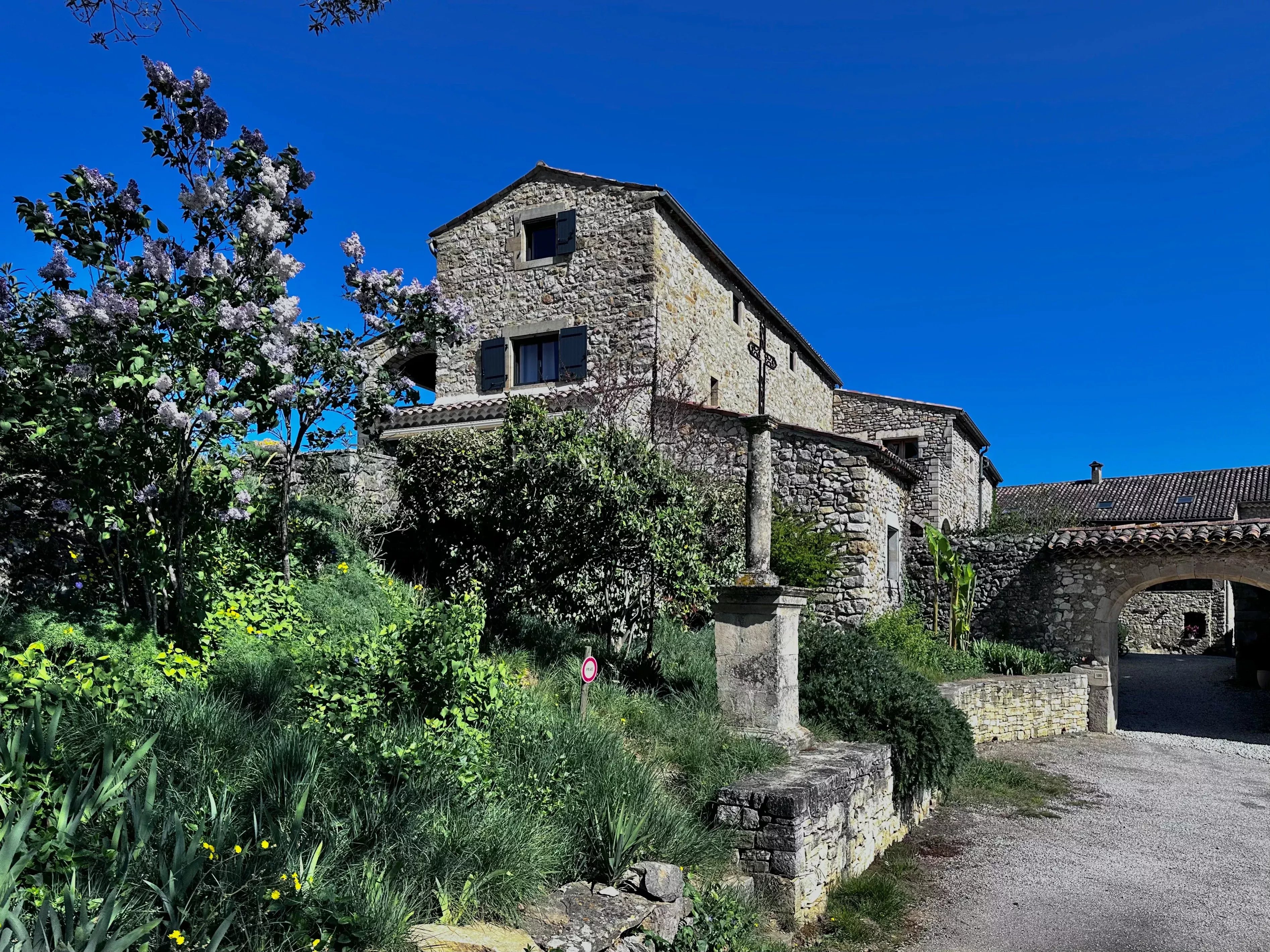 At the heart of an estate of approximately 50 hectares, the property is set within a landscape of rolling hills and typical southern Ardèche vegetation, offering open views and a high level of privacy. Its elevated position provides an extended panorama with no direct overlooking. Located within easy reach of renowned natural and heritage sites, the setting is suitable both for private use and for a hospitality business, with convenient access while remaining away from busy roads.