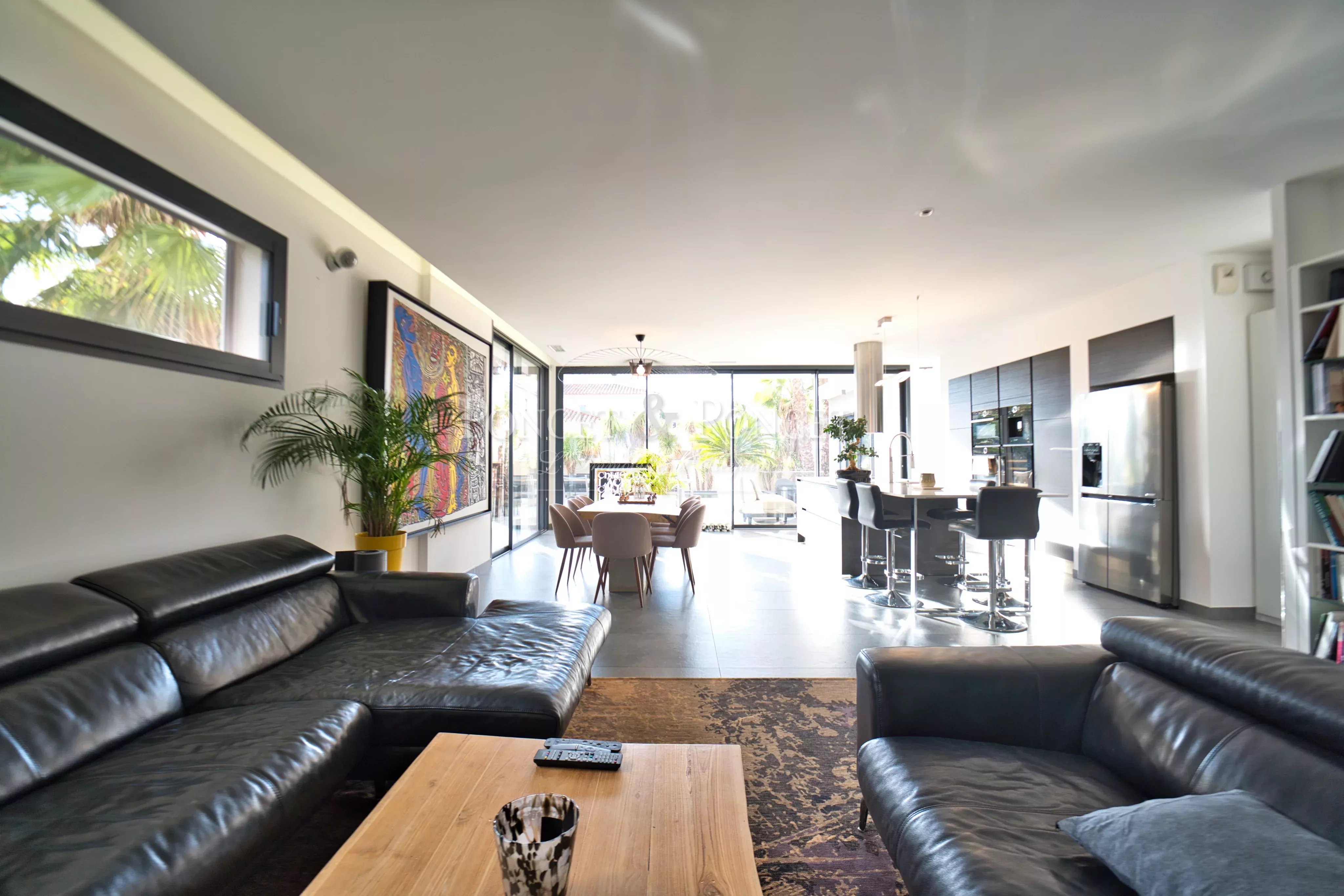 The heart of the home, warm and minimalist, naturally flows to the outdoors where the swimming pool and jacuzzi create a true private retreat.