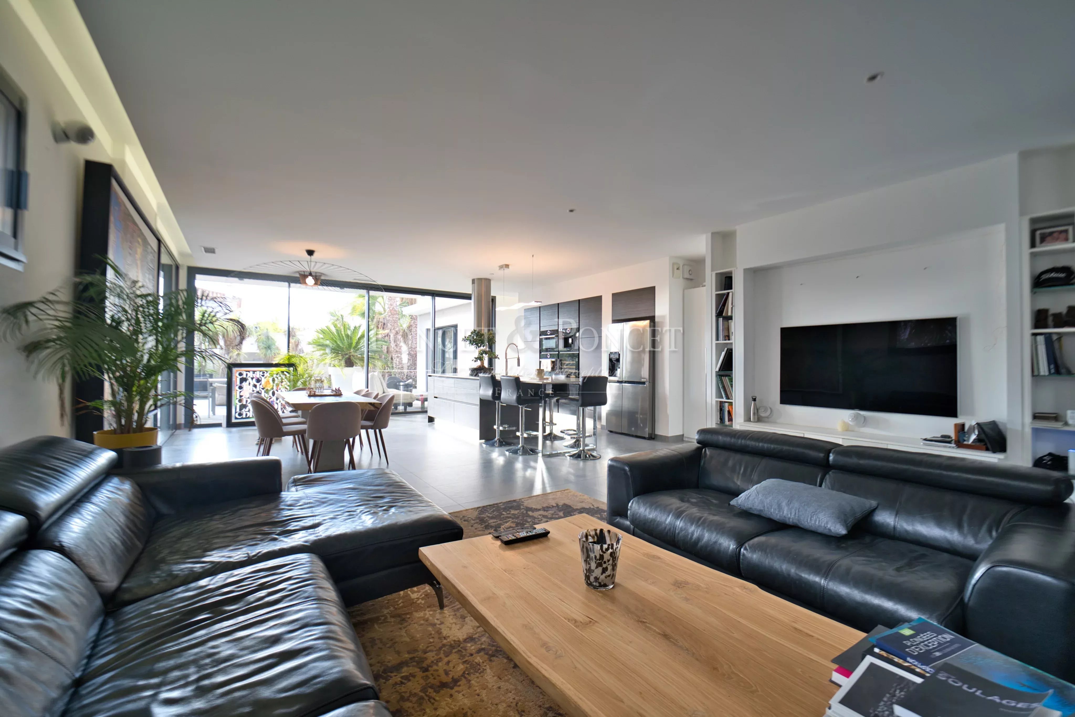 This contemporary villa offers approx. 180 m² of refined living space, filled with natural light and enhanced by large openings facing a beautifully landscaped, intimate garden.