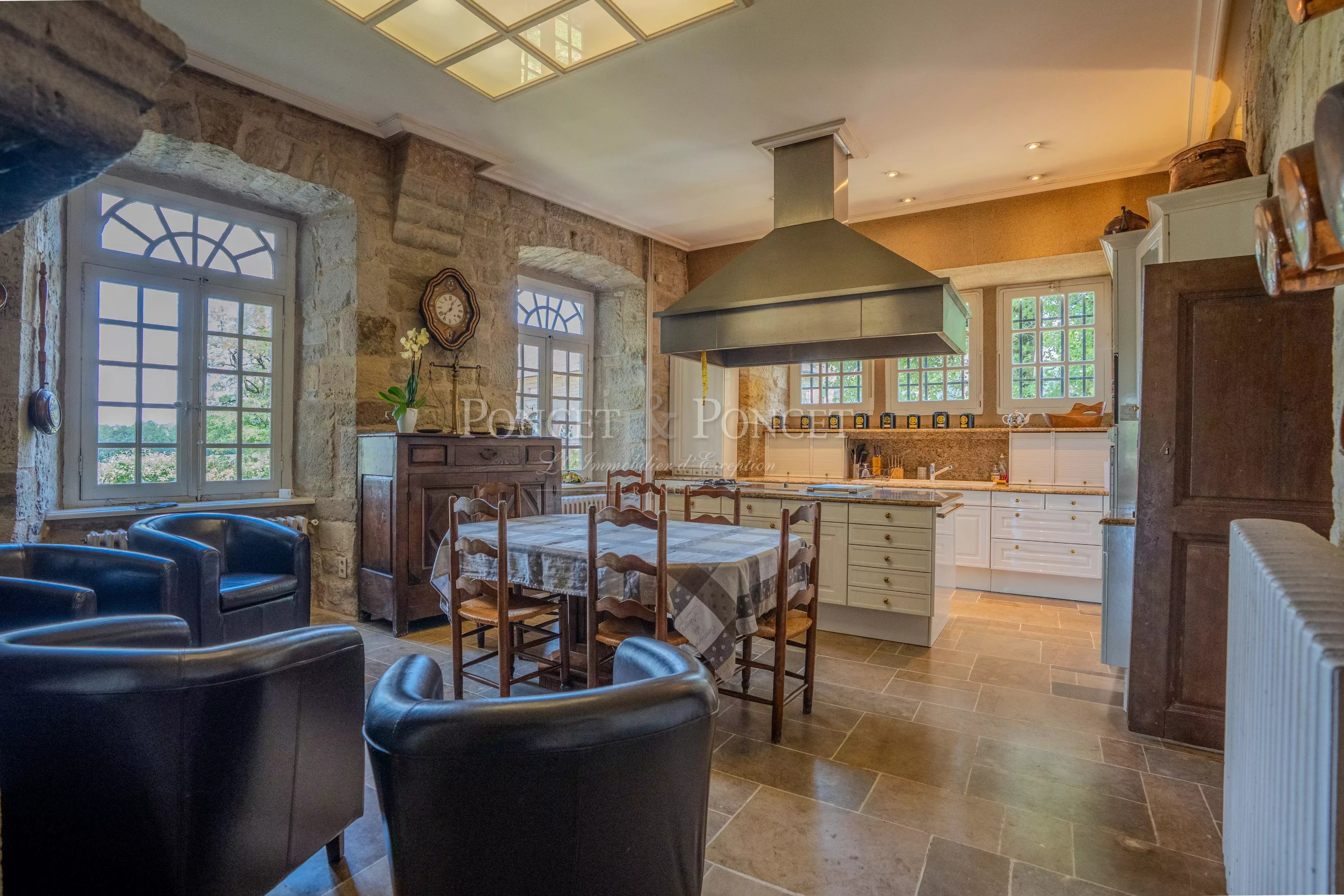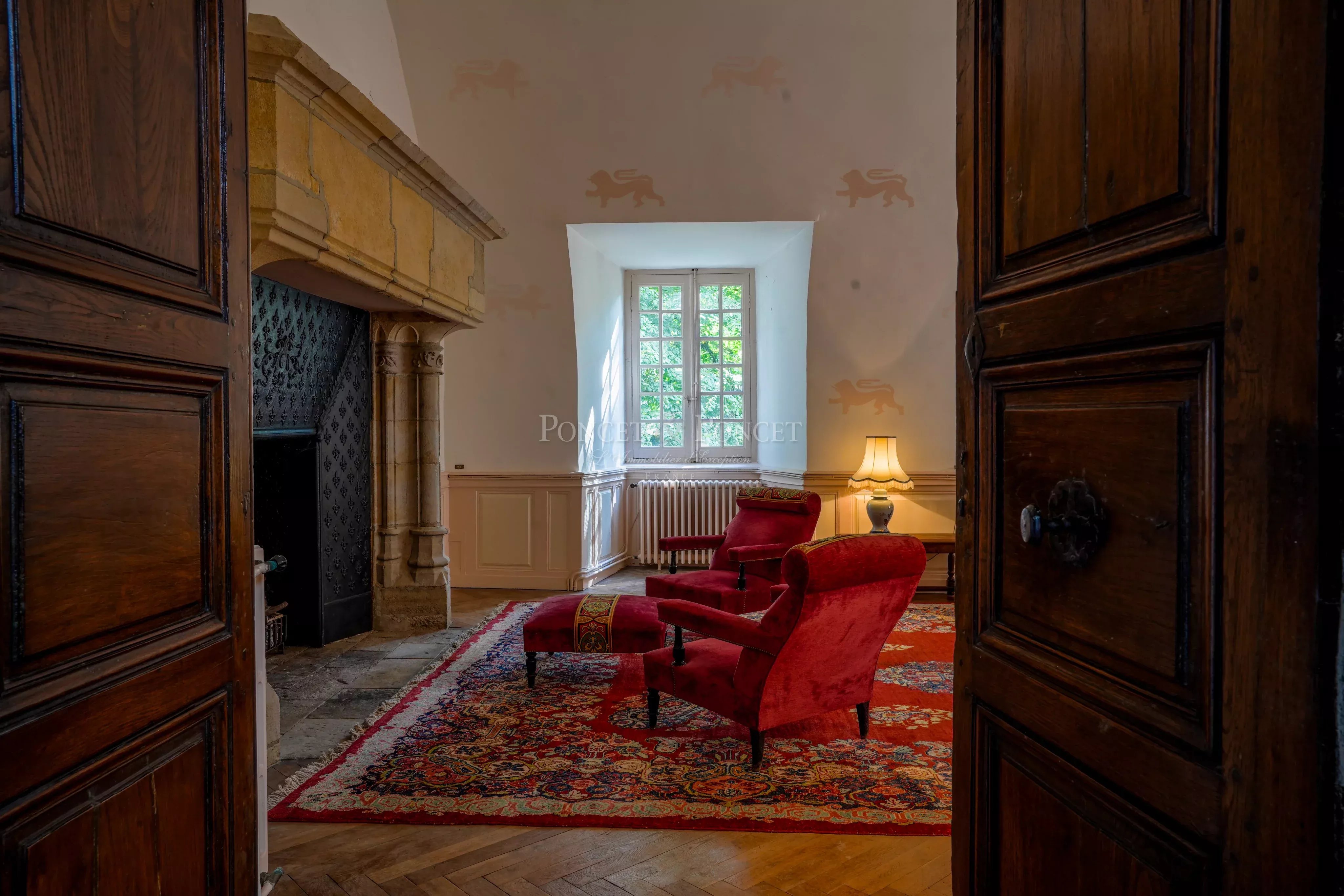 The Property: This entirely renovated castle includes 15 very spacious rooms, with a surface area of 1700 m² (total surface area 2400 m²) numerous lounges, kitchen and dining room. Woodwork and old floors, fireplaces and stone staircase, make this building majestic while being very comfortable. The castle is lived in as a home, because the owners have invested in their comfort and that of their friends.