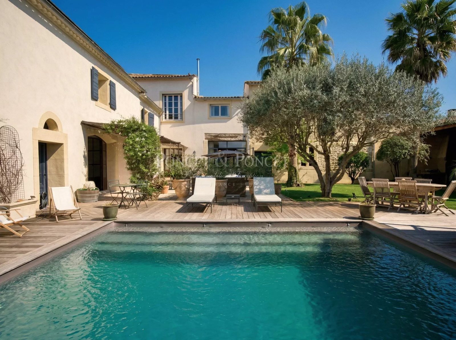 The well-structured, landscaped garden is organised around various living spaces: terraces, shaded areas, a covered courtyard with a barbecue, a swimming pool, a sun deck and a pétanque court.