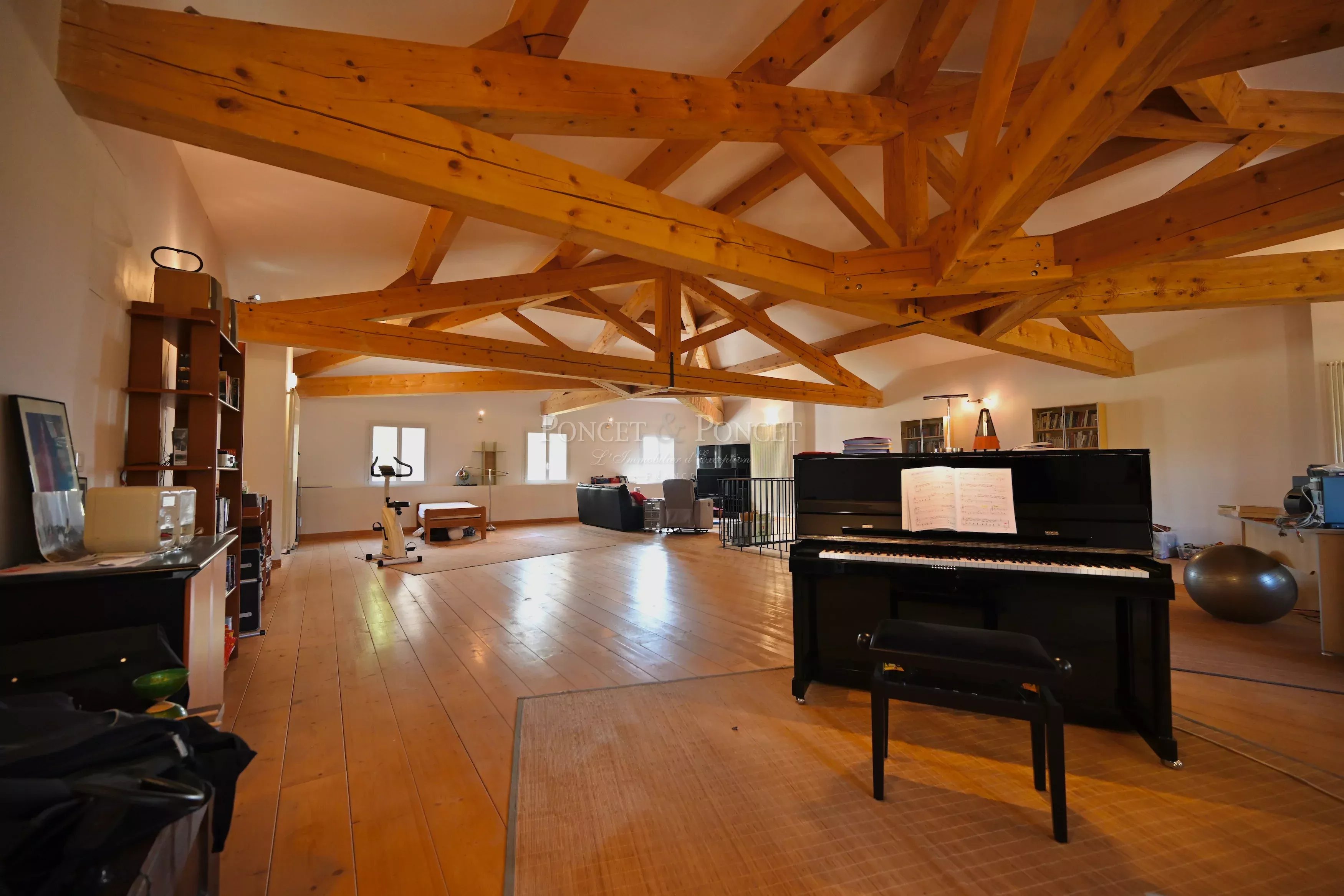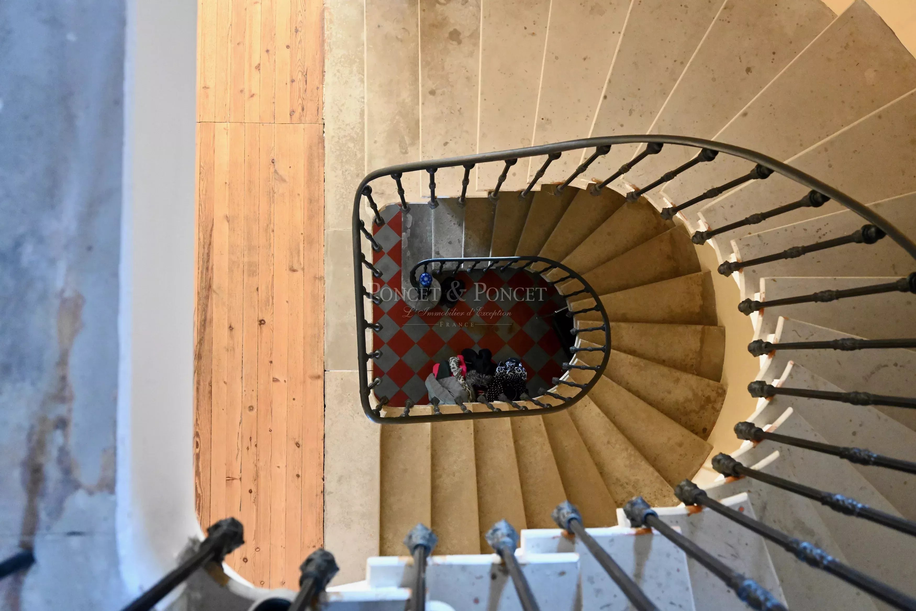 A Maison de Maître dating from 1868 in very good condition with central heating, on 3 levels of 140 m2 each, with living rooms and 2 offices on the ground floor, 4 bedrooms on the 1st floor and a very large loft on the top floor under a magnificent roof structure. There is also a swimming pool area on one side.
