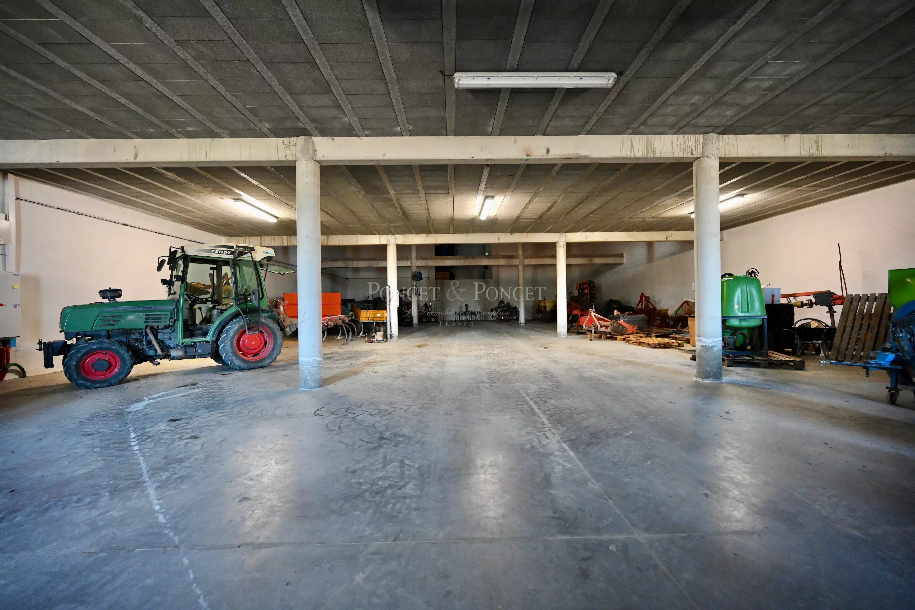 Another separate operating building has been built for trading purposes. It is currently empty, apart from the farm equipment, which is protected inside. It has a floor area of 430 m2, with high ceilings and a reinforced slab. It is fully insulated and enclosed. Level +1 is 212 m2, and level +2 is 100 m2. They can be converted for all types of business or company accommodation. There is also a 92 m2 shed and an 81 m2 garage with an 81 m2 upper floor.
