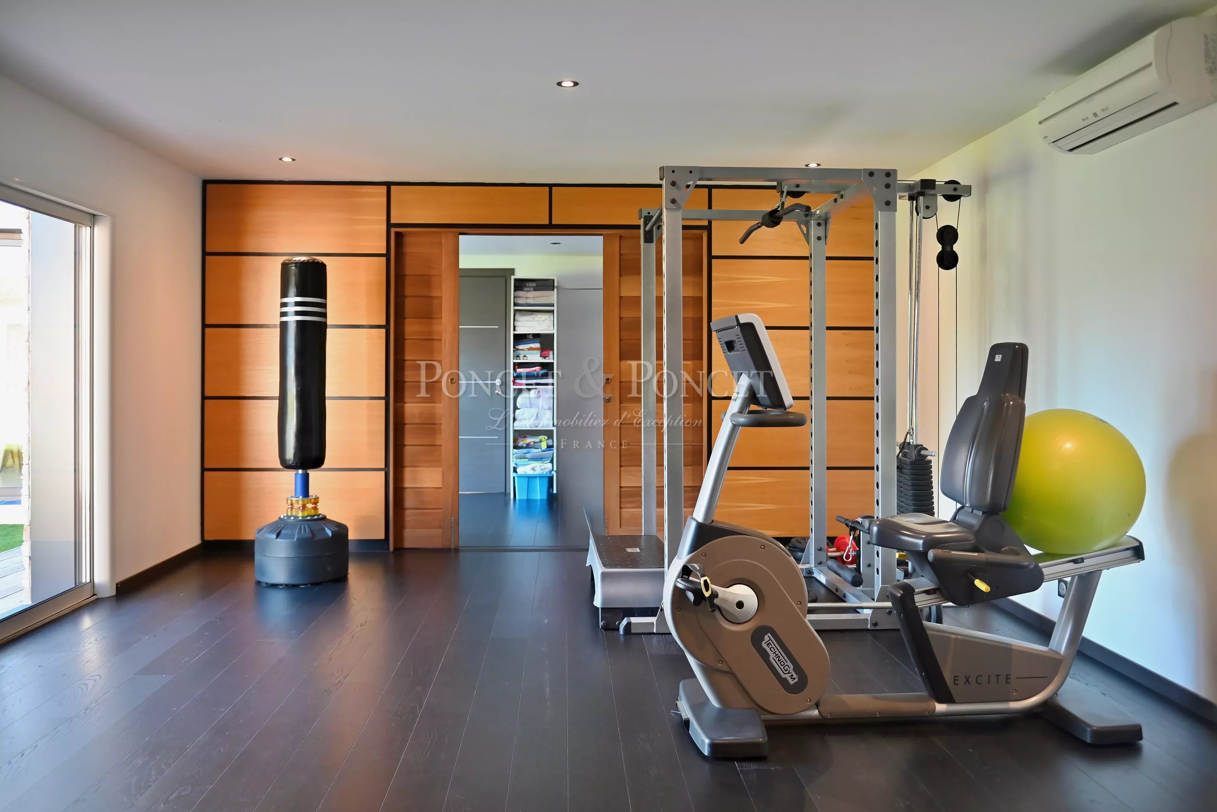 Deux chambres de plain-pied, un dressing, une grande salle de sport avec salle d’eau (pouvant aisément devenir une suite indépendante) et une salle de bain complètent ce niveau.
