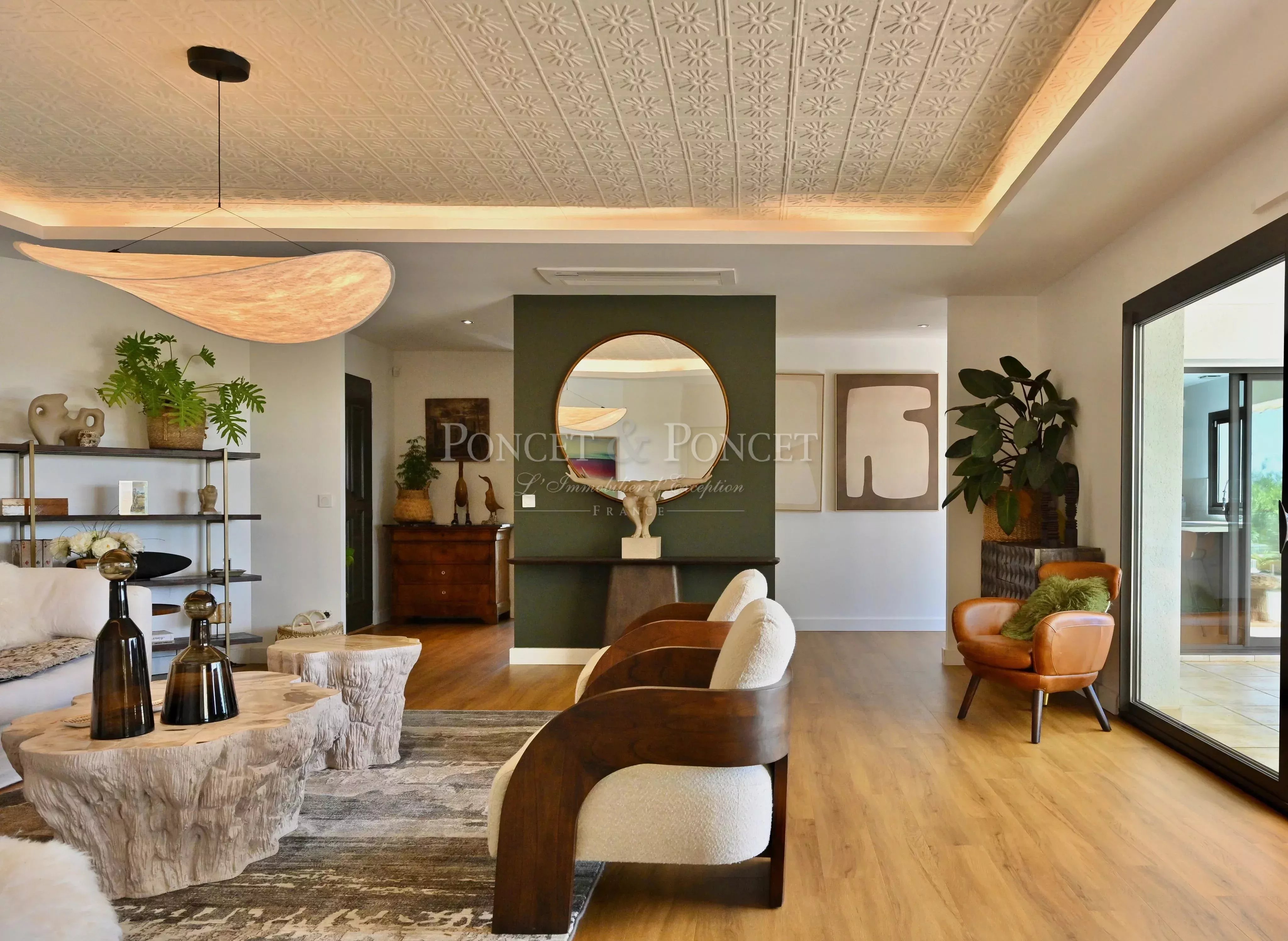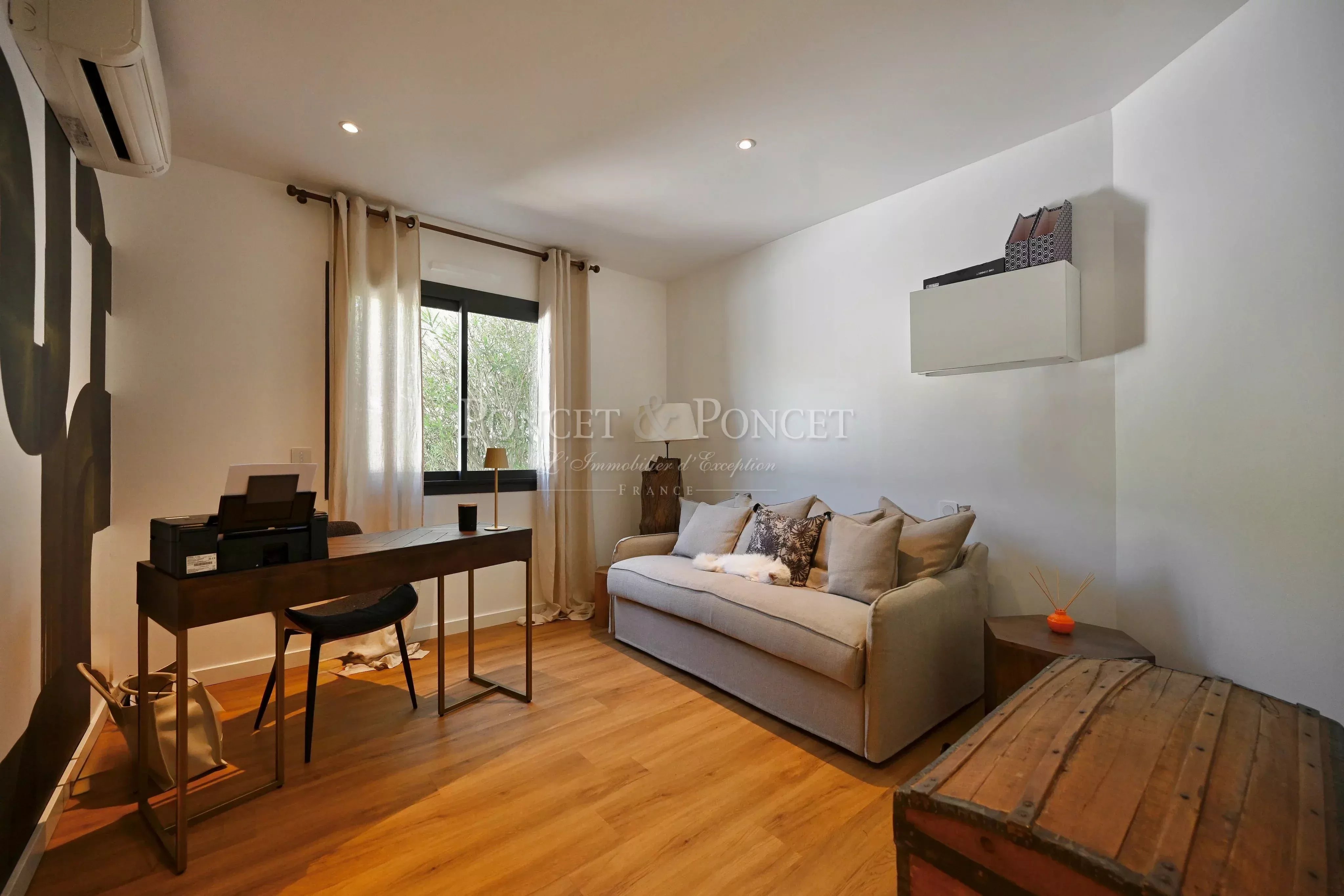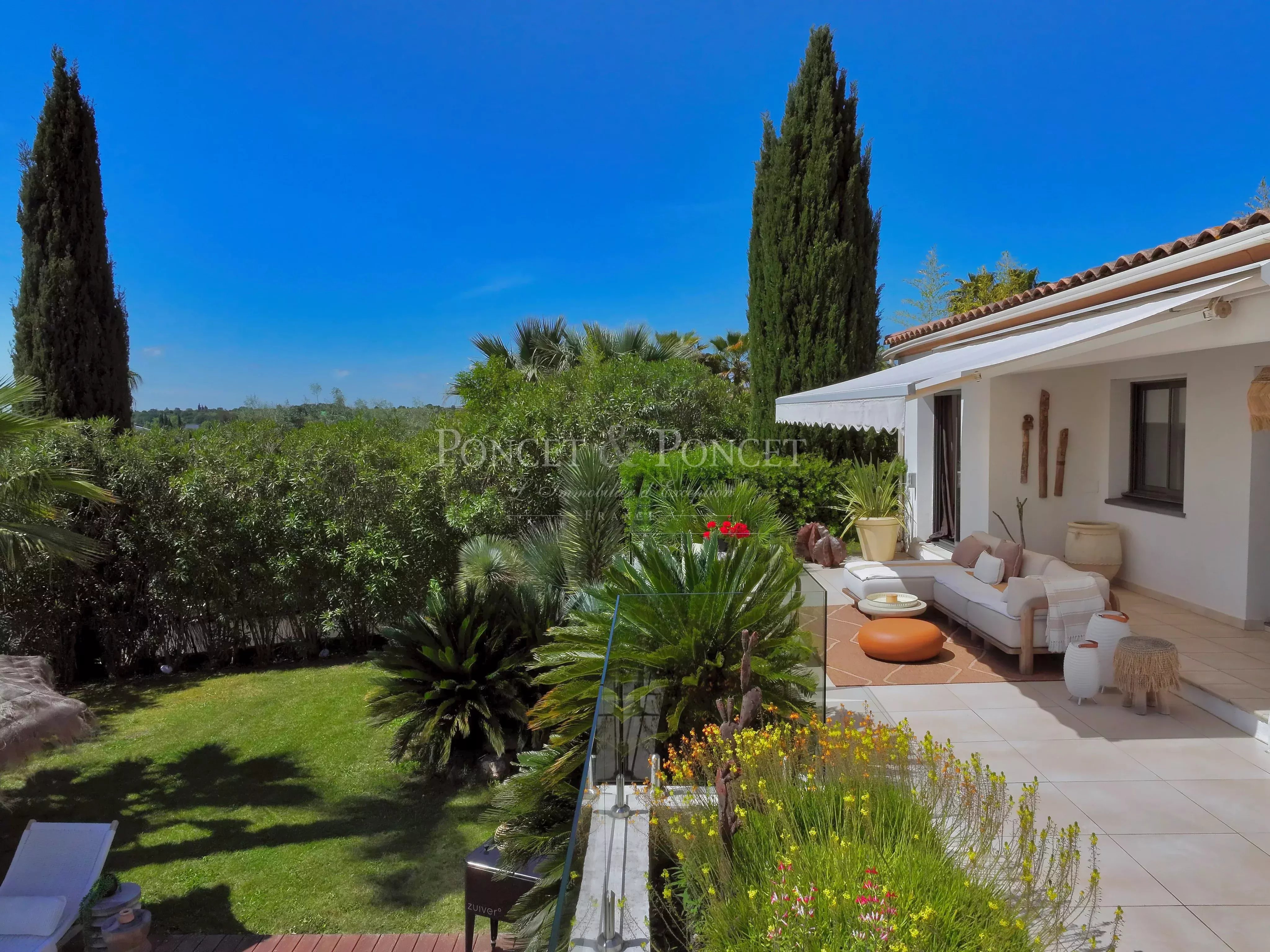 Dès l’entrée, l'omniprésence de la lumière naturelle et l'esthétique chic des volumes opèrent. La pièce de vie communique avec la salle à manger, créant un espace de vie très confortable. La cuisine américaine, dotée d'équipements haut de gamme récents, est subtilement complétée par une arrière-cuisine fonctionnelle. Toutes les pièces de vie et de réception s’ouvrent sur les terrasses extérieures par de larges baies vitrées, prolongeant ainsi l’espace de vie. Véritable esprit In&Out parfaitement réfléchi pour profiter de la vue et du soleil au maximum.