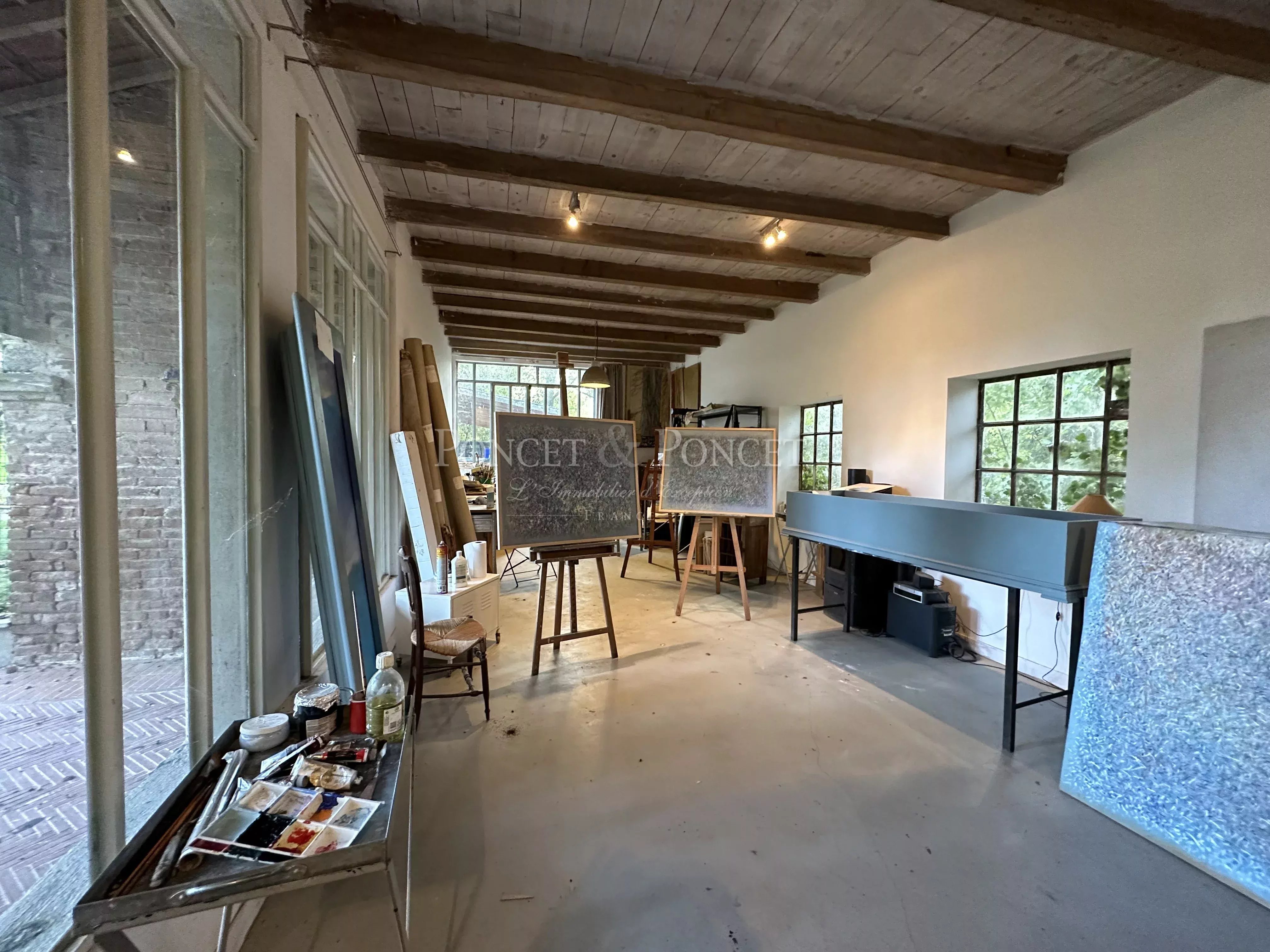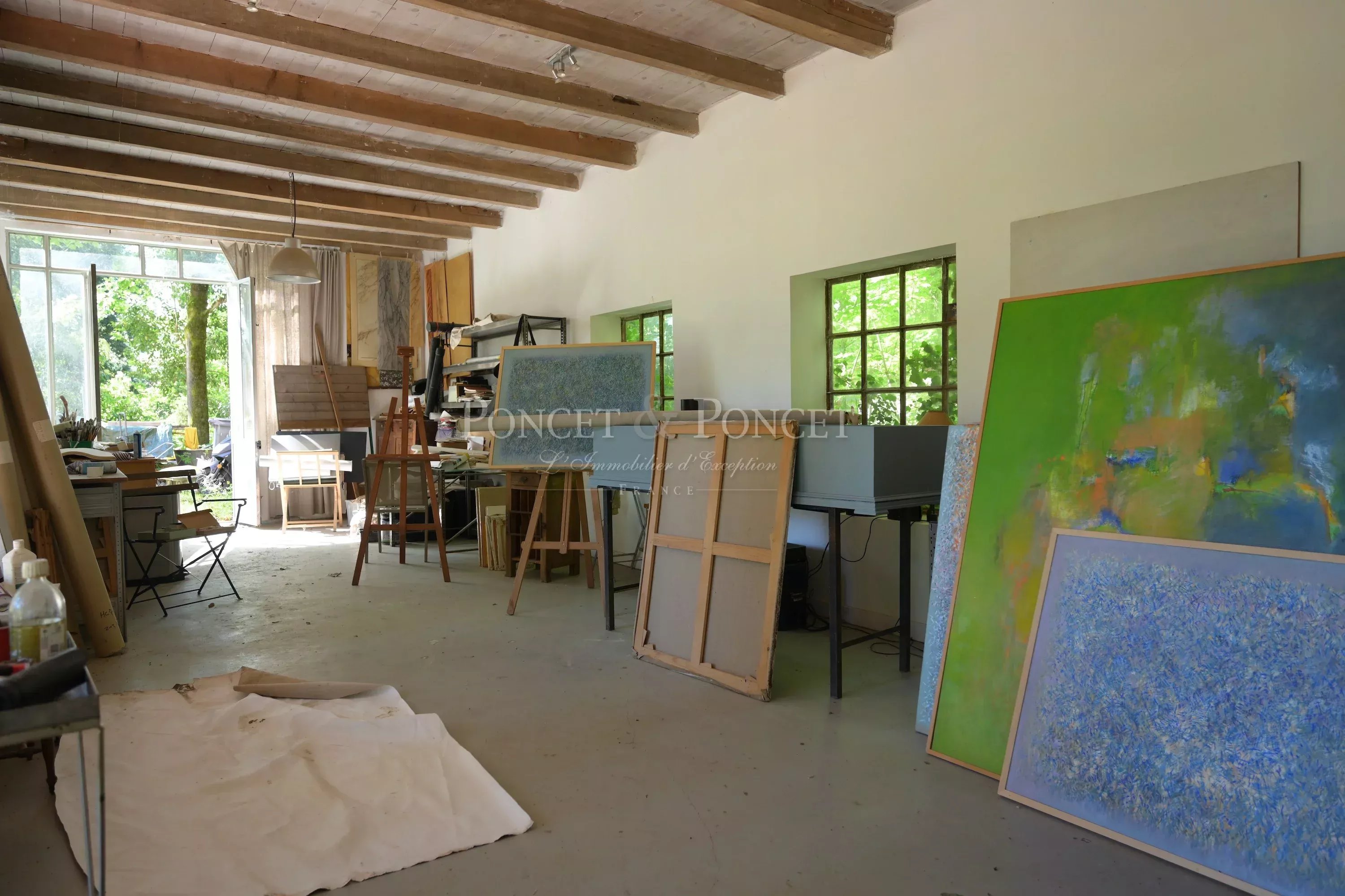 Une dépendance possède un espace de 100 m2 qui a été aménagé en salle de réception climatisée, un Barnum de 300 m2 la jouxte. Un atelier d’artiste très lumineux d’environ 70 m2. Un ancien chenil attenant à l’atelier peut être rénové