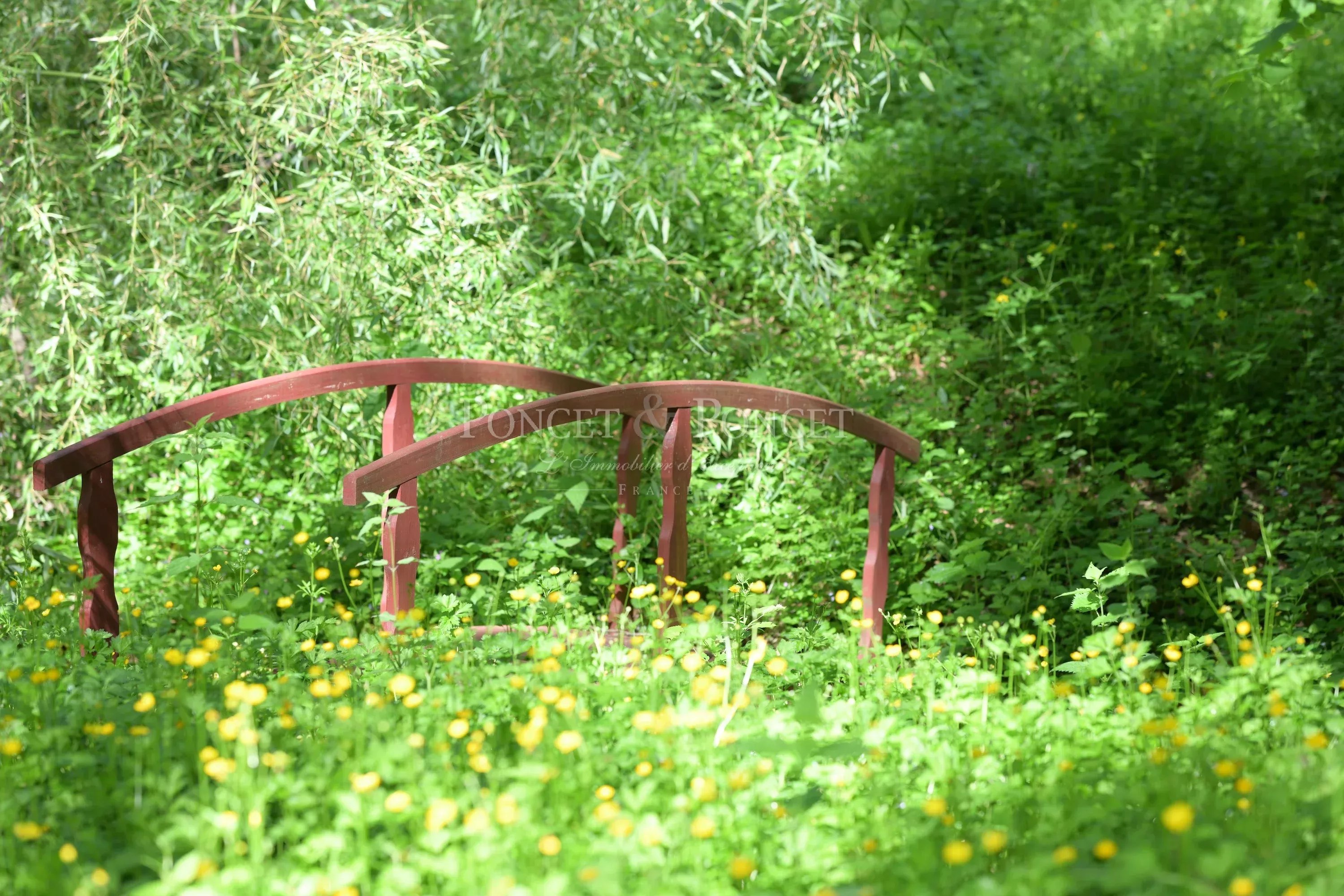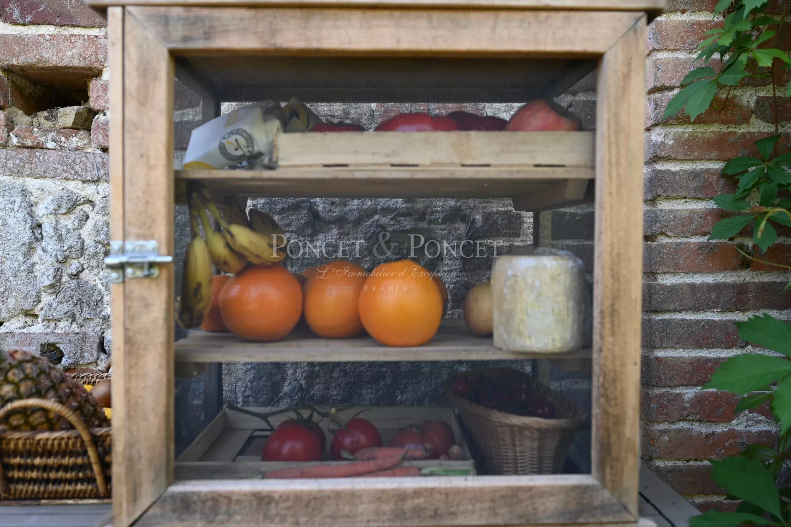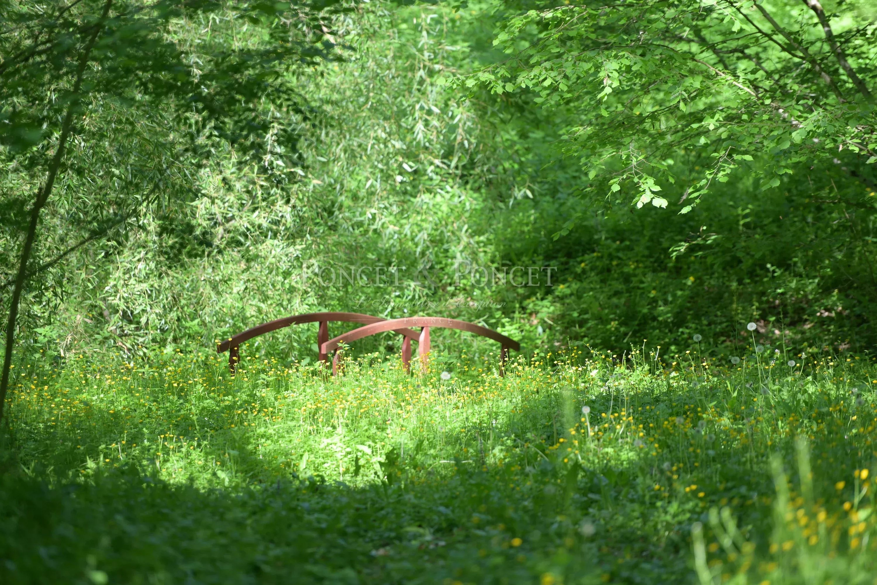 Un très beau parc protège la propriété de tous regards, avec son petit bois qui descend jusqu’à la rivière où on peut se baigner grâce à une petite plage, un verger et une roseraie. L’espace piscine (11 x 6) est sécurisé, il offre un petit pool house avec cuisine d’été.