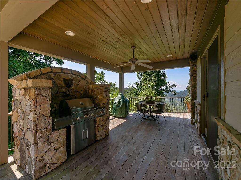 Intoxicating. Incredible. Inspirational long range Blue Ridge Mountain views offer priceless vistas. Like no other. Sited for private tranquility on +/-3.0 acres & situated at 3,000' elevation in the prestigious gated community of Poplar Ridge in South Asheville. Main level living incorporates: 20' Cathedral Ceiling, Great Room floor to ceiling windows, 4 stacked stone fireplaces, primary suite on main w/a private covered deck, 2 home offices, gourmet chef's kitchen w/a butler's pantry, dining room, and den. Al fresco living exists on 2 levels of expansive decks (including a stone encased grill), a welcoming flat side yard & beautifully lush landscaping. The terrace level provides: another kitchen, pantry, dining area, family room, bedroom, baths, media room, bonus room, storage, gym/exercise room, utility rooms, & a relaxing hot tub. This is the first time e-v-e-r that this stellar home has been on the market - so, take advantage of this rare opportunity to call 99 Crestridge "home."