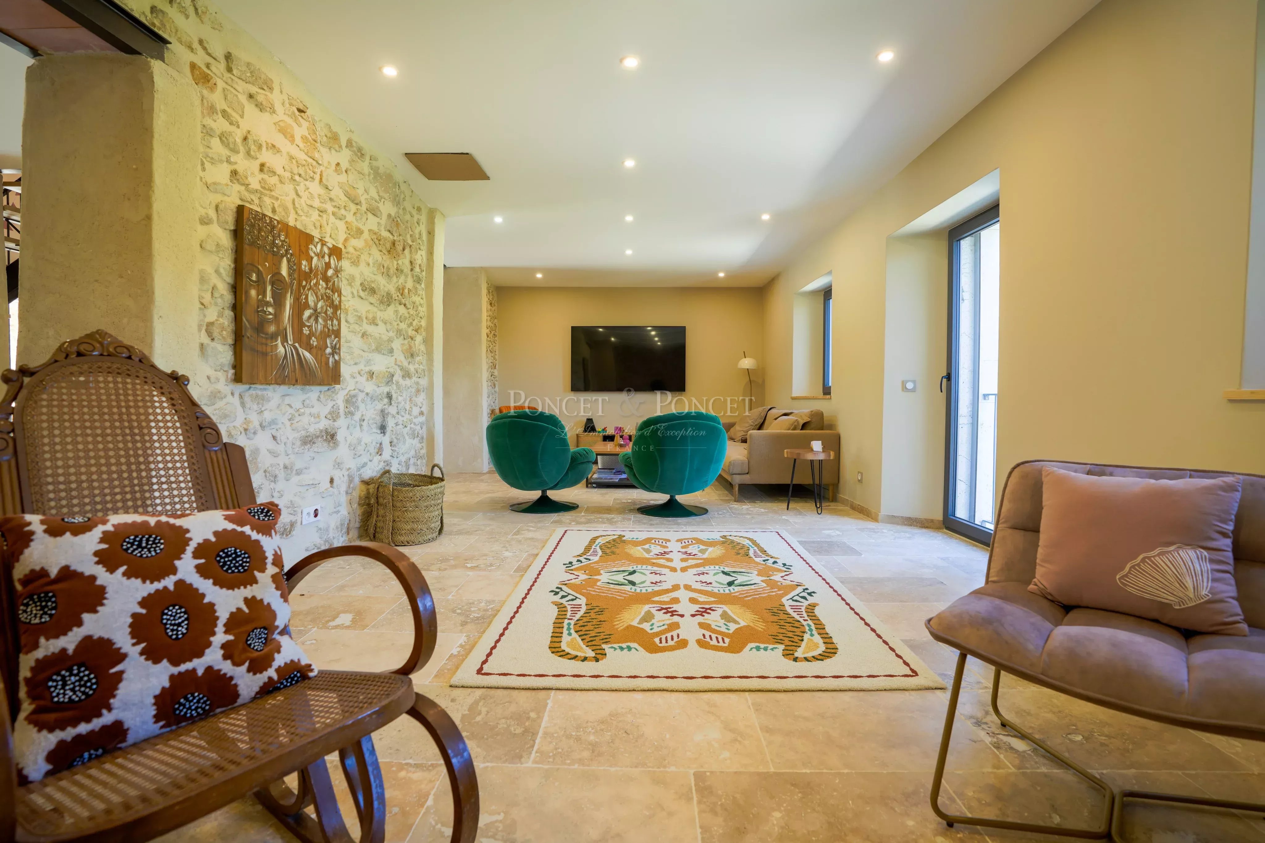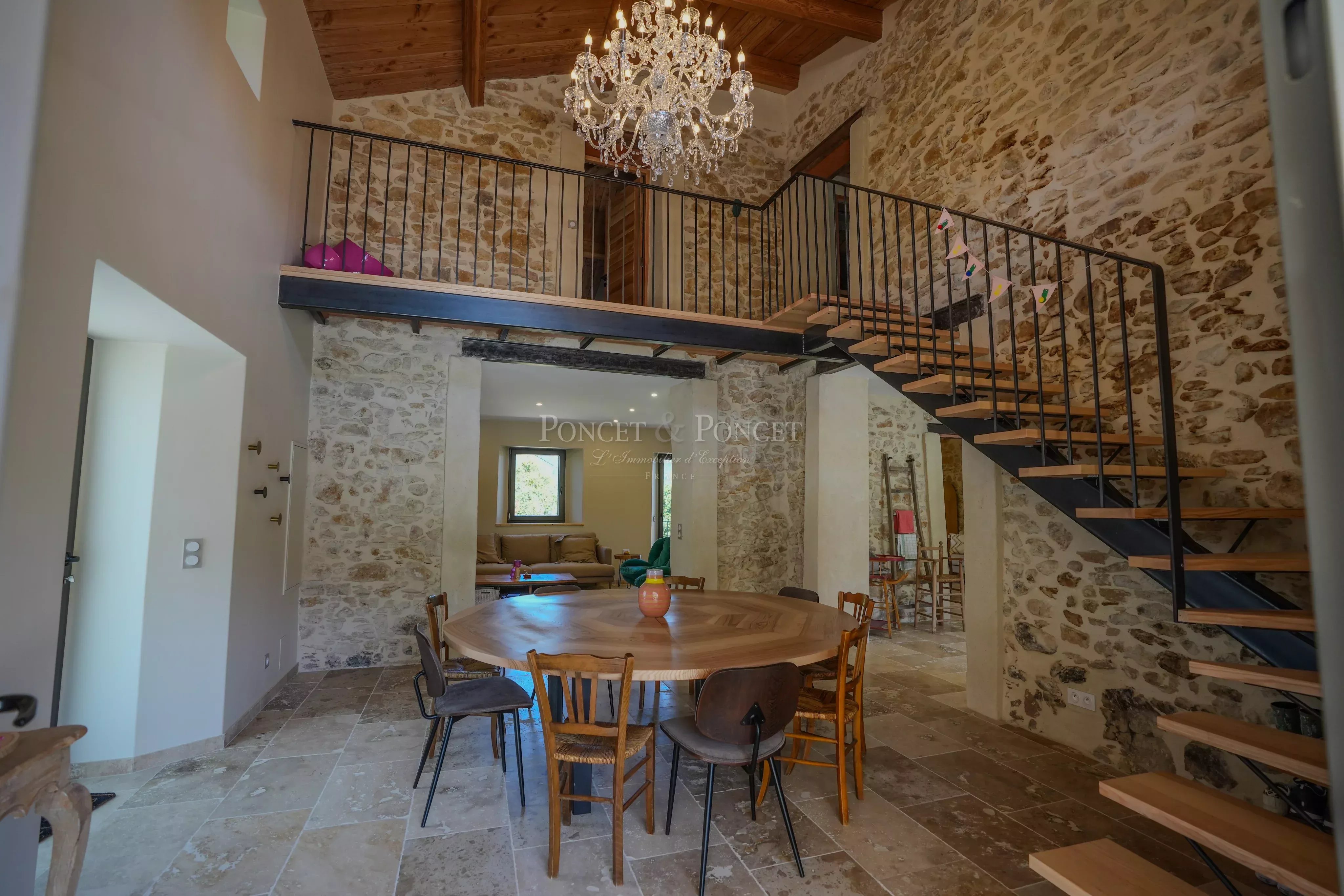 Ce mas de caractère, entièrement restauré avec un soin remarquable, déploie 258 m² habitables complétés par 95 m² d’annexes. Dès l’entrée, le charme opère : salon et salle à manger cathédrale avec 6 m de hauteur sous plafond, cuisine conviviale avec grand îlot central ouvrant de plain-pied sur une terrasse couverte de 29 m². Il offre 5 chambres dont 3 suites, deux chambres supplémentaires partageant une salle de douche, ainsi qu’une buanderie/dressing. Un studio/pool house en rez-de-jardin jouxte la piscine intérieure (5 x 2,8 m), tandis qu’à l’extérieur, une piscine plein sud (7 x 3,5 m) et sa vaste terrasse abritée vous attendent. Sur un terrain de 2 518 m² au calme absolu et la possibilité d'acquérir le terrain voisin de 887 m² agrémenté d’un ancien puits.
