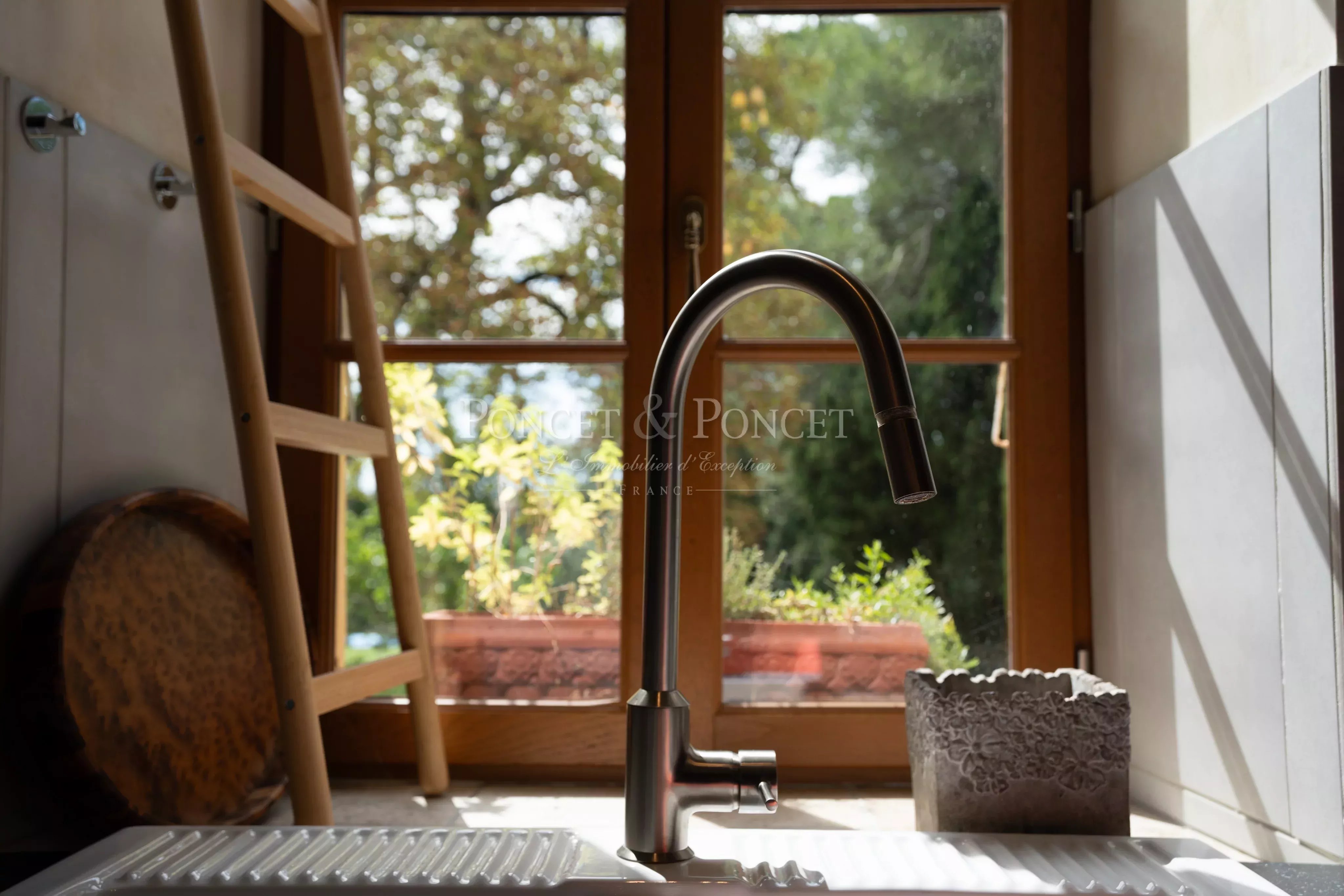 • Une maison annexe indépendante propose un salon avec cheminée, une grande cuisine conviviale, un bureau et, à l’étage, deux chambres climatisées, idéale pour accueillir famille et amis.