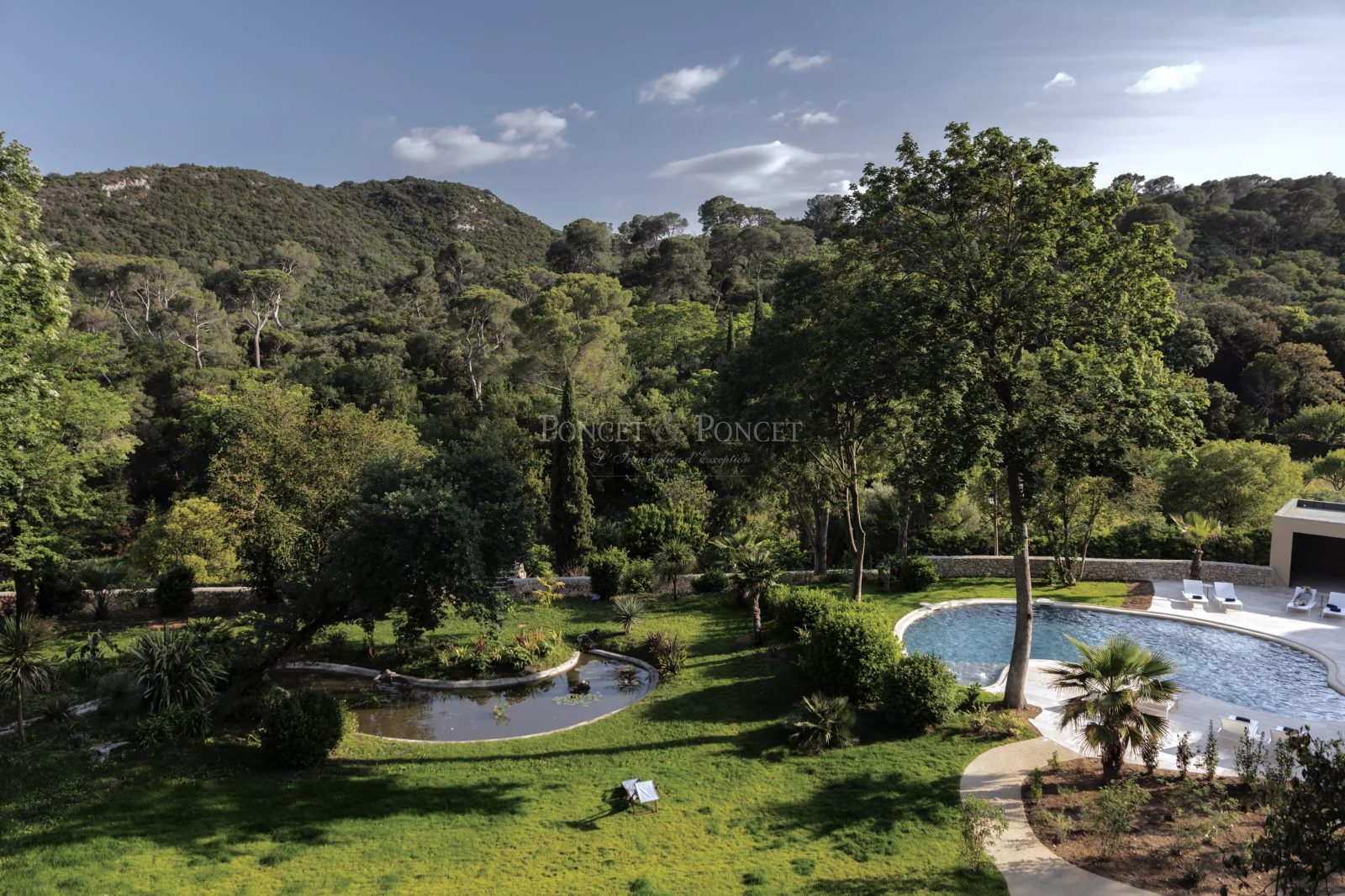 Les salons lumineux, salles voûtées, pièces de réception et circulations équilibrées composent un ensemble fluide et élégant. Les matériaux, pierre, bois et ferronneries d’art dialoguent avec une décoration contemporaine sobre et maîtrisée.