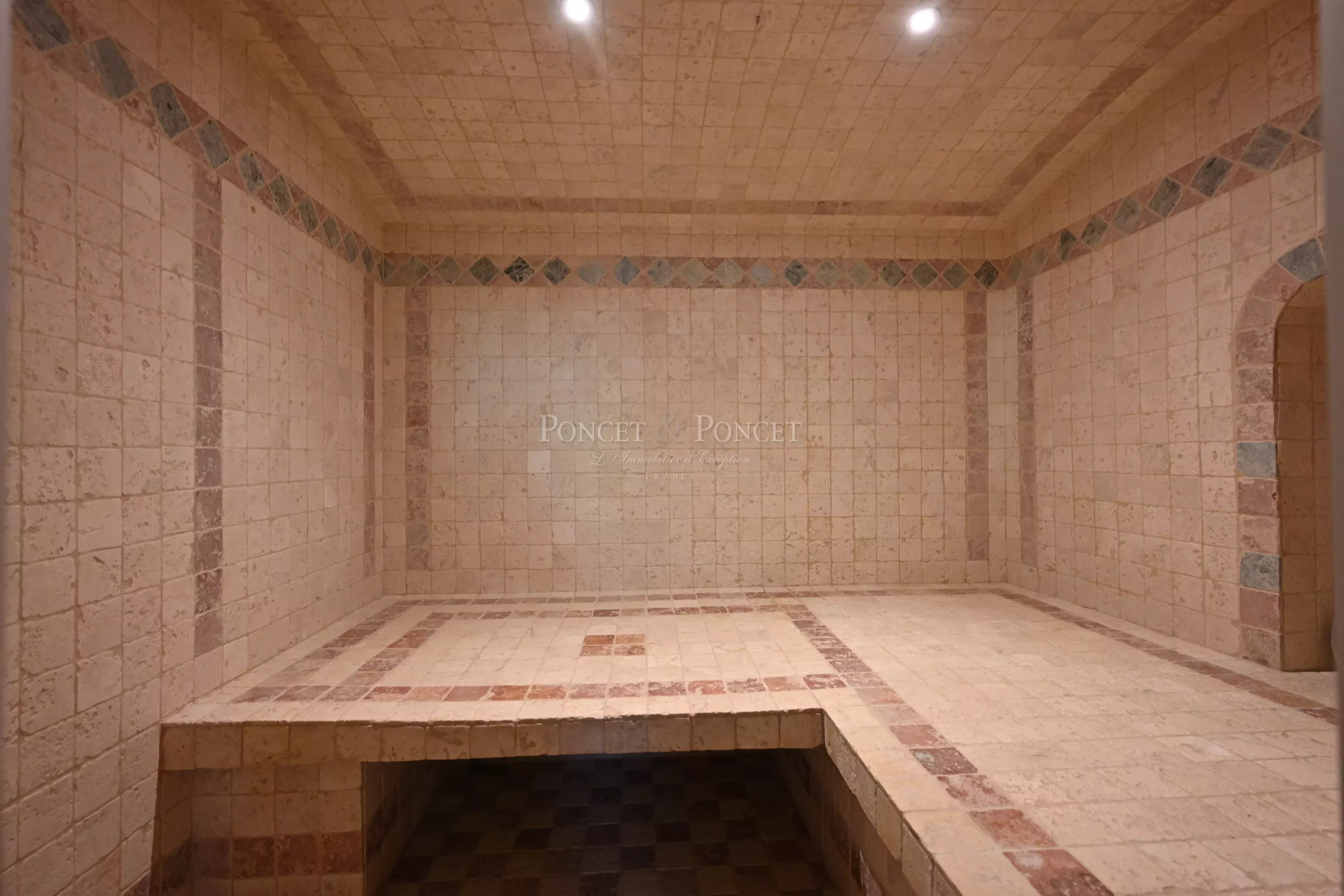 Entièrement rénové avec soin, ce château de 27 pièces marie harmonieusement le caractère authentique de son patrimoine architectural avec le confort et les équipements modernes. L’élégance de ses murs en pierre apparente, ses arcades, ses fenêtres à meneau croisé et ses salons voûtés en font un véritable joyau historique.