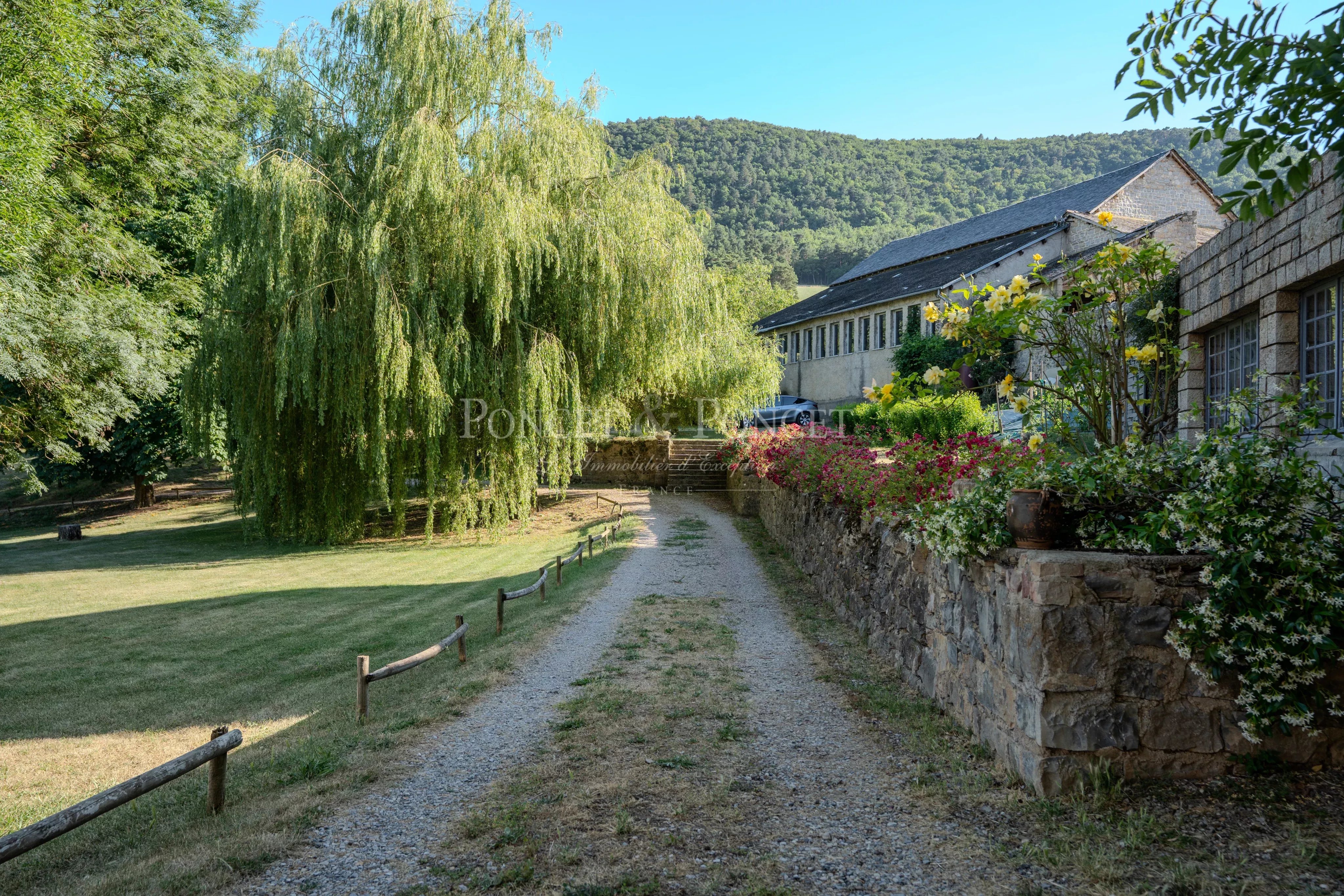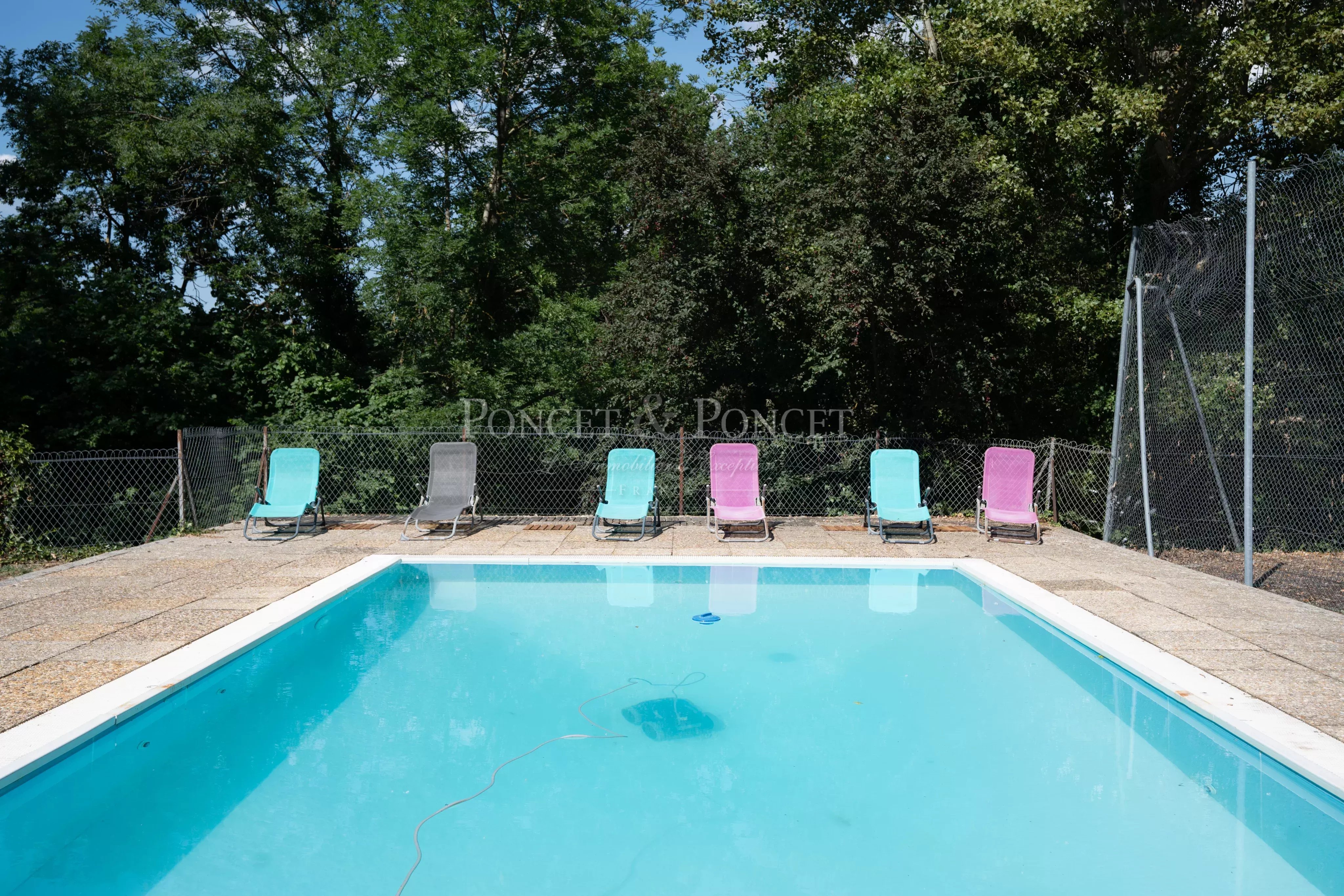 Dans le parc, se trouve une piscine ainsi qu'un terrain de tennis et potager.