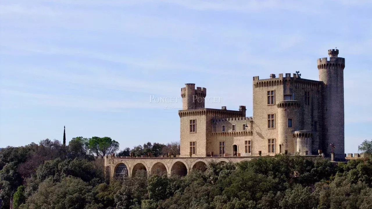 Niché sur un éperon rocheux majestueux, surplombant la vallée du Rhône, ce château néo-médiéval édifié en 1899 fait face au "Mont Ventoux" et vous offre une vue panoramique à couper le souffle sur pas moins de cinq départements. Vous êtes ici à quelques 50 kilomètres seulement d'Avignon, la ville des Papes, et de la cité ducale d'Uzès, le tout premier Duché de France. Un emplacement stratégique pour la douceur de vivre à la provençale tout en bénéficiant d'un calme absolu.