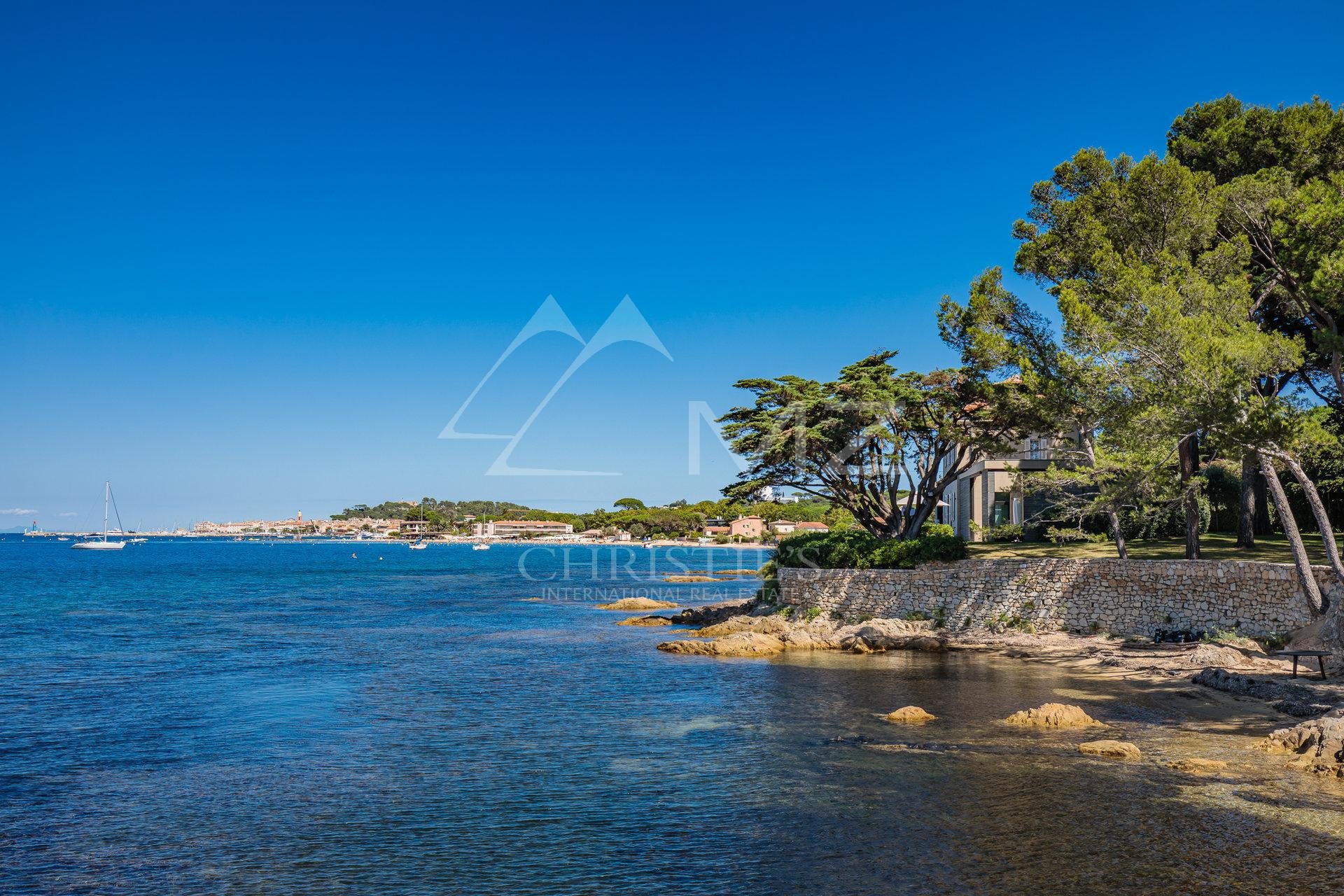 Situated 1 km from St-Tropez centre, this extraordinary waterfront property on about 3400 sqm of flat land, benefits from a sumptuous landscaped park by the sea. The house, with breathtaking panoramic sea views, offers 7 en-suite bedrooms, a caretaker’s house and a boat garage with direct access to the sea.