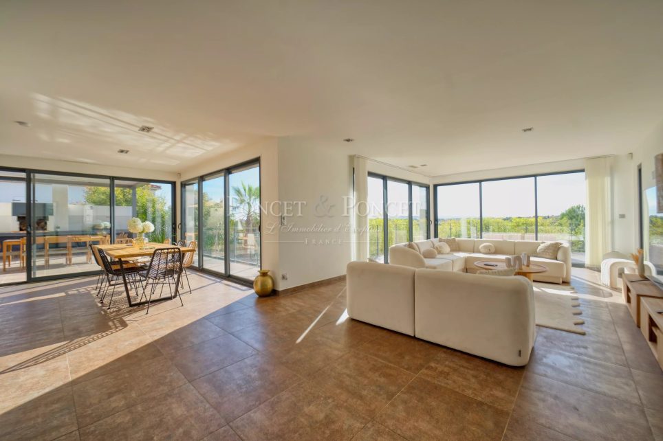 Le jardin, aménagé sur deux niveaux, est conçu pour profiter pleinement du climat méditerranéen. Il comprend une piscine chauffée de 10x6 mètres, un jacuzzi pour 7 personnes, et un espace lounge avec bar à cocktails. Une cuisine d’été entièrement équipée permet de recevoir en extérieur et de profiter de moments de convivialité.
