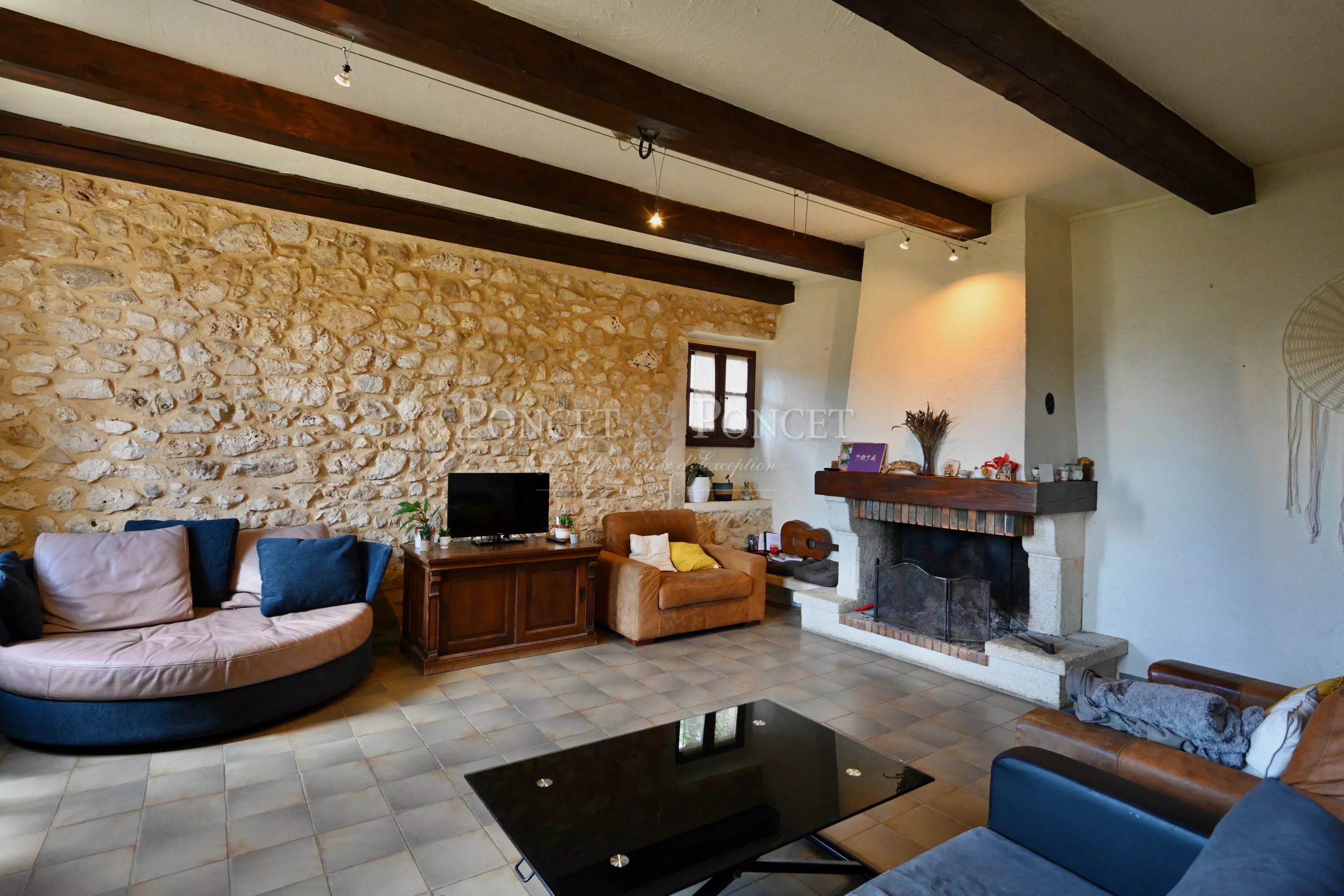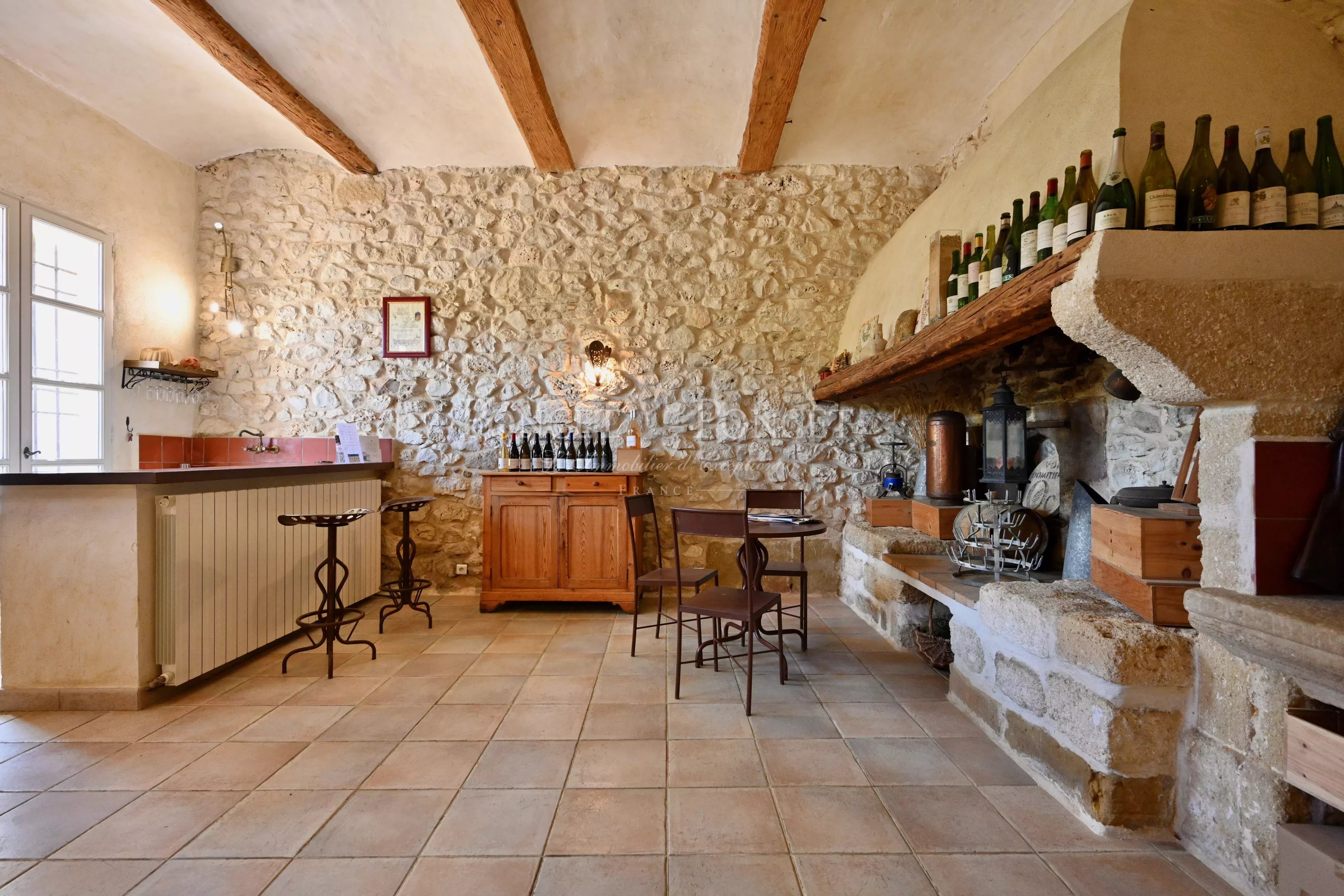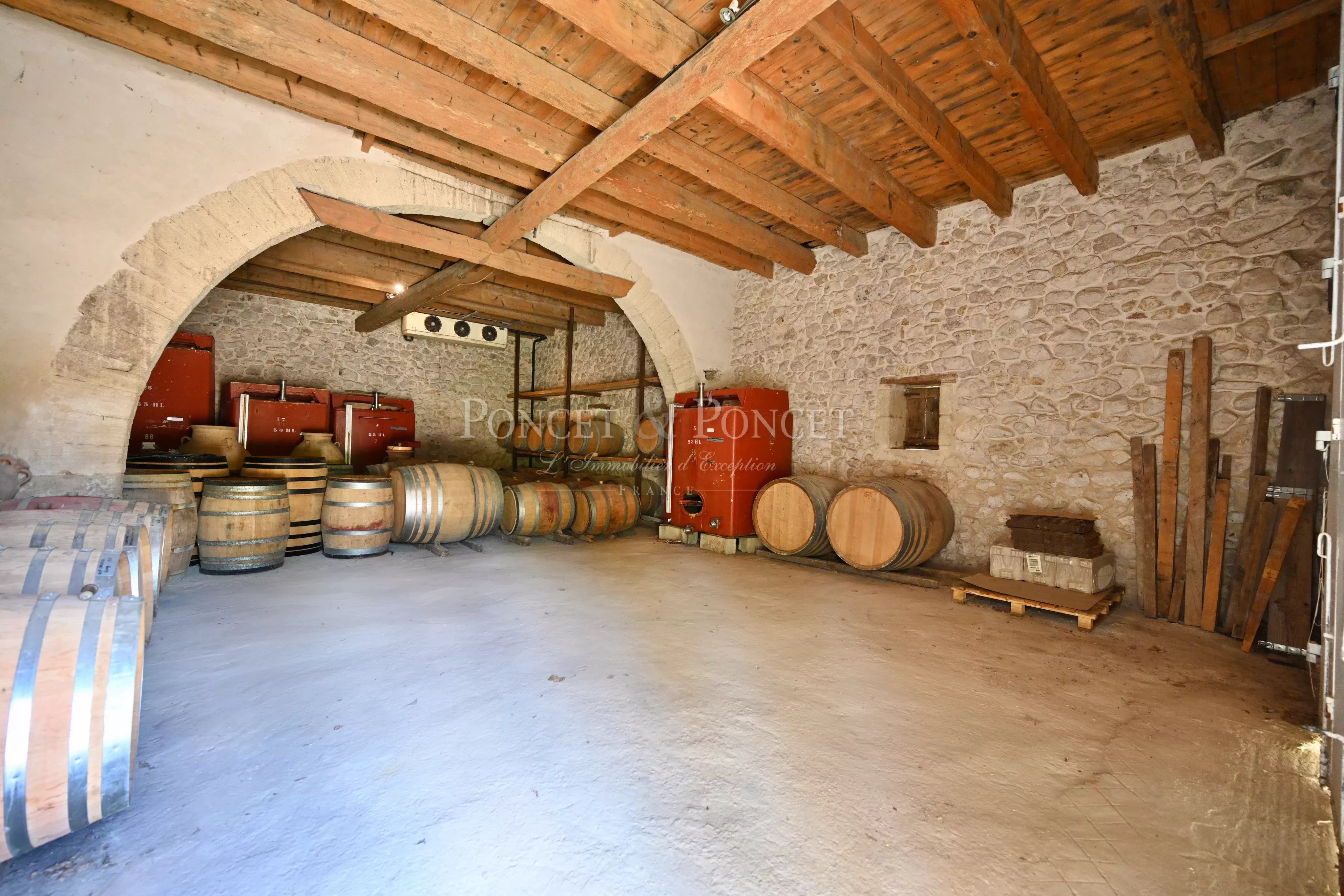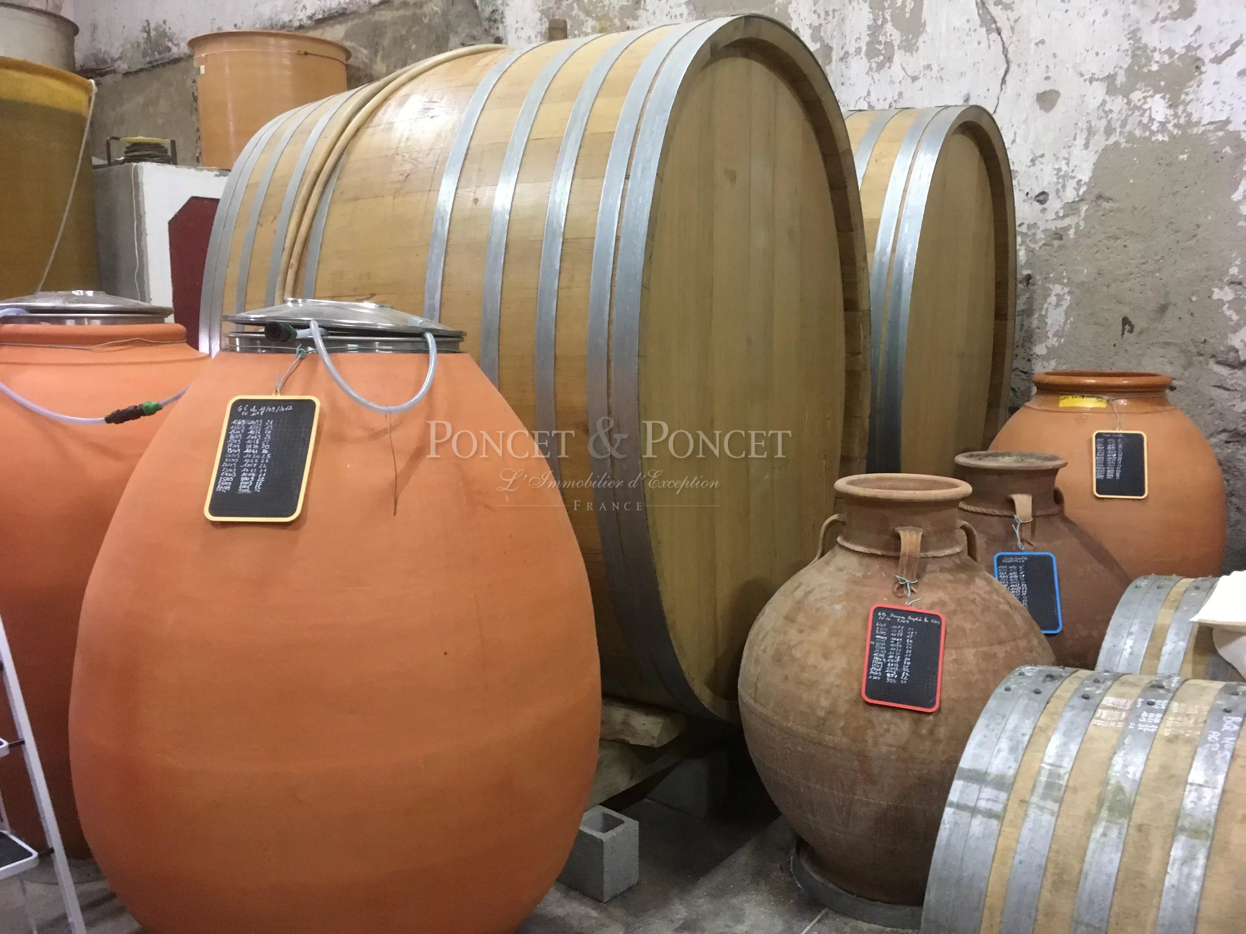 MAISON de MAITRE en pierre locale développe 375 m² sur deux niveaux. Le rez-de-chaussée abrite actuellement des installations liées à l’exploitation viticole (caveau de dégustation, bureaux, chai d’élevage), mais l’étage supérieur constitue un espace de vie de 150 m², avec possibilité d’extension de 90 m² dans le grenier qui est sur le même niveau.