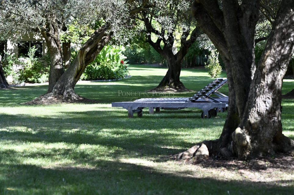 À l’extérieur, un jardin clos aux essences méditerranéennes, des terrasses baignées de soleil, un bassin de rafraîchissement et un espace repas sous voûte composent un environnement intime et apaisant. C’est un véritable écrin de sérénité, idéal pour se ressourcer ou partager des moments précieux en toute discrétion.