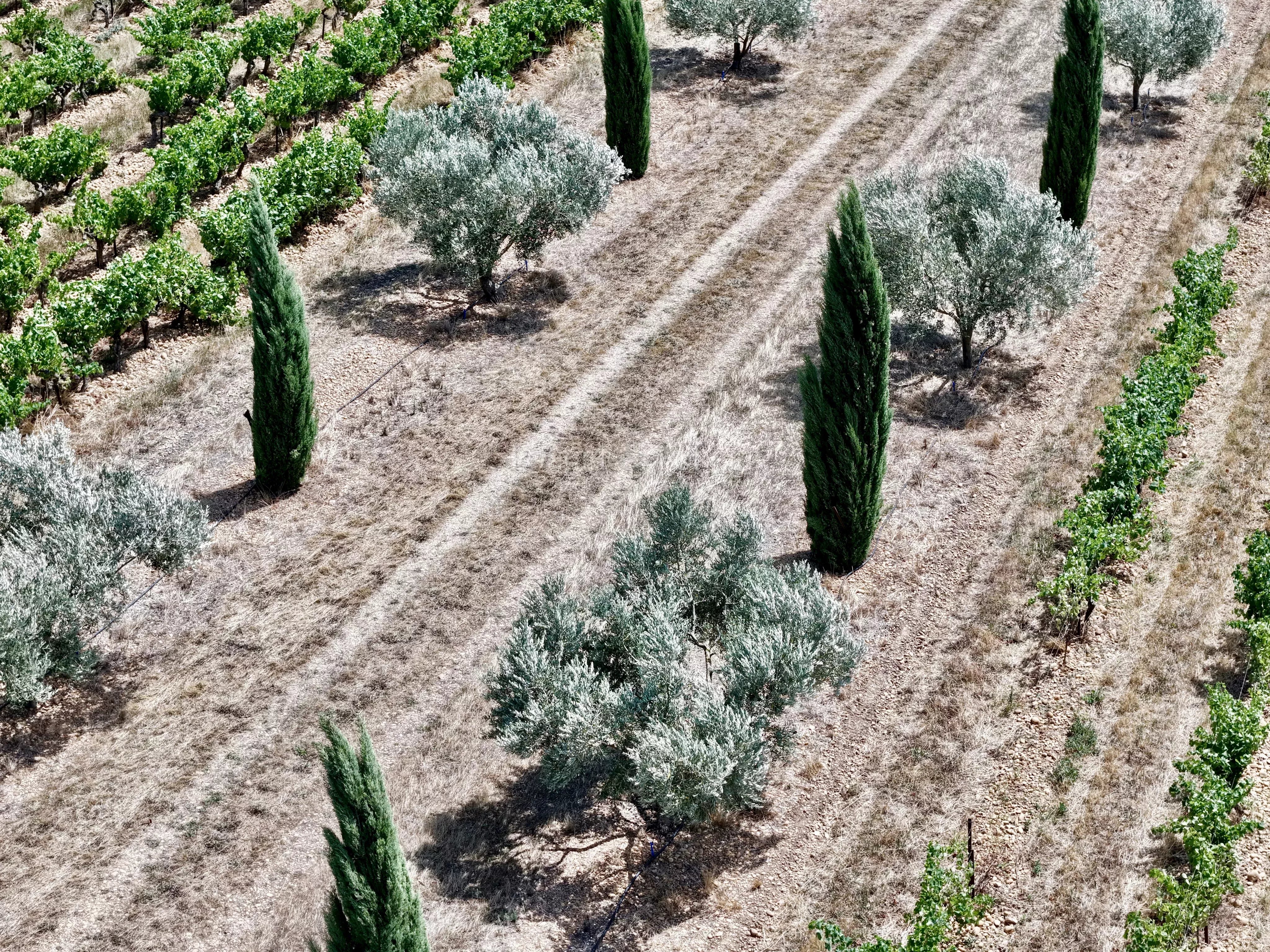 S’étendant sur 49,49 hectares d’un seul tenant pour la quasi-totalité, ce domaine est composé en majorité de vignes et d’oliveraies, l'on accède à la propriété par une très belle allée bordée de pins et d’oliviers.