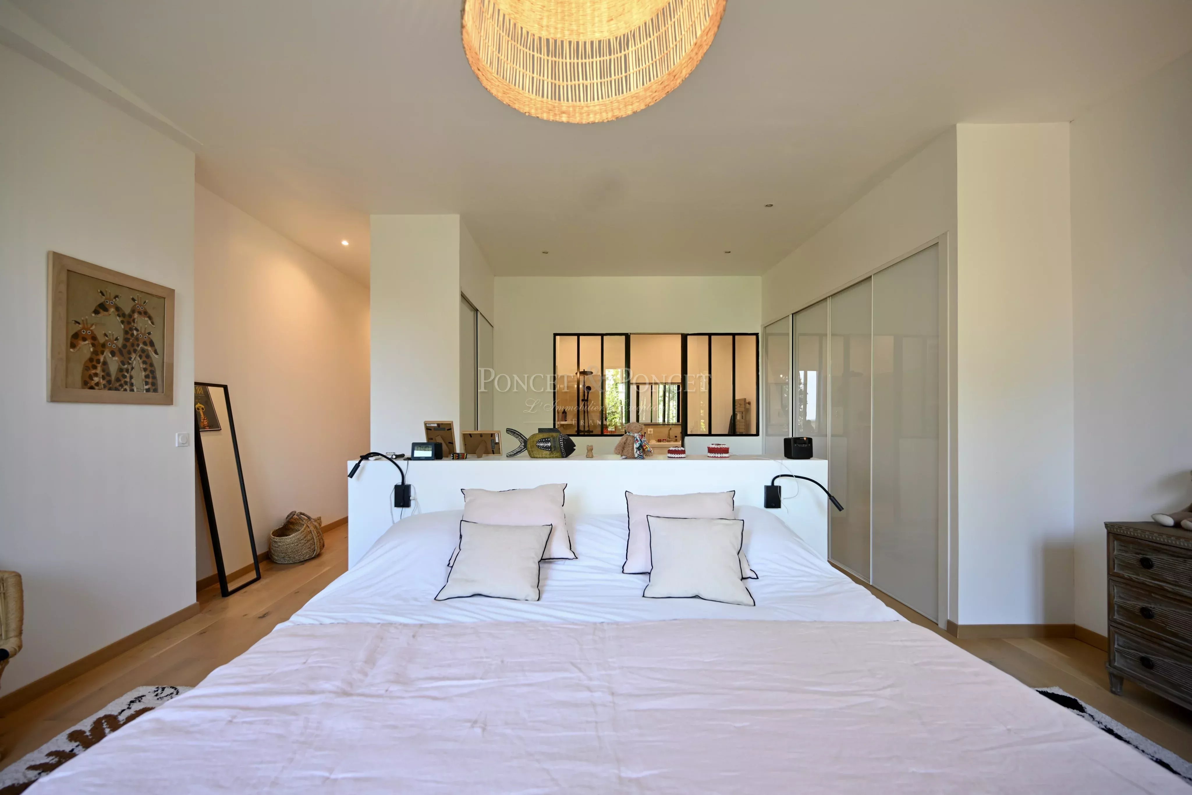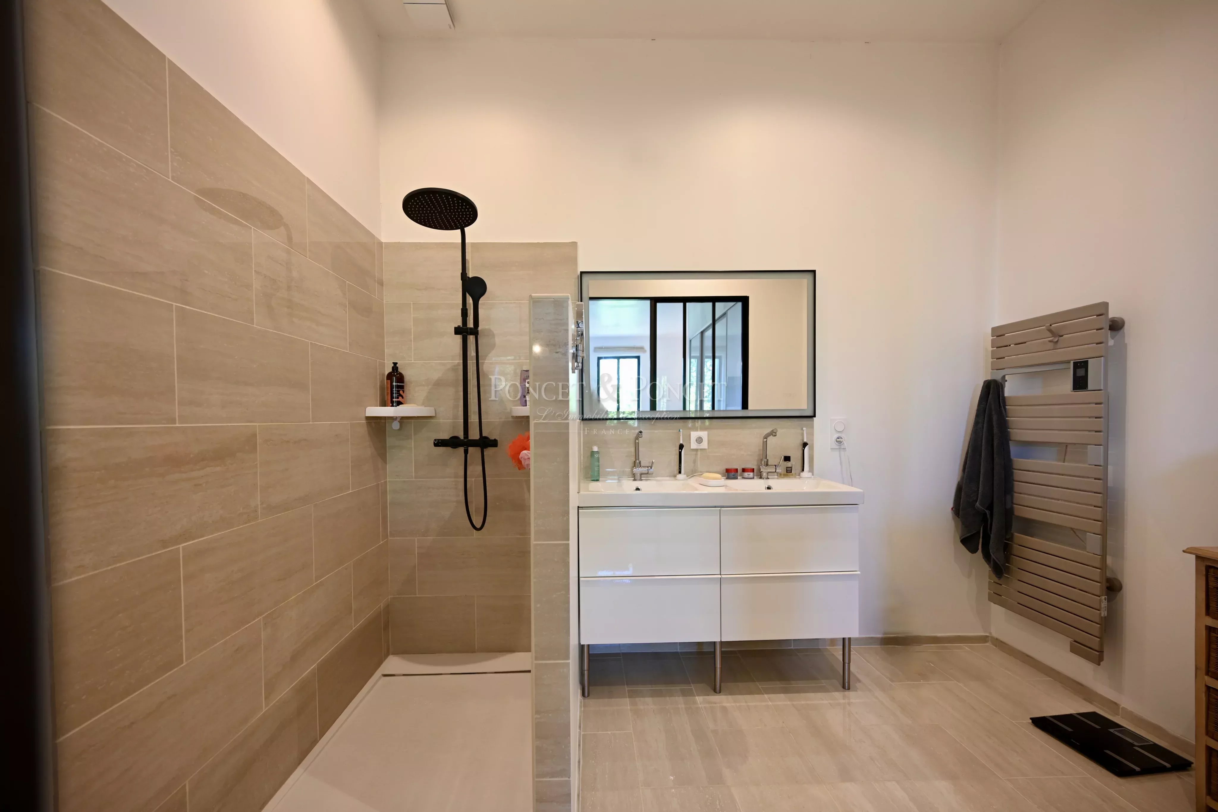 Le mas principal, dans un état irréprochable, développe 366 m² habitables et offre trois belles chambres, dont une somptueuse suite parentale de plus de 52 m², un salon avec cheminée, un séjour et une cuisine ouverte sur une terrasse arborée d’environ 160 m². Pierres au sol, hauteur sous plafond généreuse, climatisation partielle, chauffage à pellets et système d’alarme complètent les prestations.