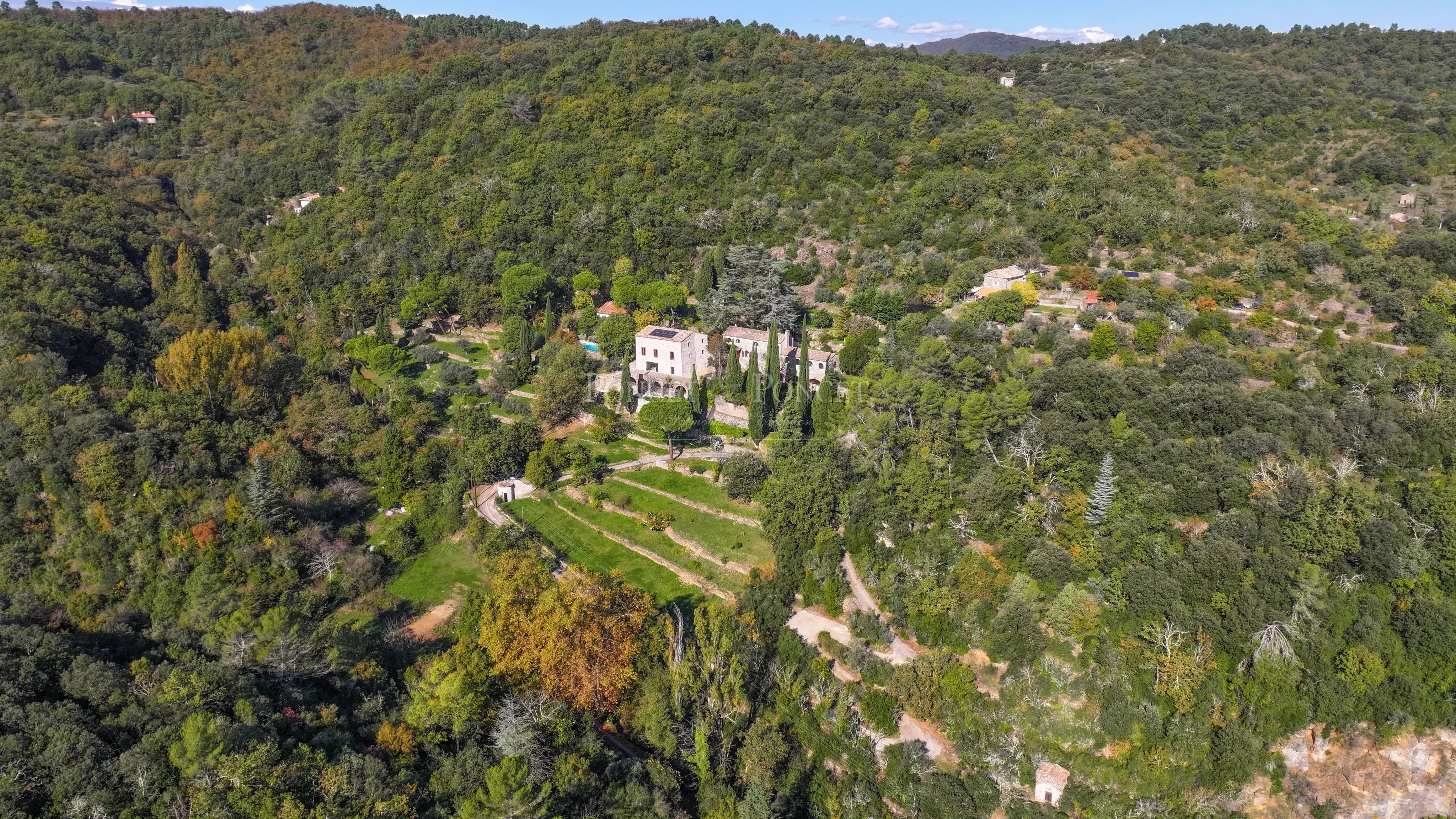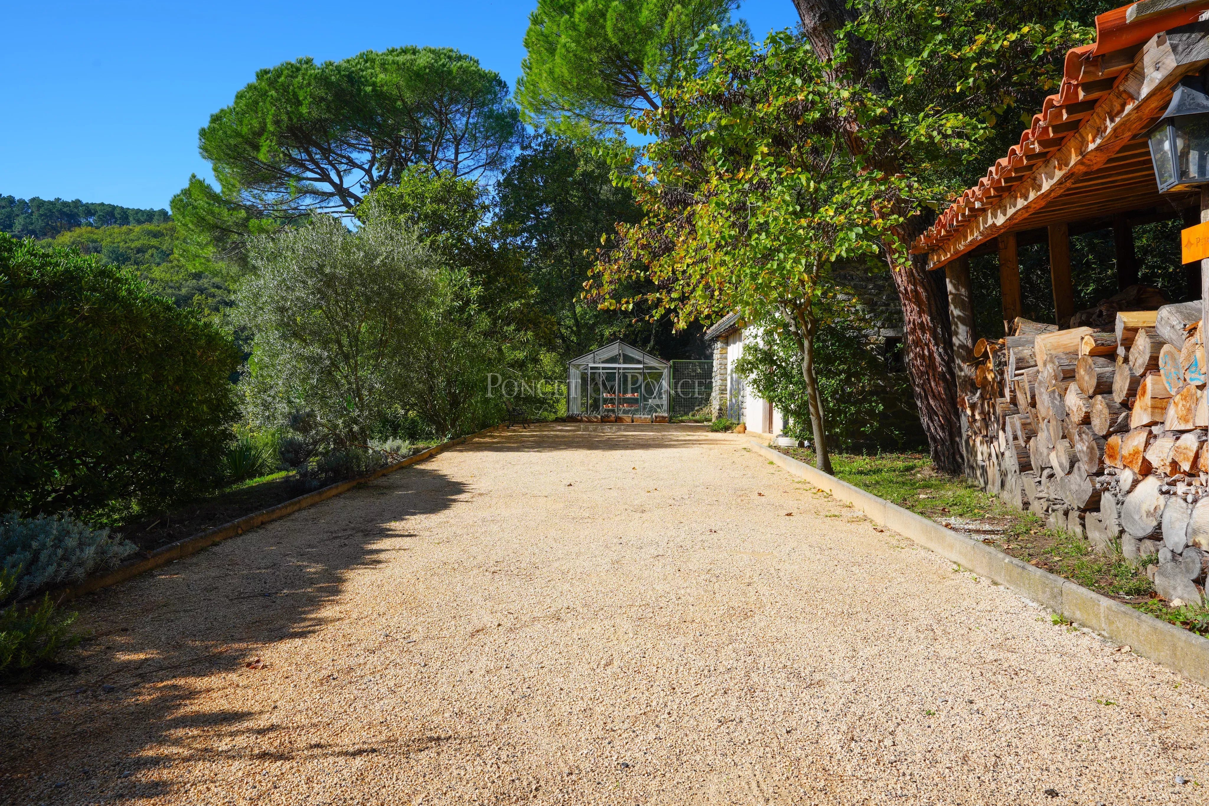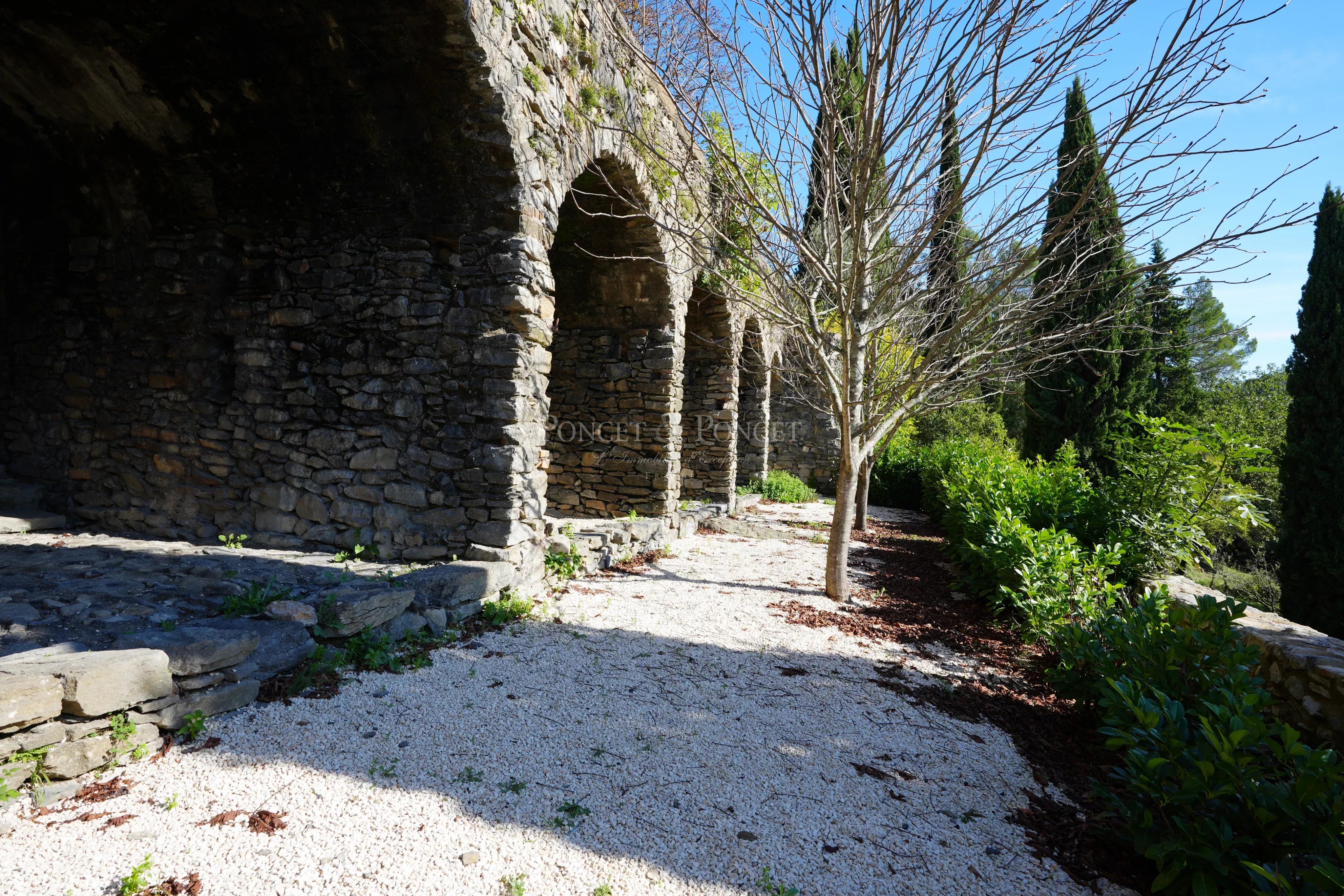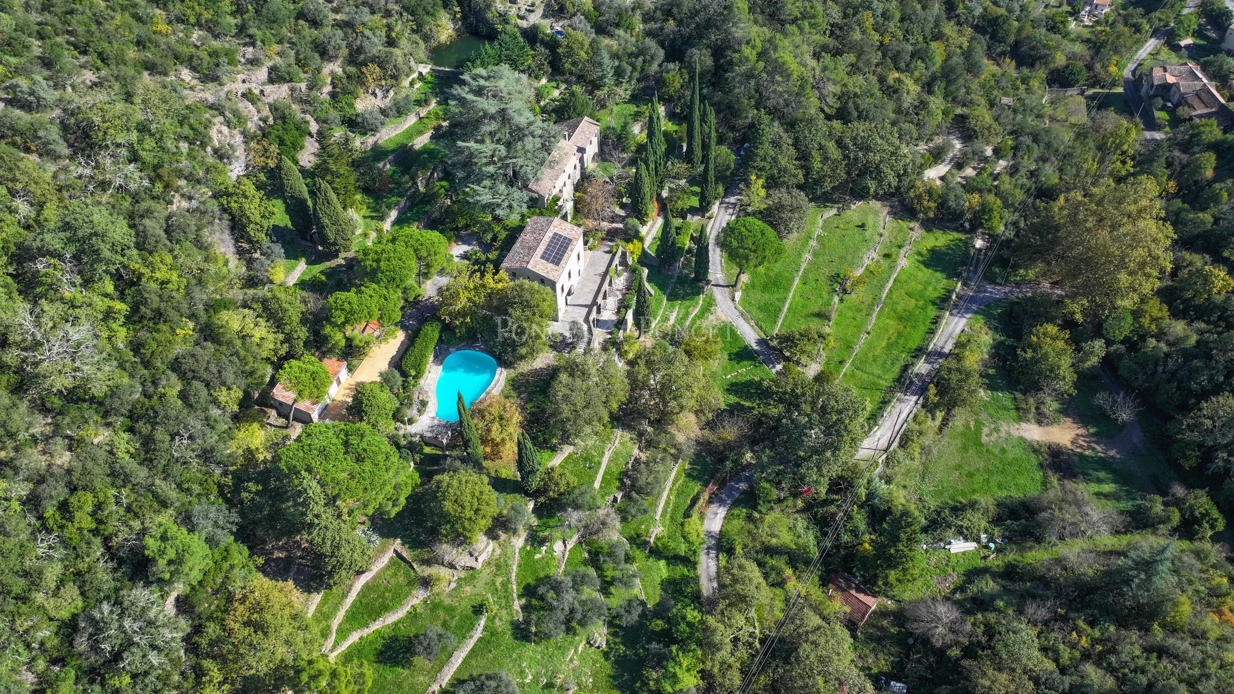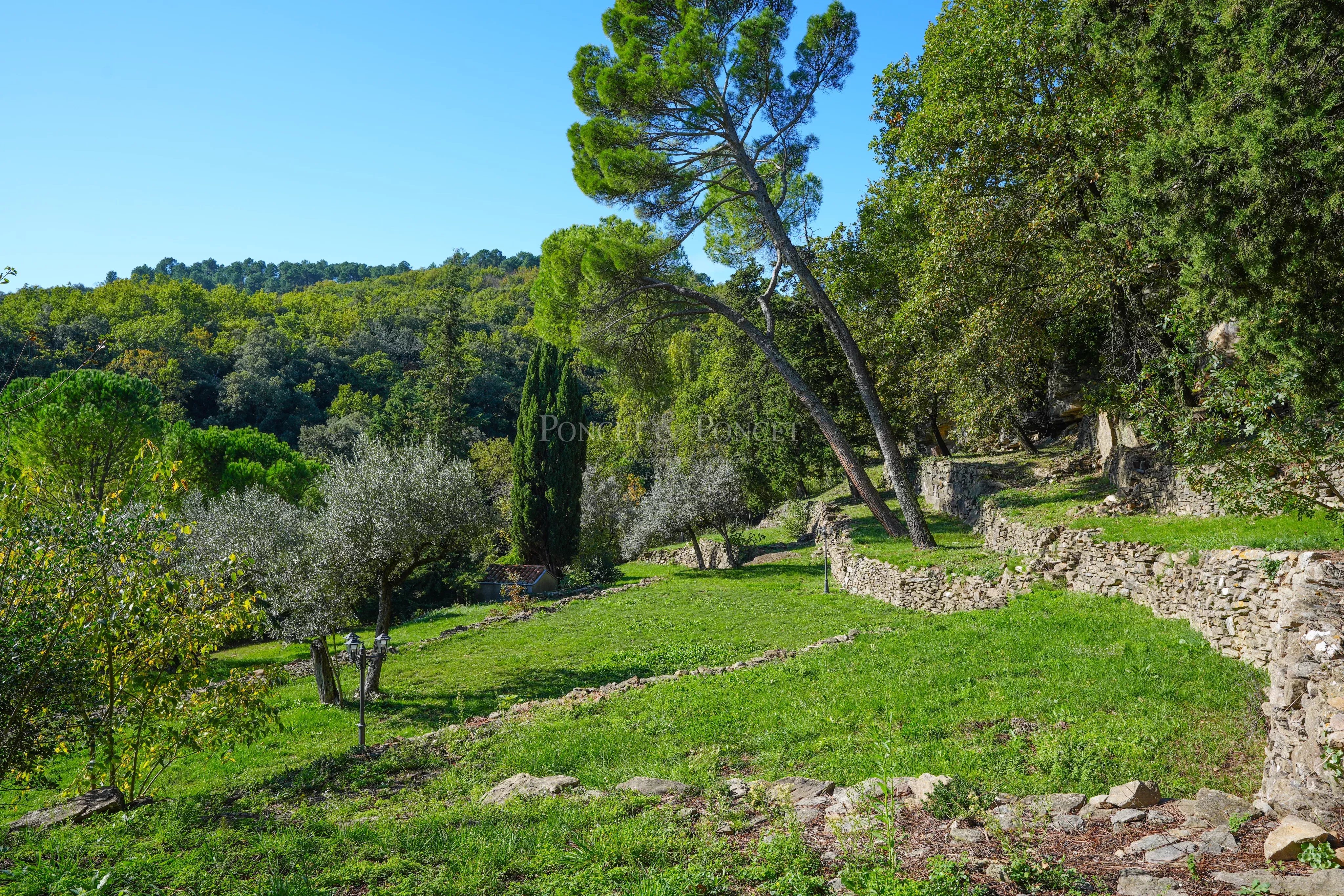 Un solide portail en fer forgé majestueux s'ouvre sur ce domaine de caractère, complété par de larges restanques aux murs en pierres sèches et une très belle falaise située au dos de la propriété, ajoutant une touche de sérénité à l’ensemble.