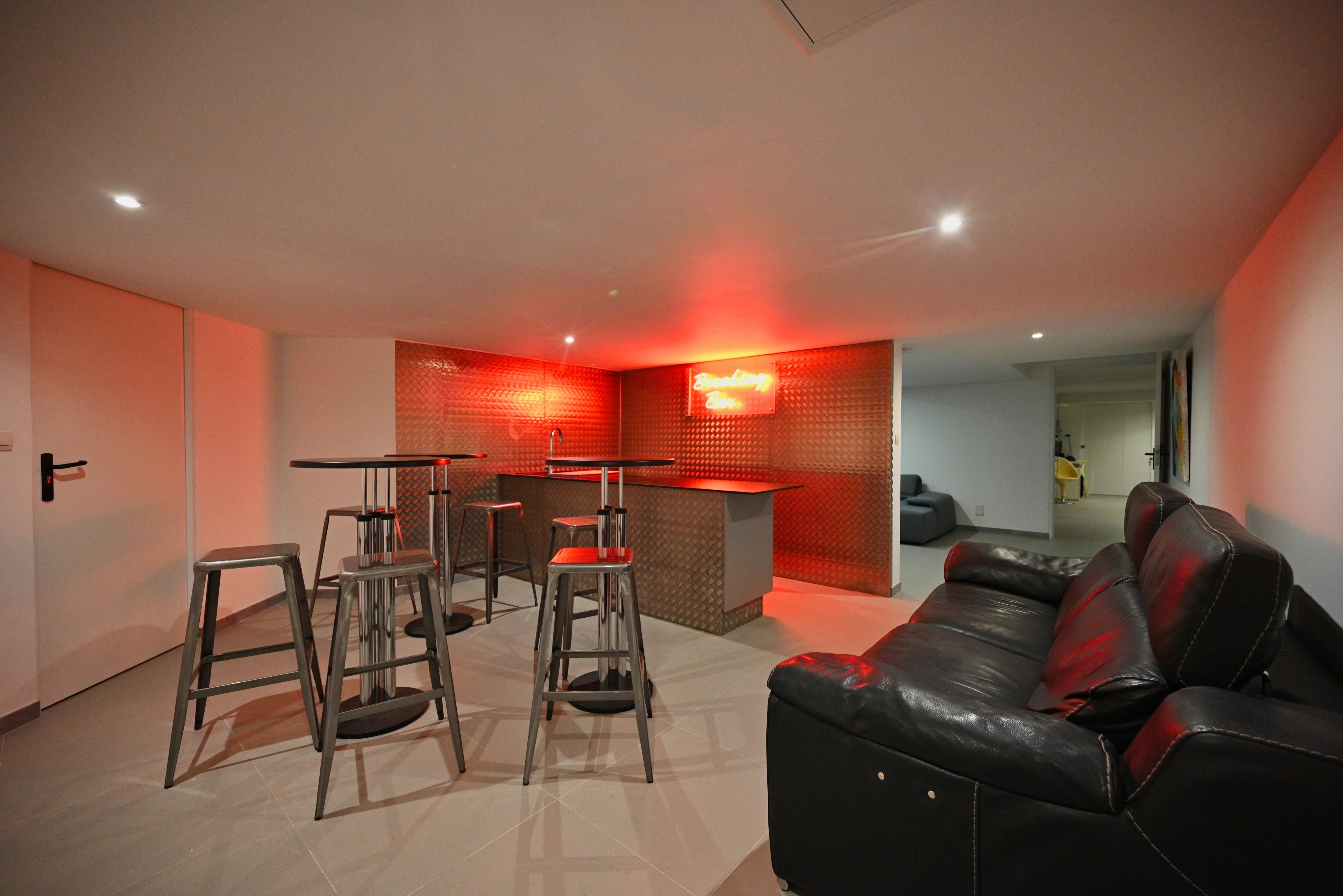 Le sous-sol technique, d'une surface de 260 m², est aménagé pour le loisir et la logistique :