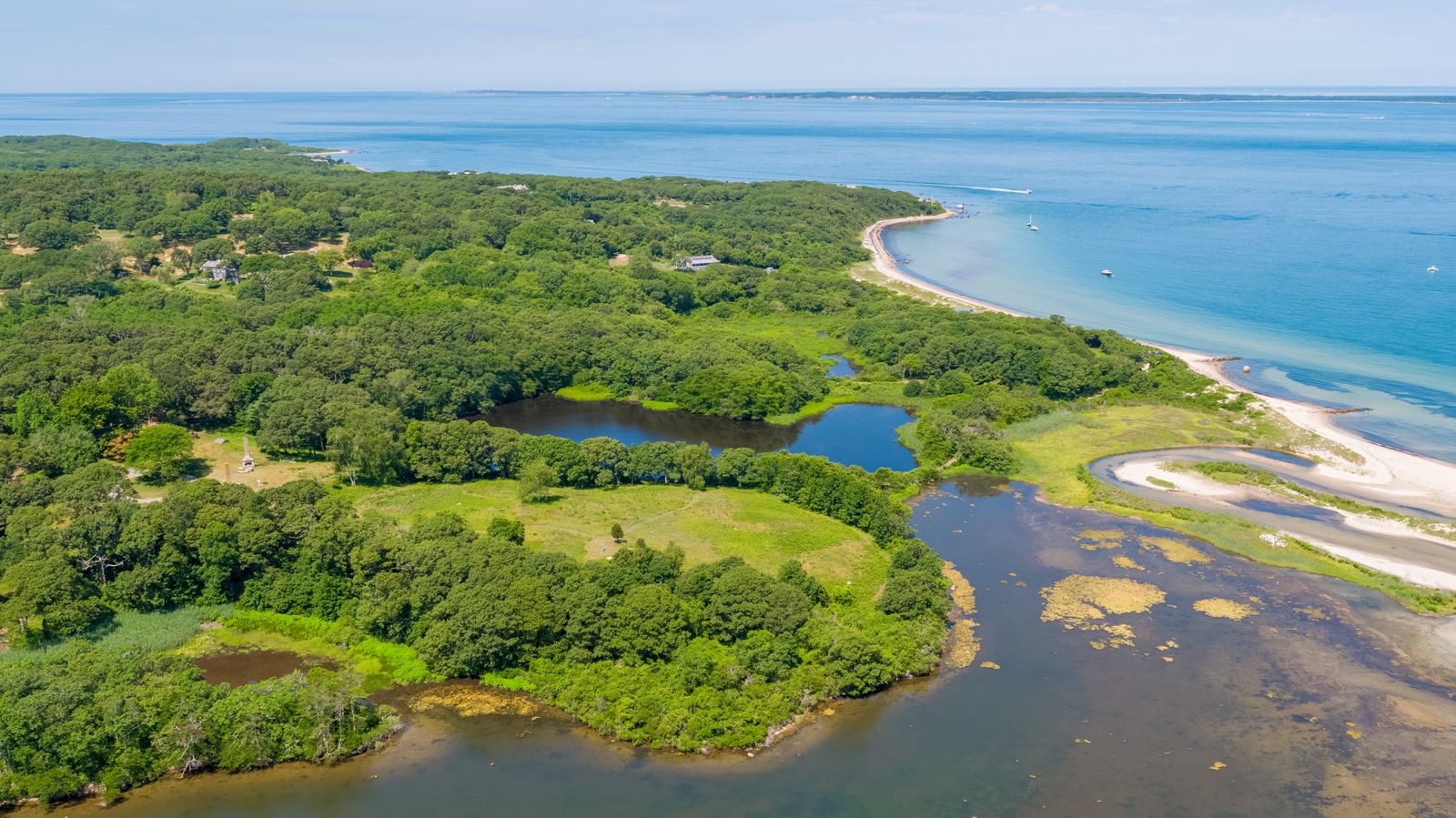 The history and provenance of Katharine Graham’s “Mohu” property, located on Lamberts Cove, speaks for itself. When combined with the unsurpassed natural beauty of this 50-acre peninsula, which is protected by pristine James Pond and offering breathtaking views over white sandy dunes out to Vineyard Sound and the Elizabeth Islands, it quickly becomes clear why this remarkable property truly represents the ultimate once-in-a-lifetime opportunity.For the first time in 50 years, “Mohu” will be offered for sale and ready for a new family to assume stewardship of the property and create a family enclave, which undoubtedly becomes Martha’s Vineyard’s, and perhaps New England’s, premier generational estate. The 50-acre property includes 860 ft of white sandy beach, 3,000 ft. of water frontage on James Pond, a pavilion and stone cottage, and a network of walking trails that meander through contoured woodlands and along the pond.The acreage affords maximum flexibility to create a family compound. Adding to the property’s incomparable level of privacy, Mohu is surrounded to the West and South by the 186-acre estate previously owned by William W. Graham.Mohu is a unique generational opportunity.