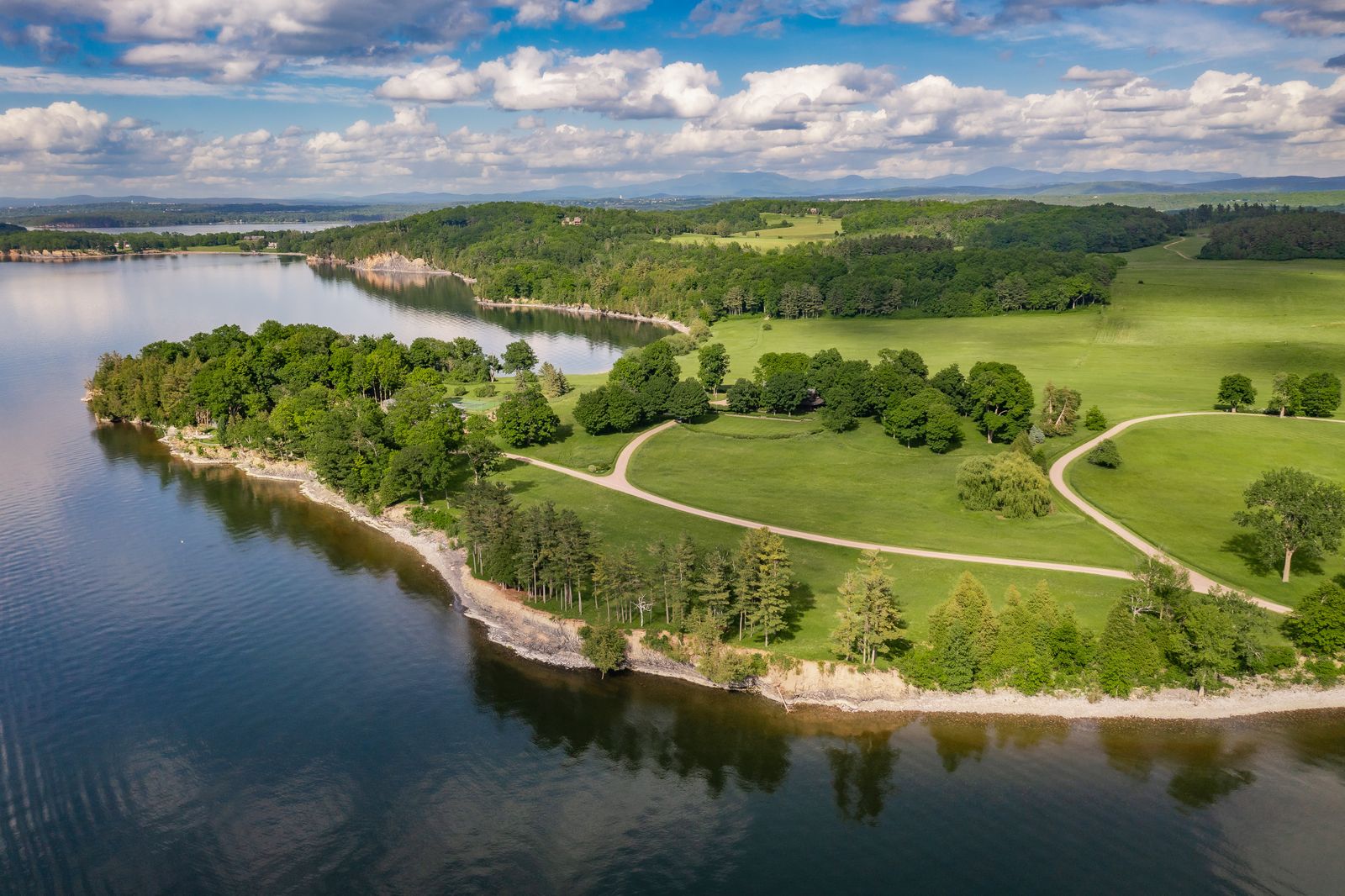 An exceptionally rare offering, Orchard Point Residence on Shelburne Farms is one of a few private properties within the pristine 1,400 acres of the protected, conserved lands of Shelburne Farms. Shelburne Farms is an iconic, national agricultural and historical landmark with its magnificent barns and buildings, stately Inn, miles of walking and cross-country trails as well as educational programs. Abutting conserved land on three sides, Orchard Point Residence is set on 18.48 acres on the northern portion of the former 3,800-acre Vanderbilt-Webb estate whose grounds were designed with the assistance of the world-renowned landscape architect, Frederick Law Olmstead. This beautiful property offers uncommon privacy and serenity in a magnificent pastoral setting that includes 584 feet of Lake Champlain frontage on North Beach, and 923 feet on the western shoreline boundary of the property for a total of 1,507 feet of waterfront, a wonderfully executed main residence, a 3-bedroom guest house, and 2-story barn. The impeccable, 5,800+/- Adirondack shingle-style 5-bedroom, 5-bath main house is located on the ridge among mature hardwood trees and sited for stunning westerly and northerly lake and Adirondack Mountain views, the protected Shelburne Farms farmland to the east, and distant views of the Inn at Shelburne Farms to the south. The easily accessible waterfront offers a private beach, a lighted 50-foot dock, and an electric boat lift at the water’s edge. Orchard Point Residence’s private setting belies its easy access to services and shopping in Shelburne Village or Burlington, the excellent Shelburne schools, the University of Vermont, the Burlington International airport, UVM Medical Hospital, dining at numerous excellent restaurants, and events at Shelburne Museum, are all within 20 minutes. World-class skiing and riding at Stowe, Sugarbush, and other nearby resorts are just over an hour. Orchard Point Residence represents the best of the best in Vermont Lake Champlain waterfront estates.