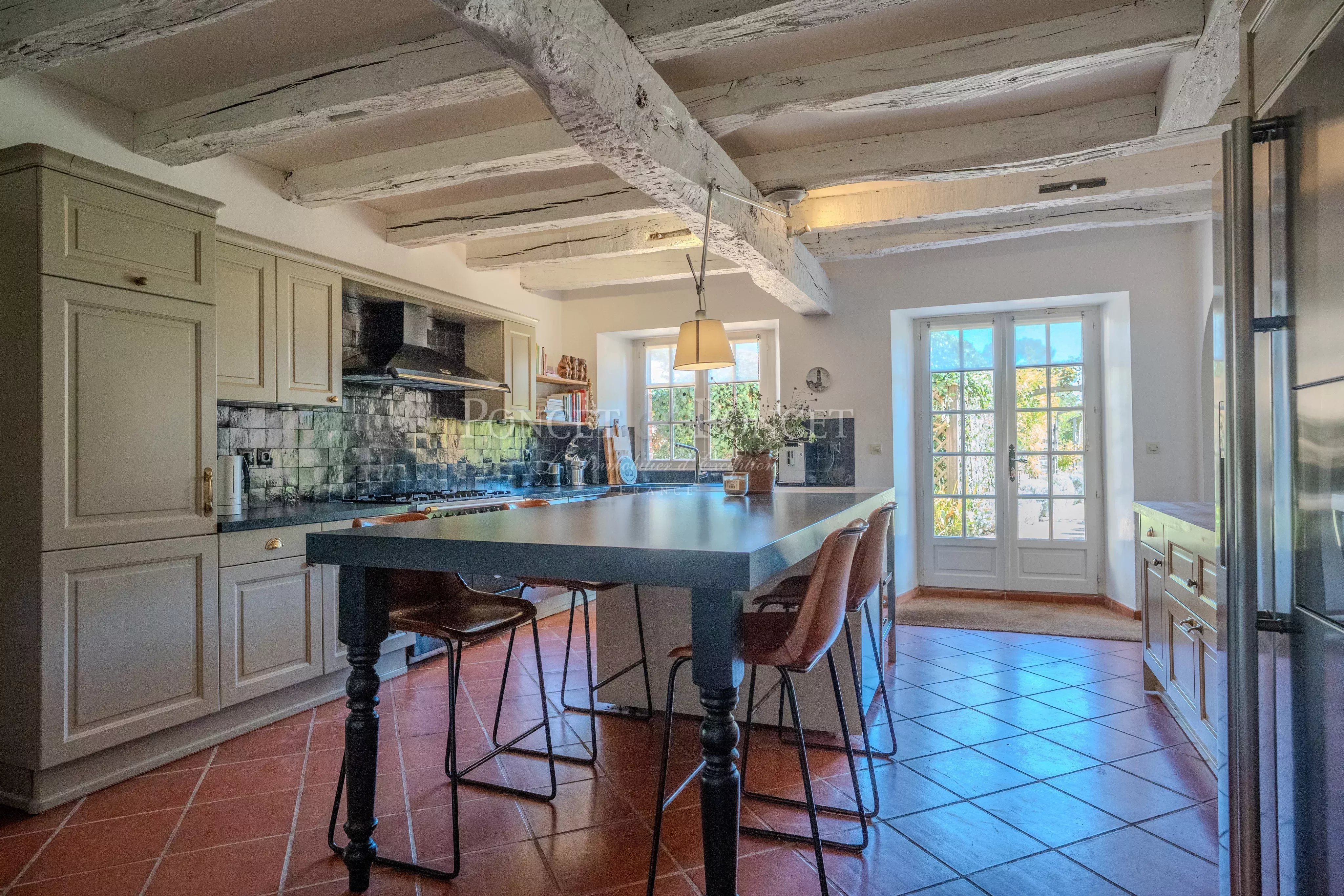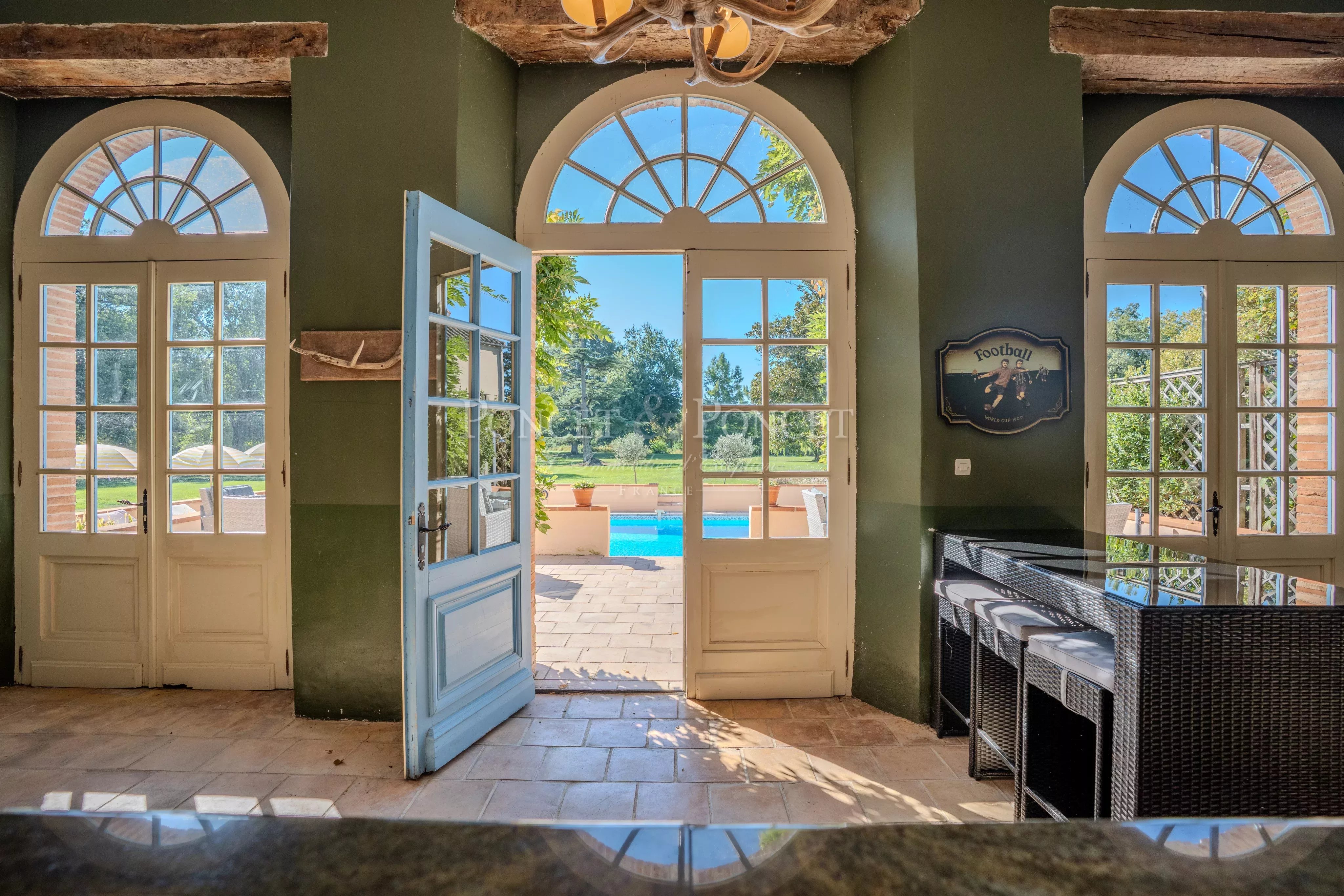 BÂTIMENTS : Une maison de maître dans laquelle on entre grâce à un escalier central harmonieux. Très lumineuse, elle offre environ 400 m2 habitable sur 2 niveaux, pour 6 chambres en tout, chacune a sa salle d’eau ou de bain. Le chauffage au sol confère une atmosphère chaleureuse en hiver alors que les étés y sont frais. Chaque niveau offre de grands volumes, ainsi que de nombreuses pièces annexes.