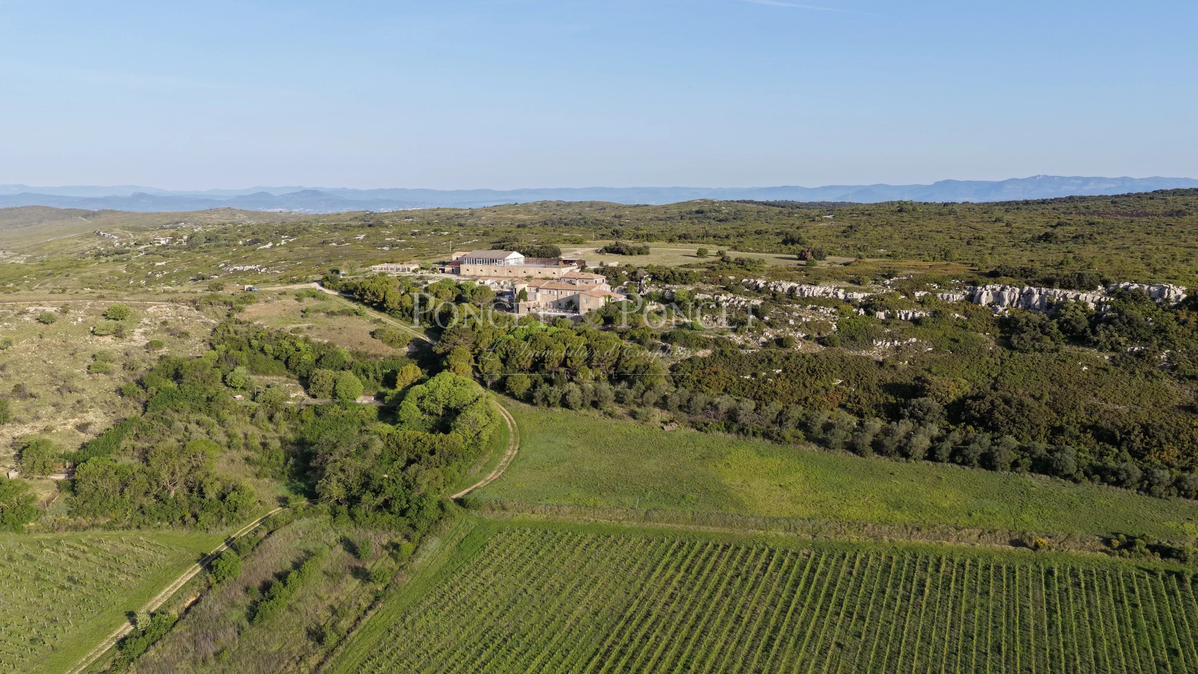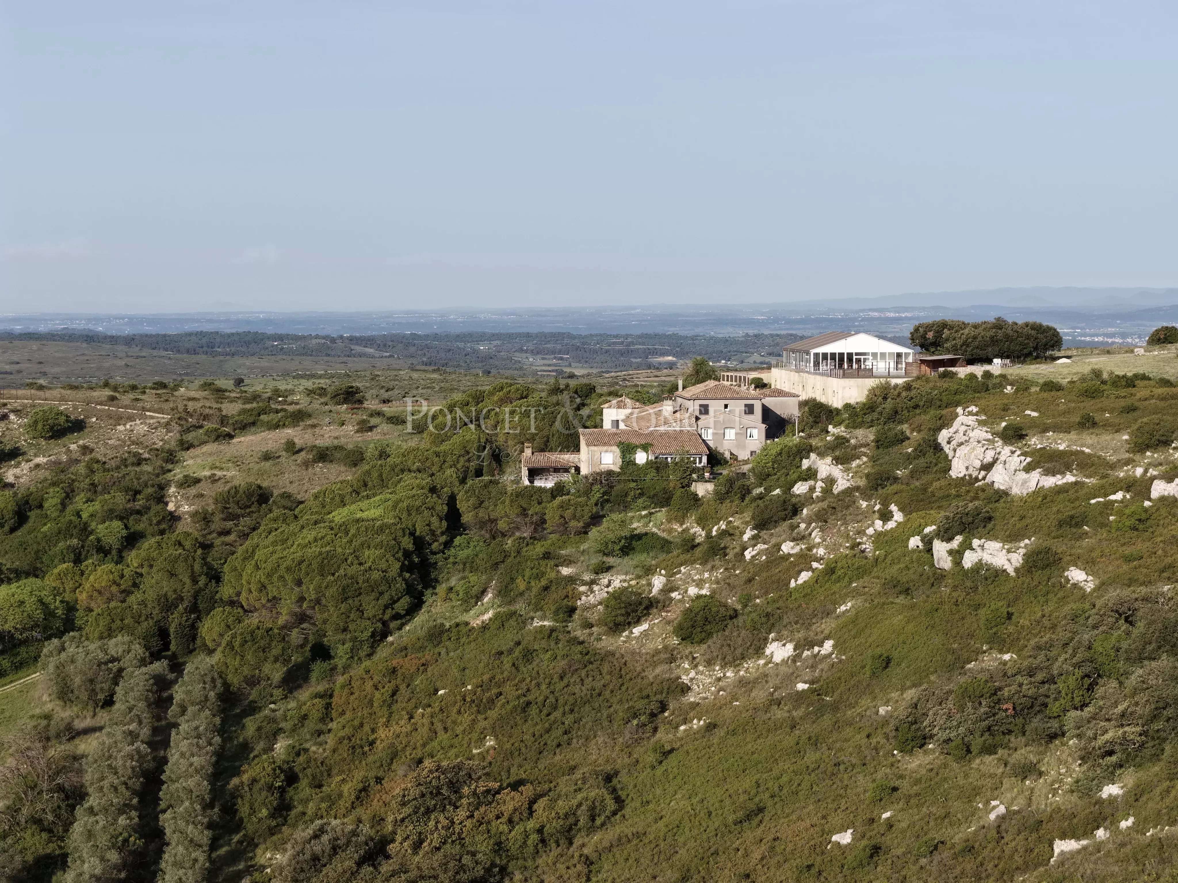 Niché au cœur de la garrigue héraultaise, la propriété de chasse est un véritable joyau qui s’étend sur un domaine de 211 hectares, offrant une vue panoramique exceptionnelle sur la Méditerranée et la chaîne des Pyrénées, avec le majestueux Canigou en toile de fond.