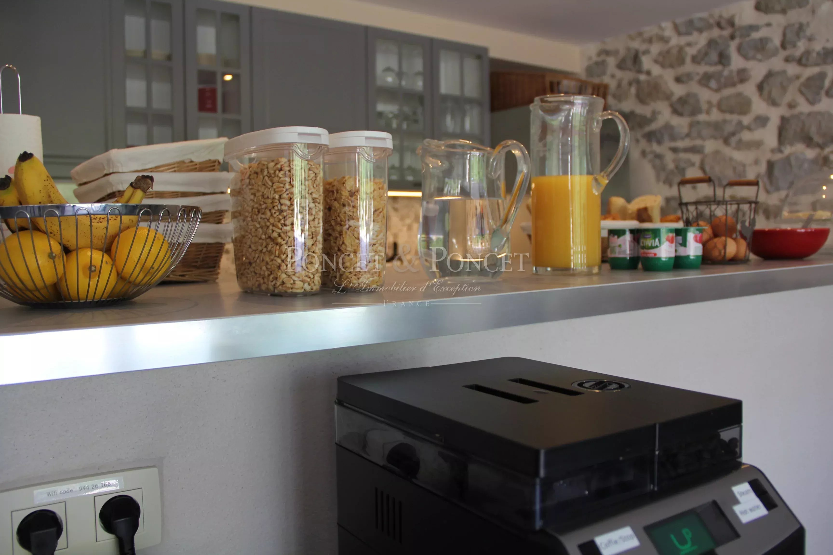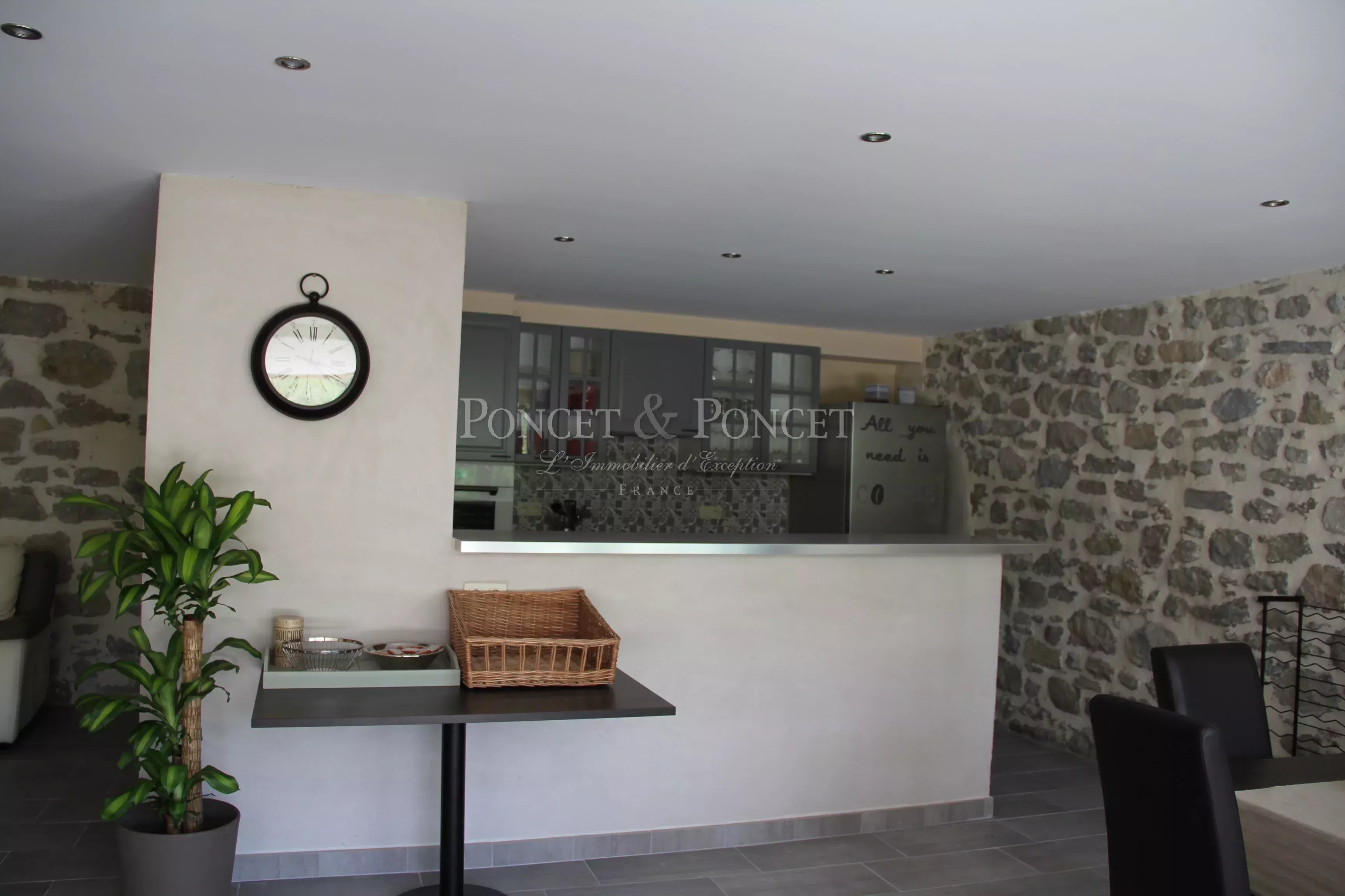 Une maison principale de 168 m2 avec pierres apparentes sur 2 niveaux, pouvant être portée à 305 m2 en y incorporant l’espace bureau, le studio et 1 appartement (pouvant communiquer)