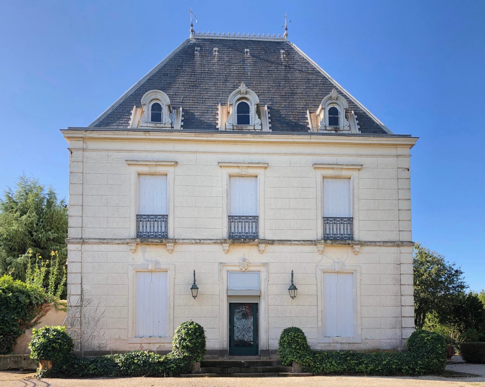 Maison de maître de style bourgeois XIXᵉ siècle, type petit château, d’environ 400 m² sur deux niveaux + grenier à mansardes aménageable. Elle est habitable en l'état, mais nécessite un rafraîchissement.