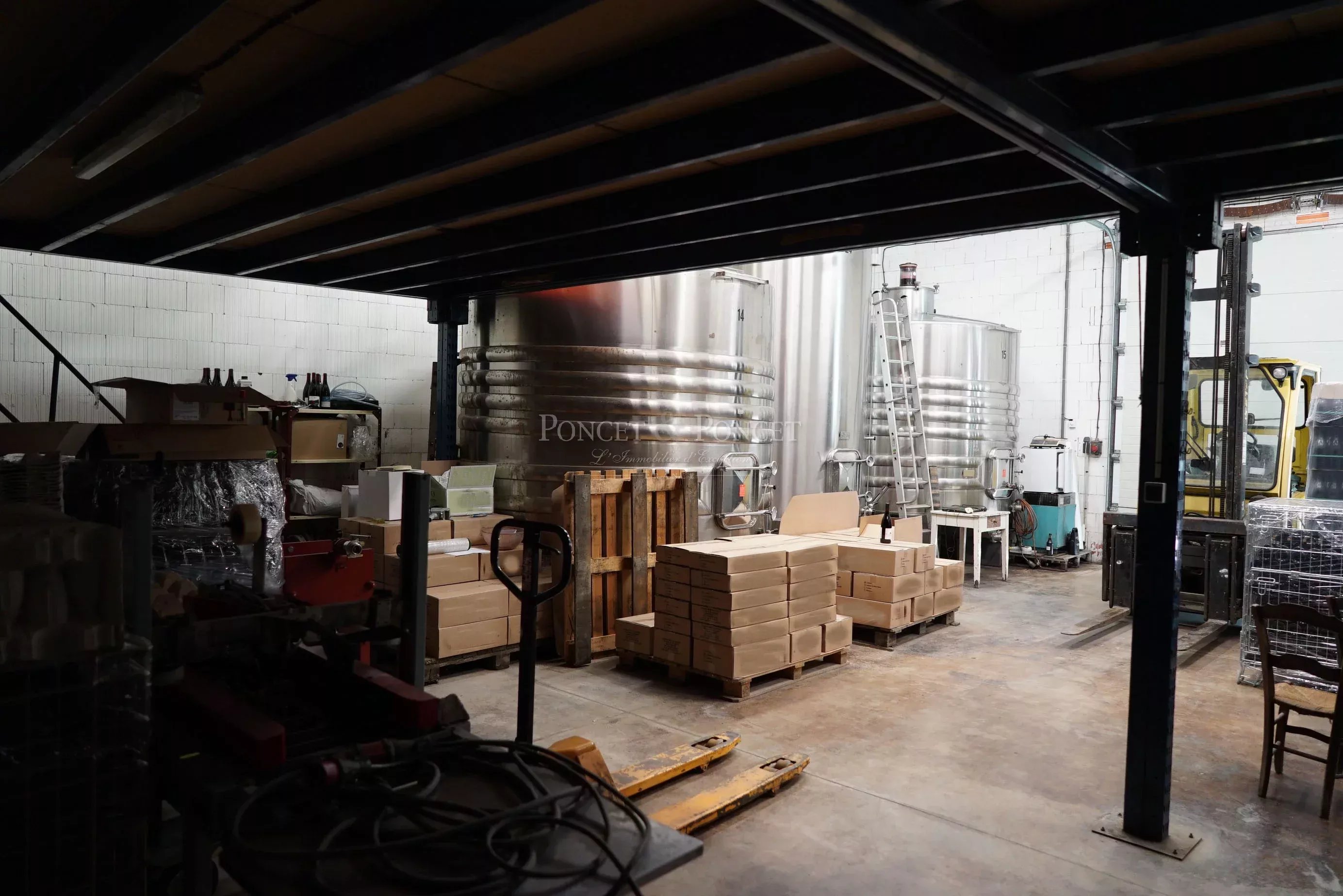 Un espace de stockage climatisé de 110 m2, avec mezzanine, chaine d'embouteillage et tout le matériel nécessaire