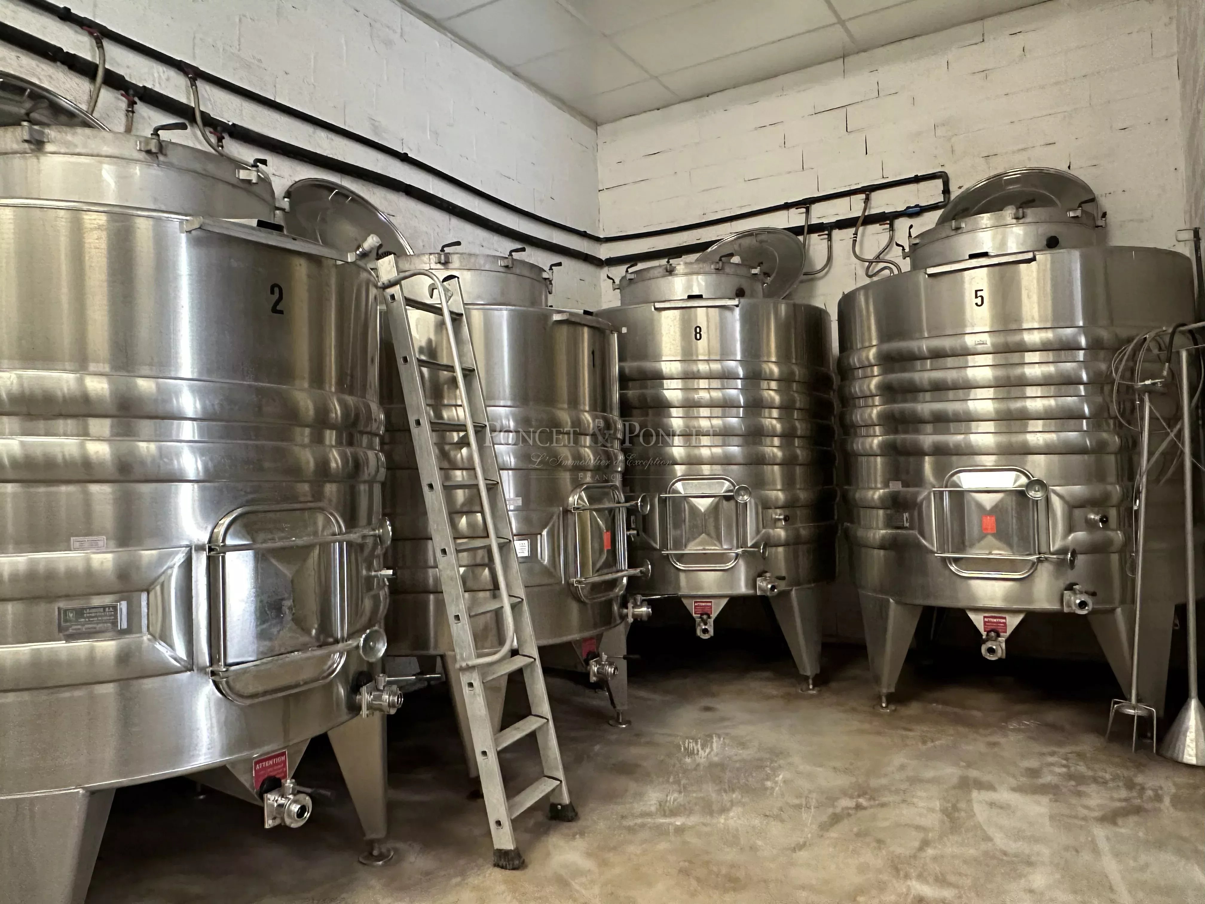 Une cave de 100 m2 climatisée, totalement équipée de 1000 hl de cuves inox thermorégulées, avec tout le matériel de vinification