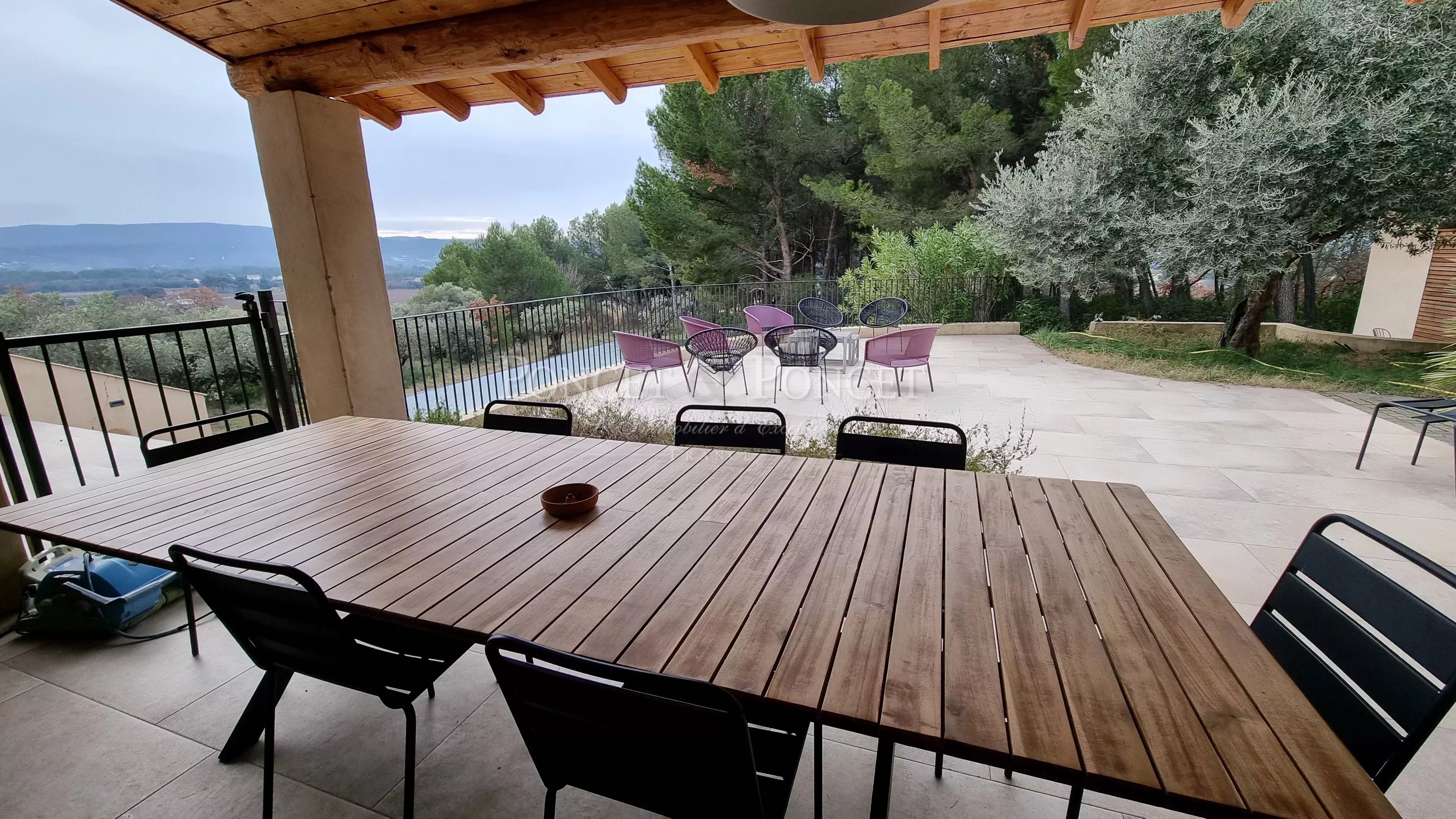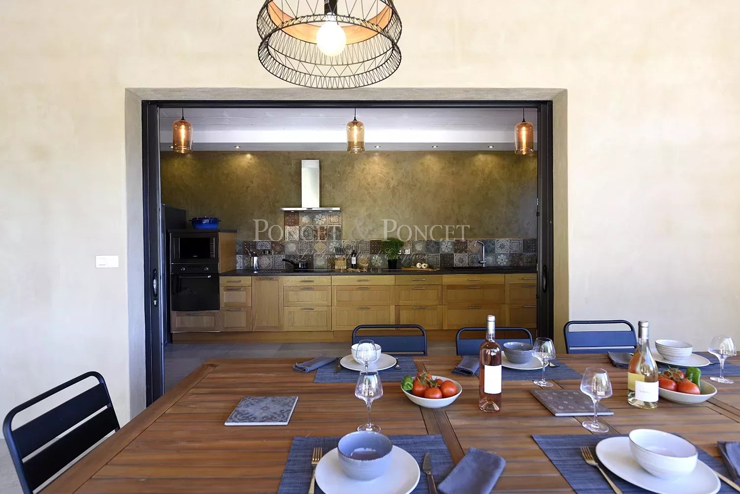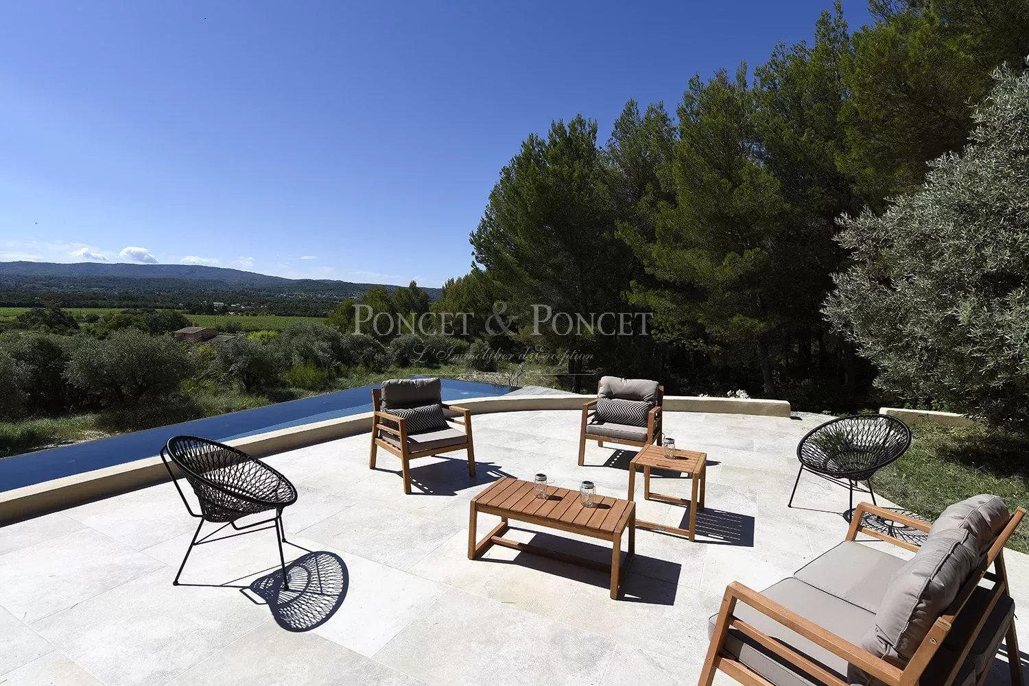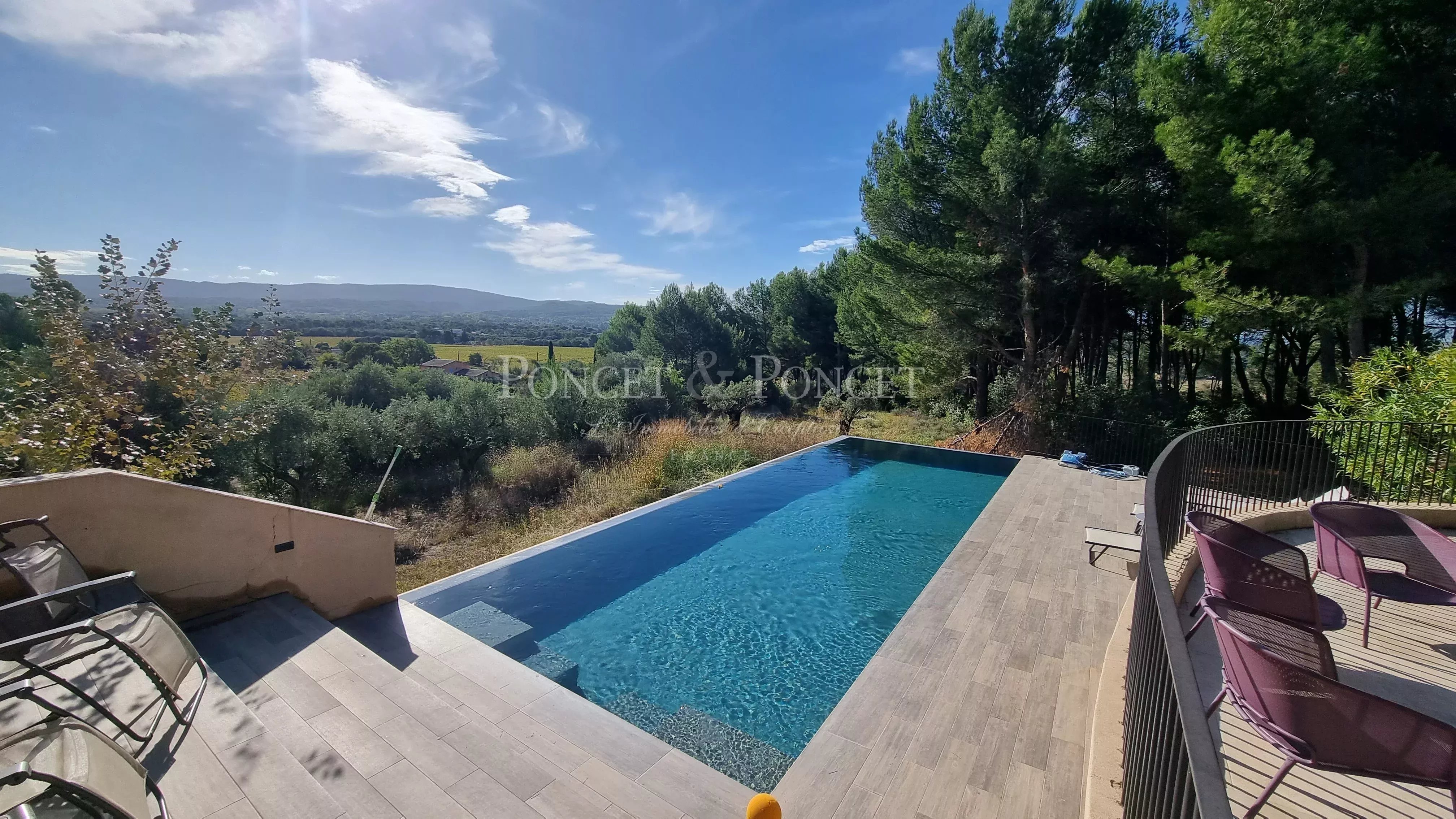 La maison offre environ 240 m2 de surface habitable et donne, au sud, sur une magnifique piscine à débordement. L’habitation est en parfait état car rénovée ces 10 derrières années. La terrasse offre de belles vues sur la vallée