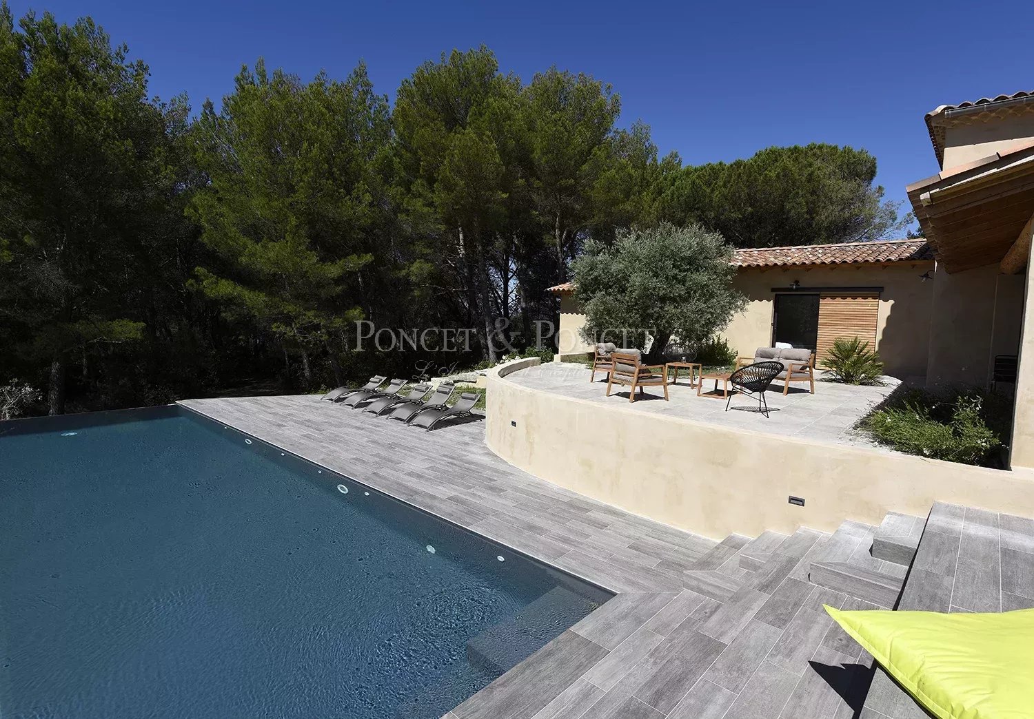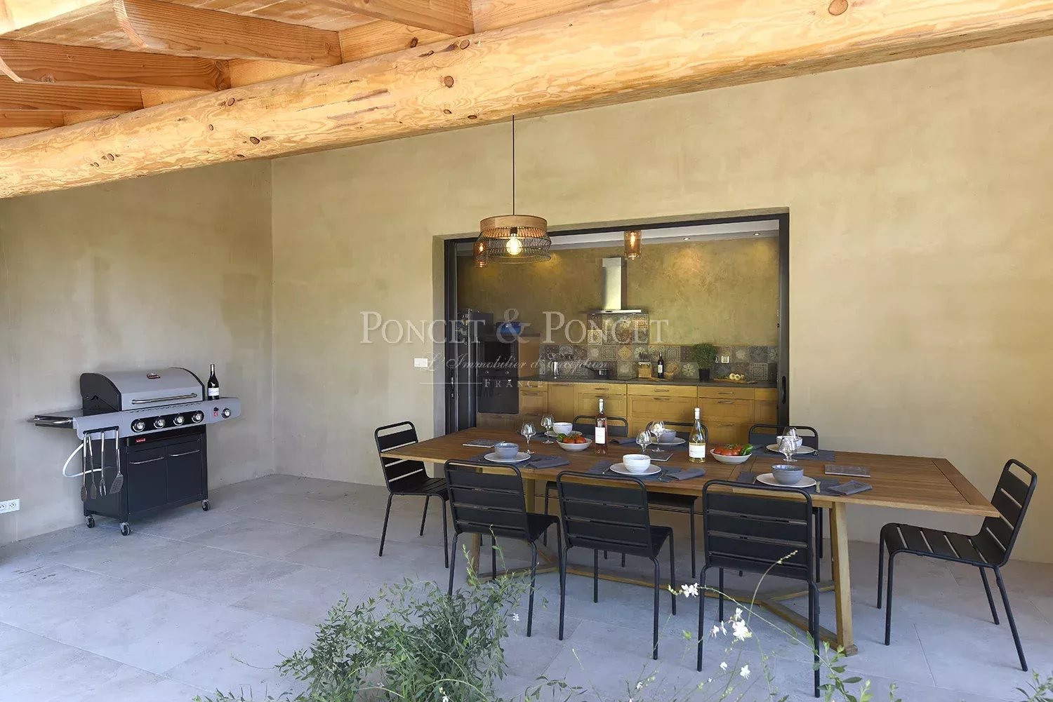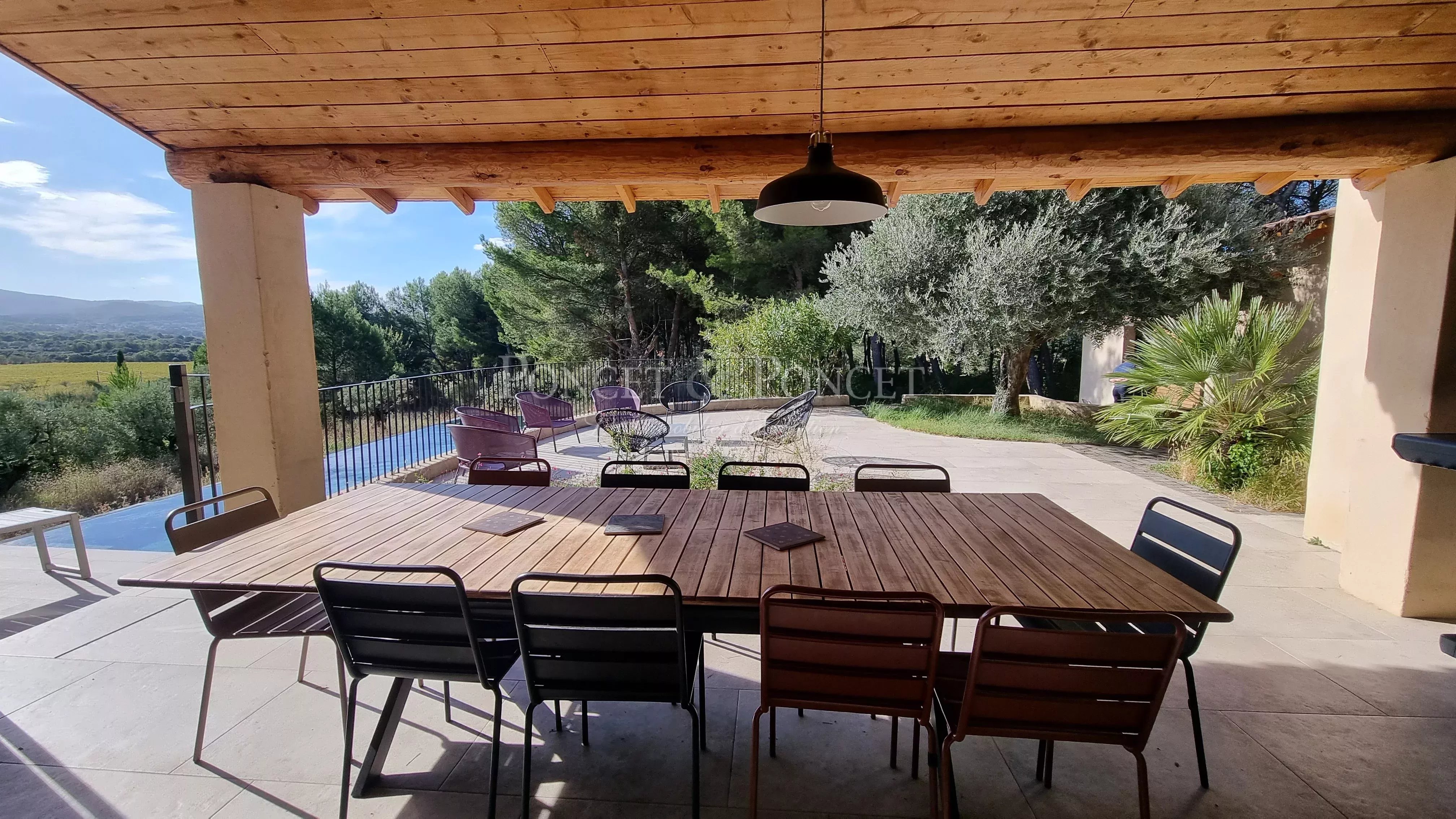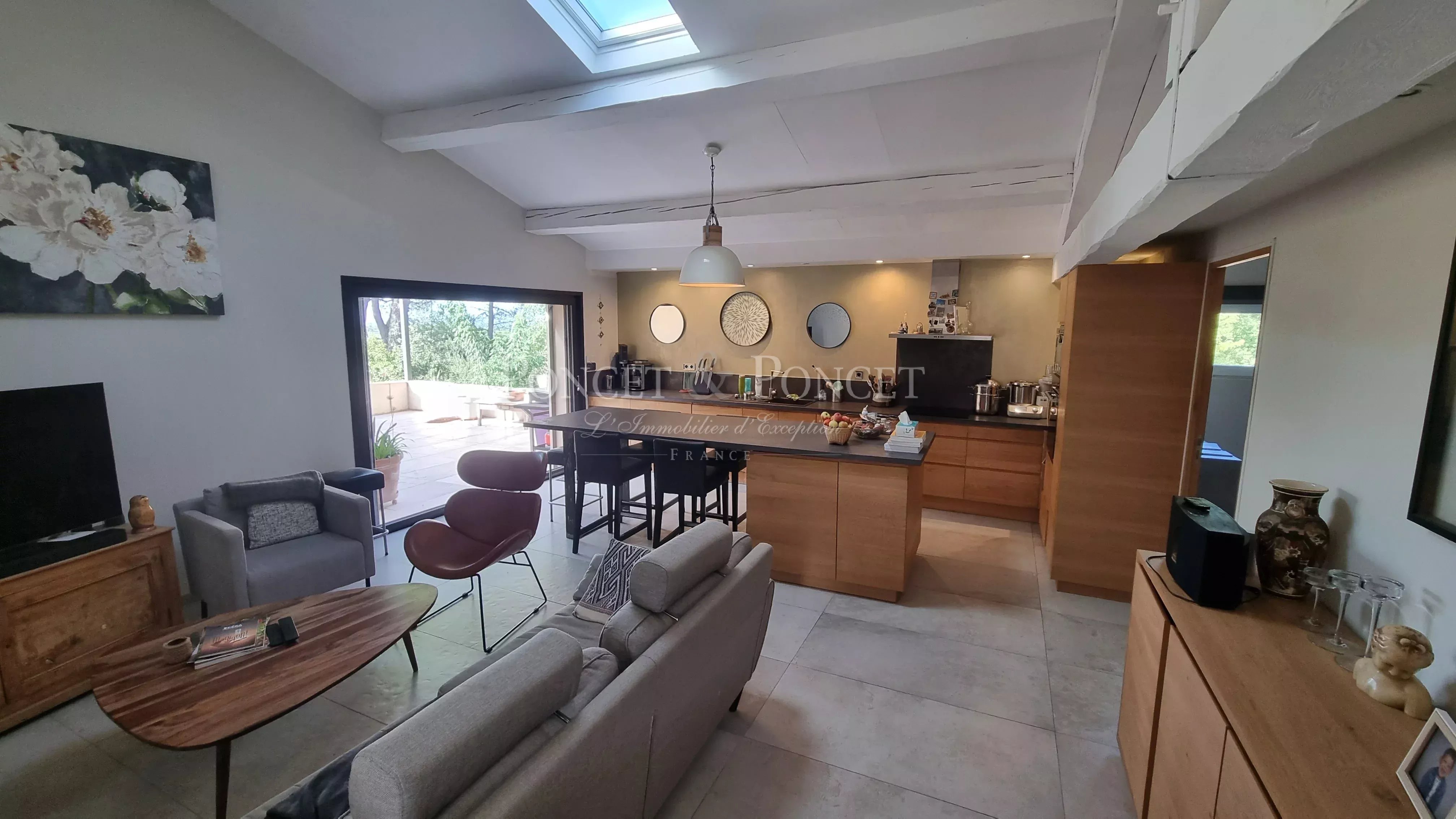 La maison offre environ 240 m2 de surface habitable et donne, au sud, sur une magnifique piscine à débordement. L’habitation est en parfait état car rénovée ces 10 derrières années. La terrasse offre de belles vues sur la vallée