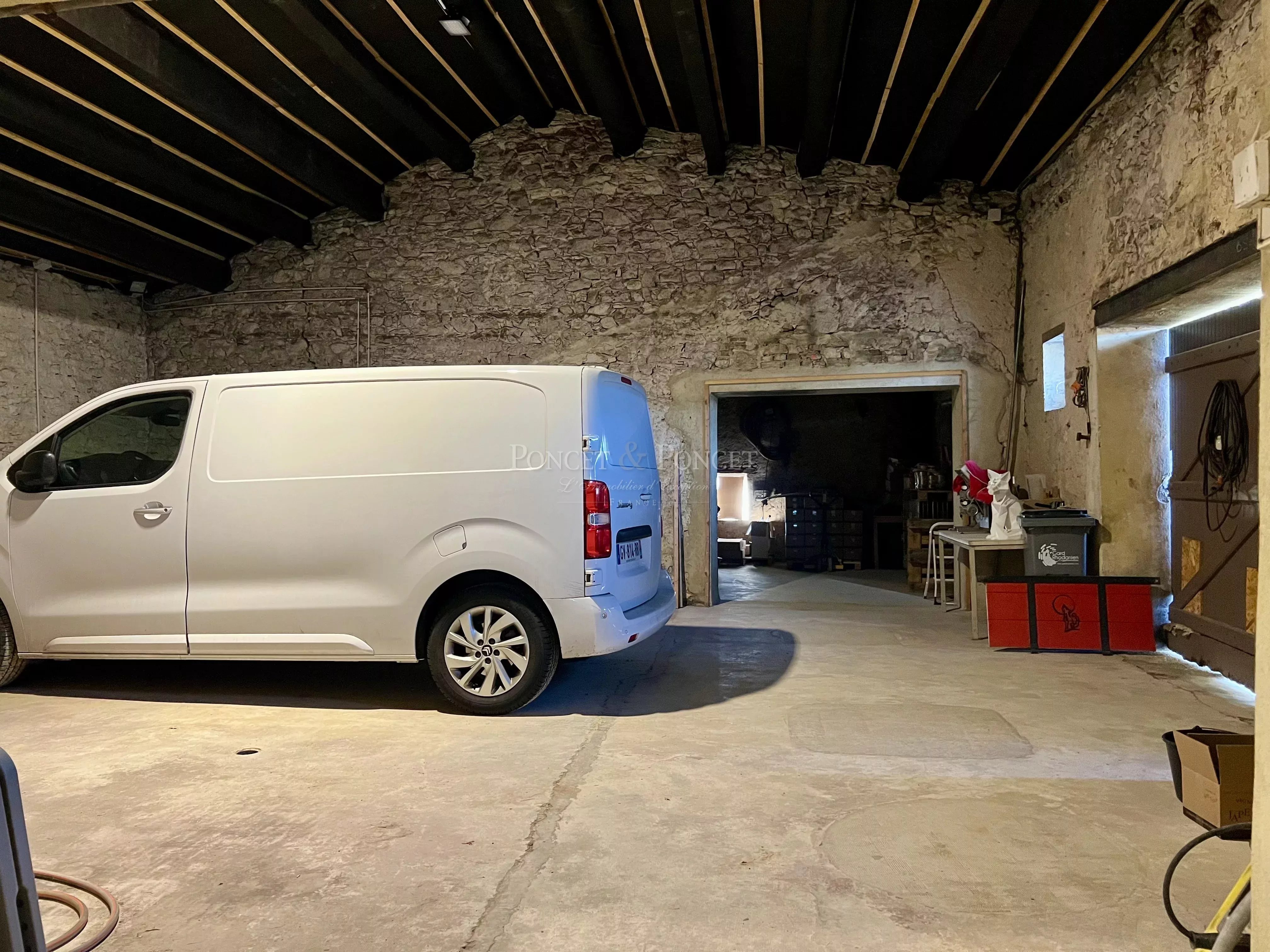 Une mezzanine de stockage surplombe cet espace et est directement accessible depuis la cave.
