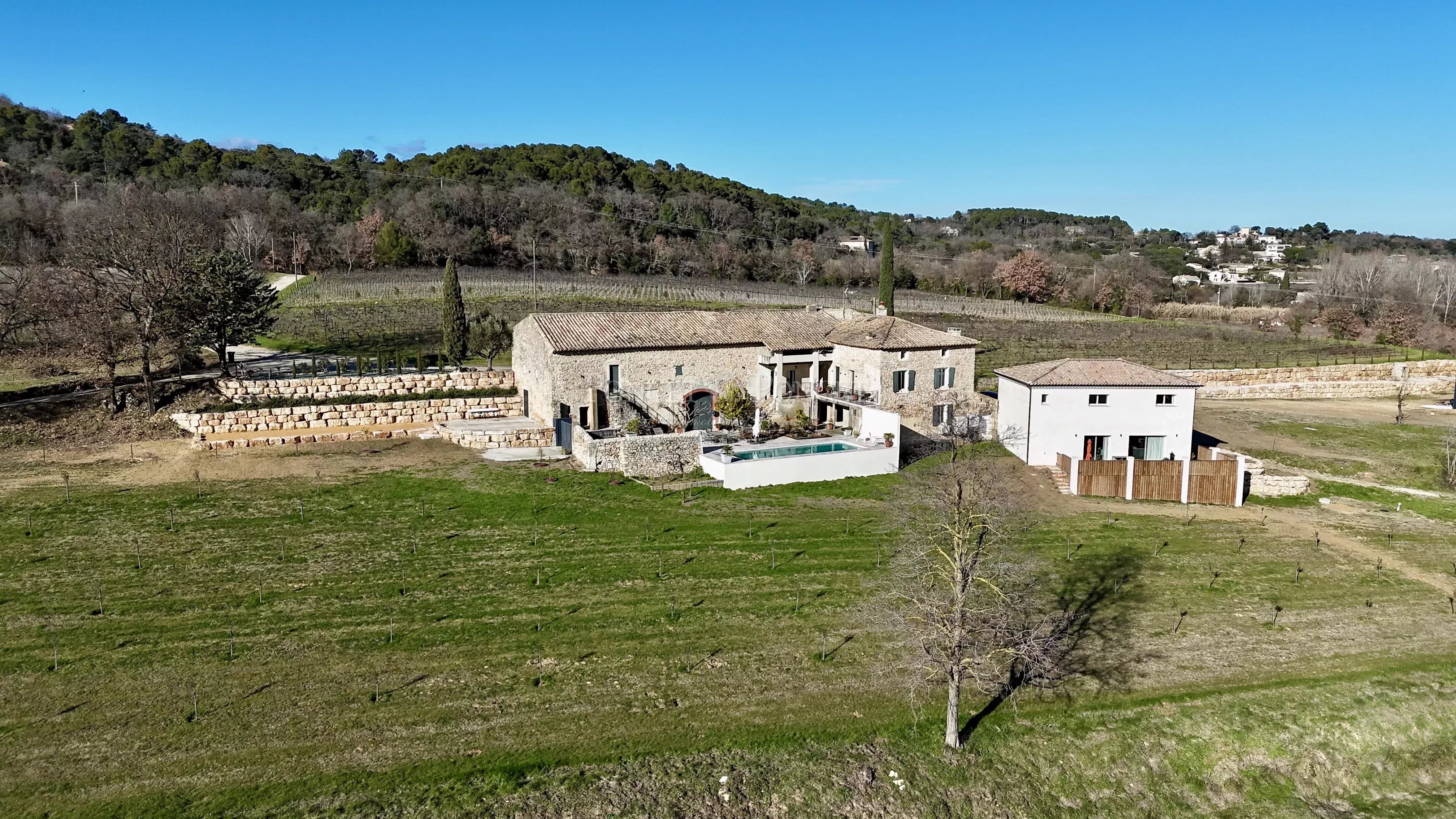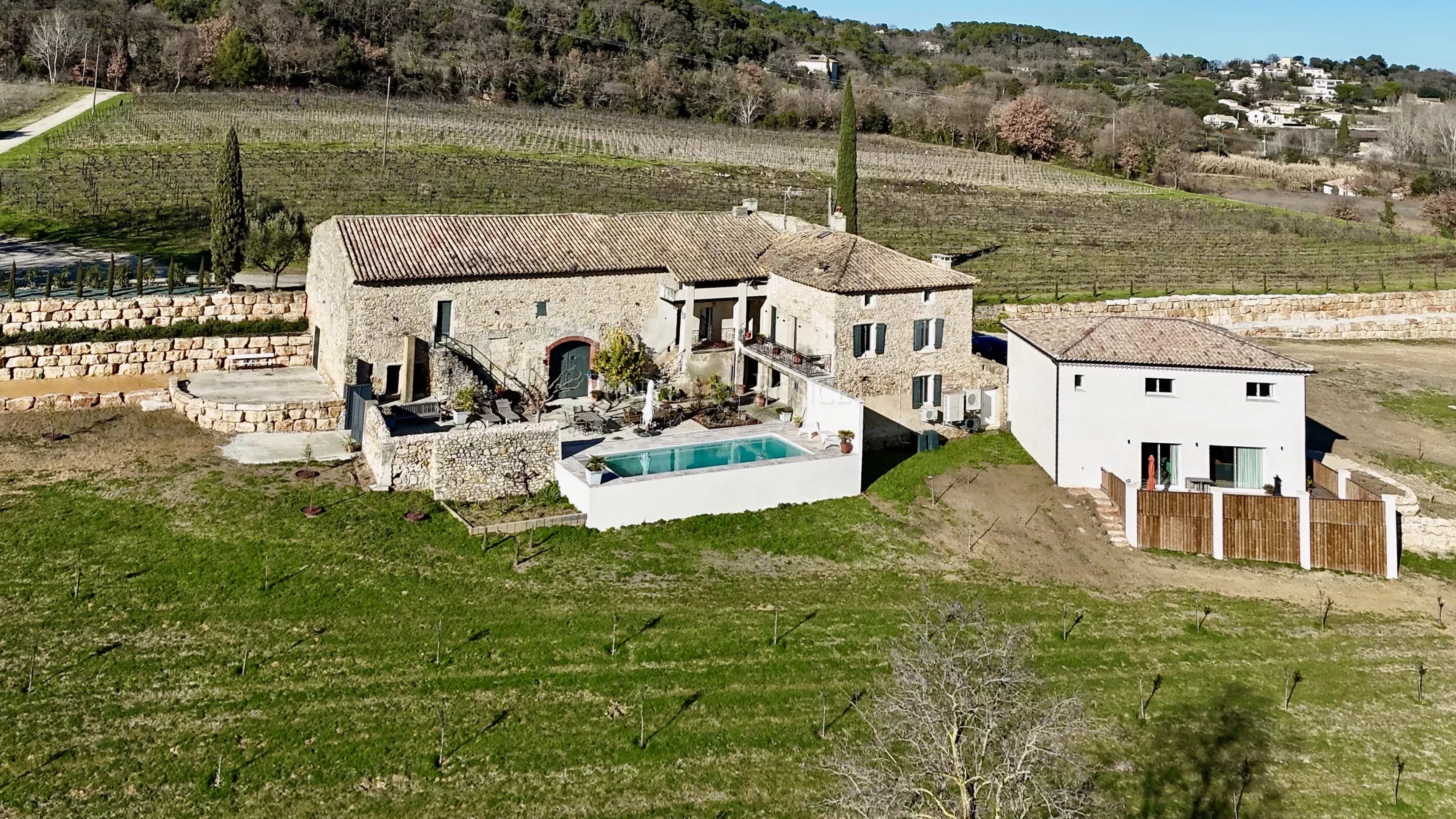 Il s’agit d’une propriété rare et inspirante, conjuguant le charme d’un mas provençal authentique, un outil viticole récent et performant, et un cadre naturel exceptionnel.