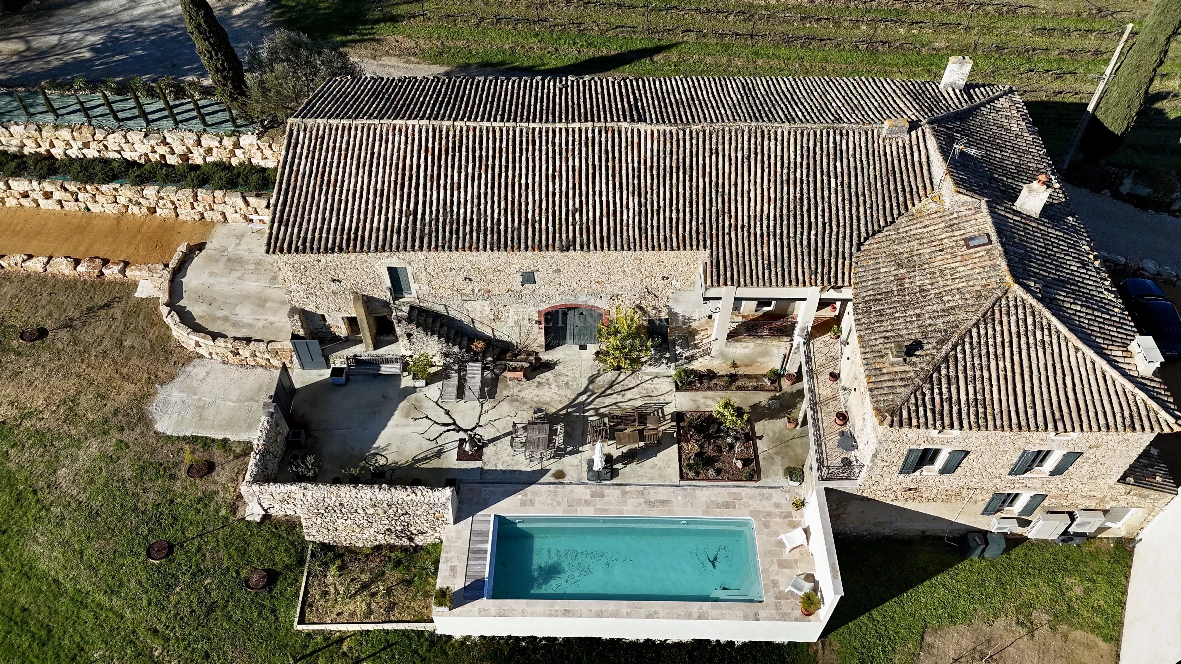 À terme, après travaux, il est possible de créer un mas principal d’environ 700 m² habitables.